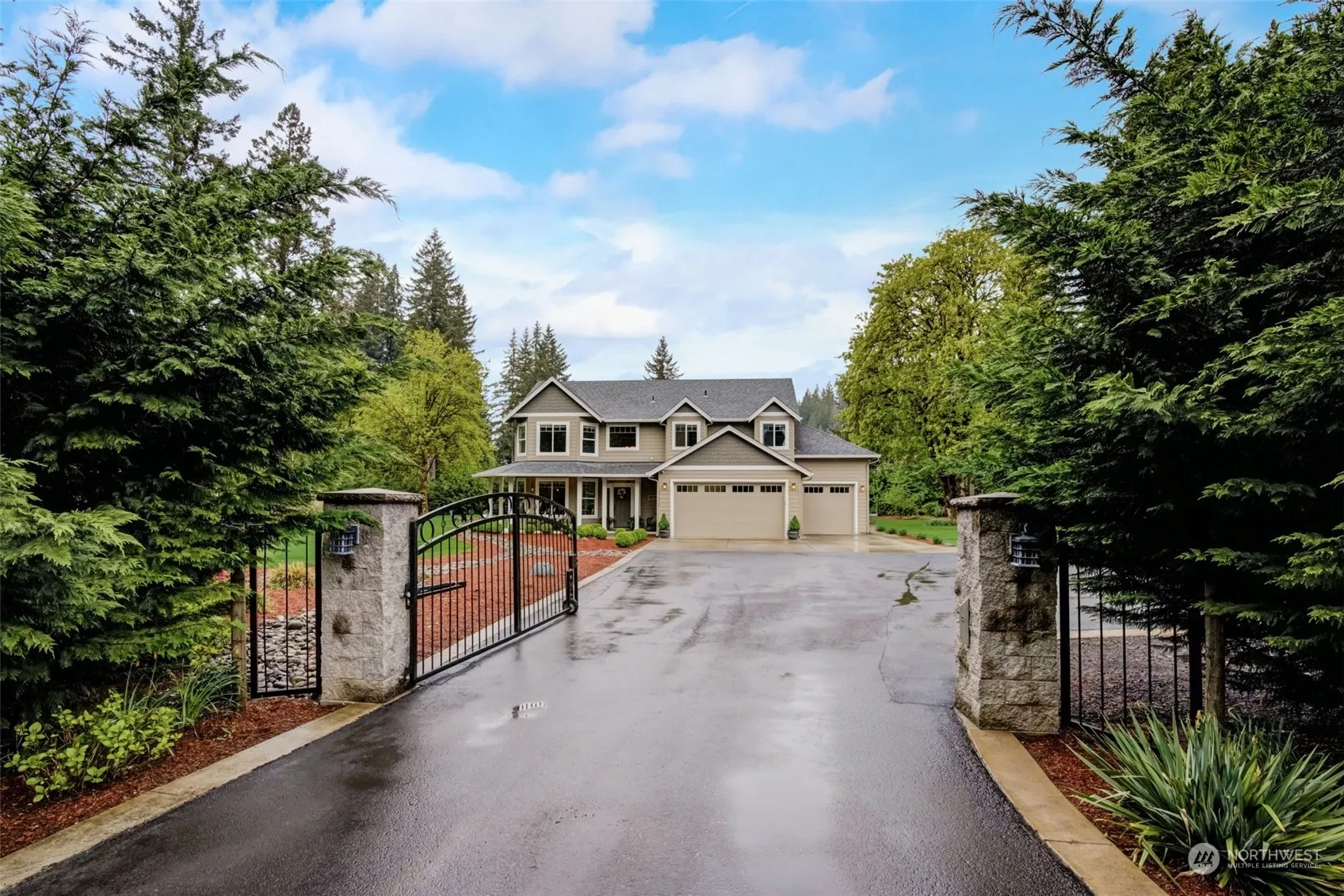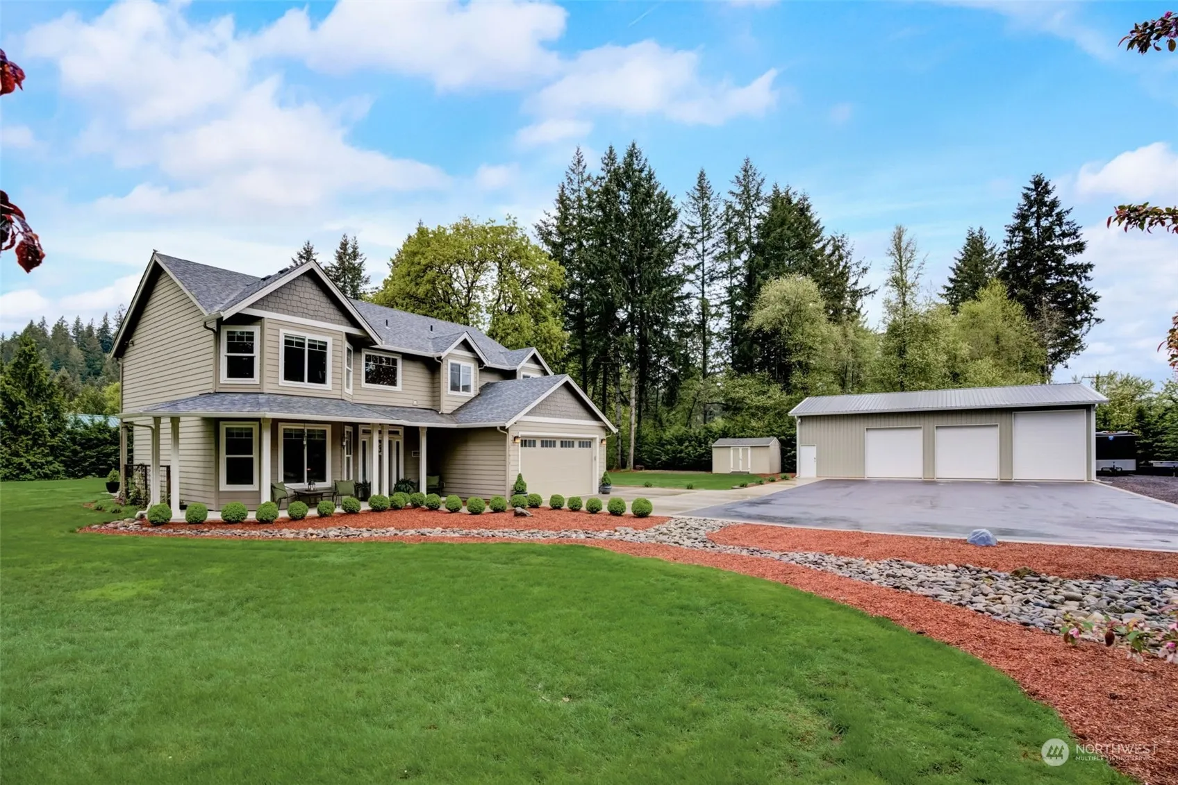 Nestled on a spacious 1.6-acre lot, this charming 2story home offers a tranquil retreat in the heart of nature. The property is fenced w/ a gated entrance, 3 car garage + 36×48 shop. Your new home features 4 bdrms & 2.5 baths, providing ample room for comfortable living. The main level encompasses a welcoming foyer leading to a spacious living room, perfect for entertaining or relaxing. The adjacent kitchen is a chef’s delight, equipped w/ modern appliances, ample cabinetry, & a convenient breakfast bar w/family room overlooking your private land. Upstairs, you’ll find the prim ste complete w/ a luxurious ensuite bathroom, Tile shower, & W/I closet, along w/ 3 bdrms & a full bath. Come home & enjoy. See features list for more to love!