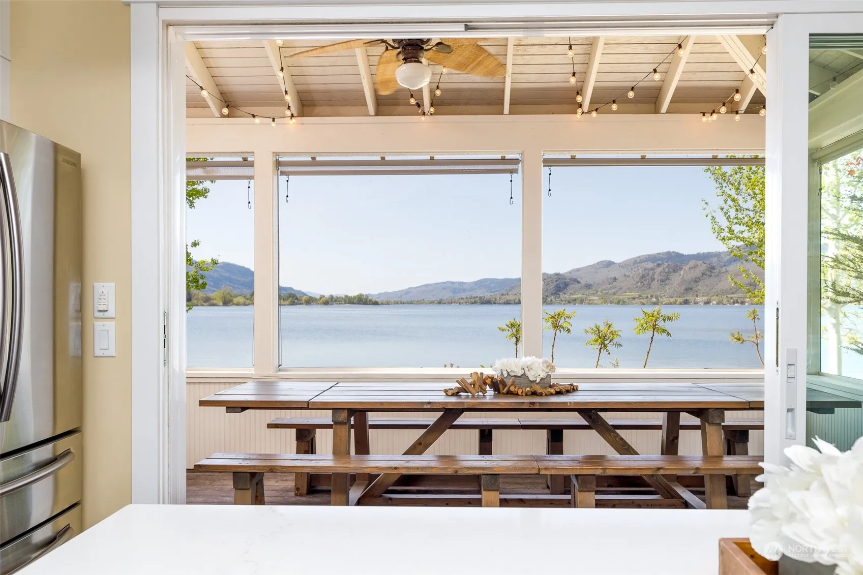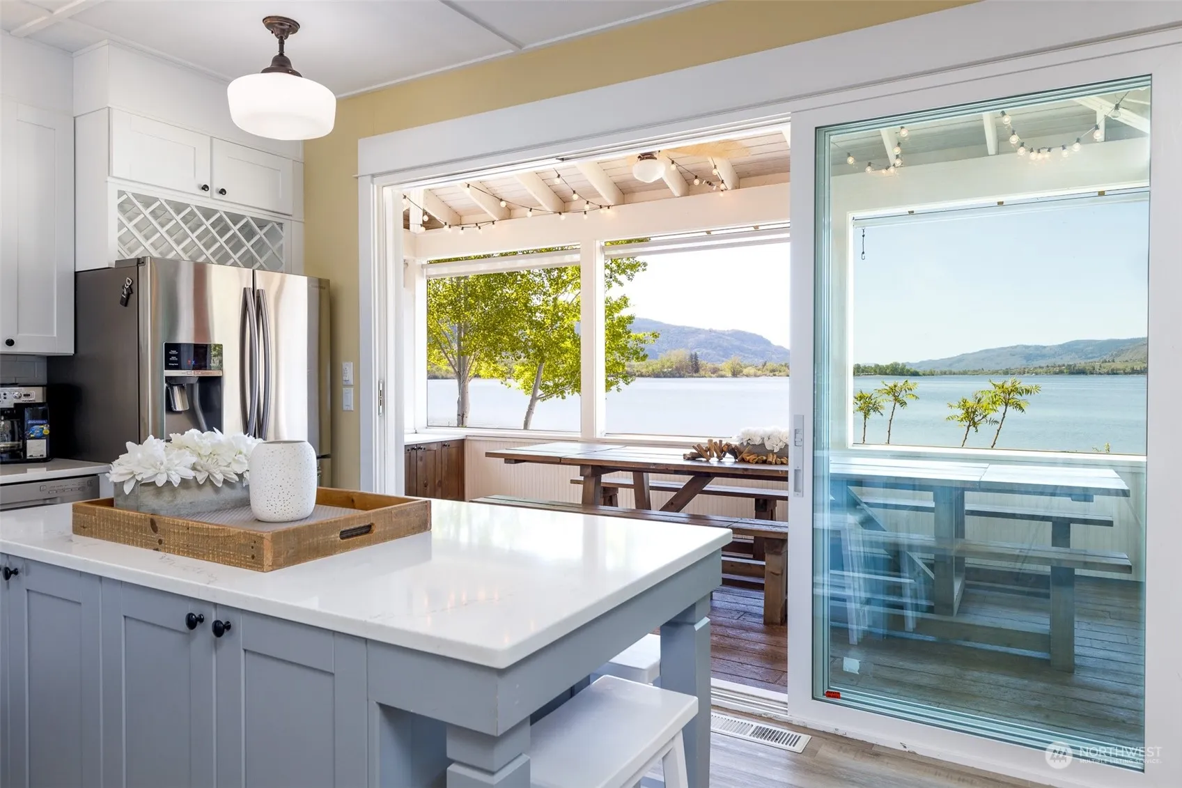 Highly sought after 4 bedroom BEACHFRONT Cottage at Veranda Beach. Recently and tastefully renovated. Fabulous kitchen remodel with new appliances, generous island, quartz countertops and vinyl plank flooring. An 11 foot wide folding glass door leads to a 550 sf Veranda overlooking the Lake featuring a chandelier and other decorative lighting, custom shades and a 12 foot dining table with seating. This Cottage is offered fully furnished including a number of new bunk beds complete with bedding. Four spacious bedrooms sleep 16. Bathrooms have also been renovated with new plumbing and lighting fixtures, vinyl flooring and glass shower doors. The Lakeside patio with rattan furniture and a gas firepit is great for entertaining.