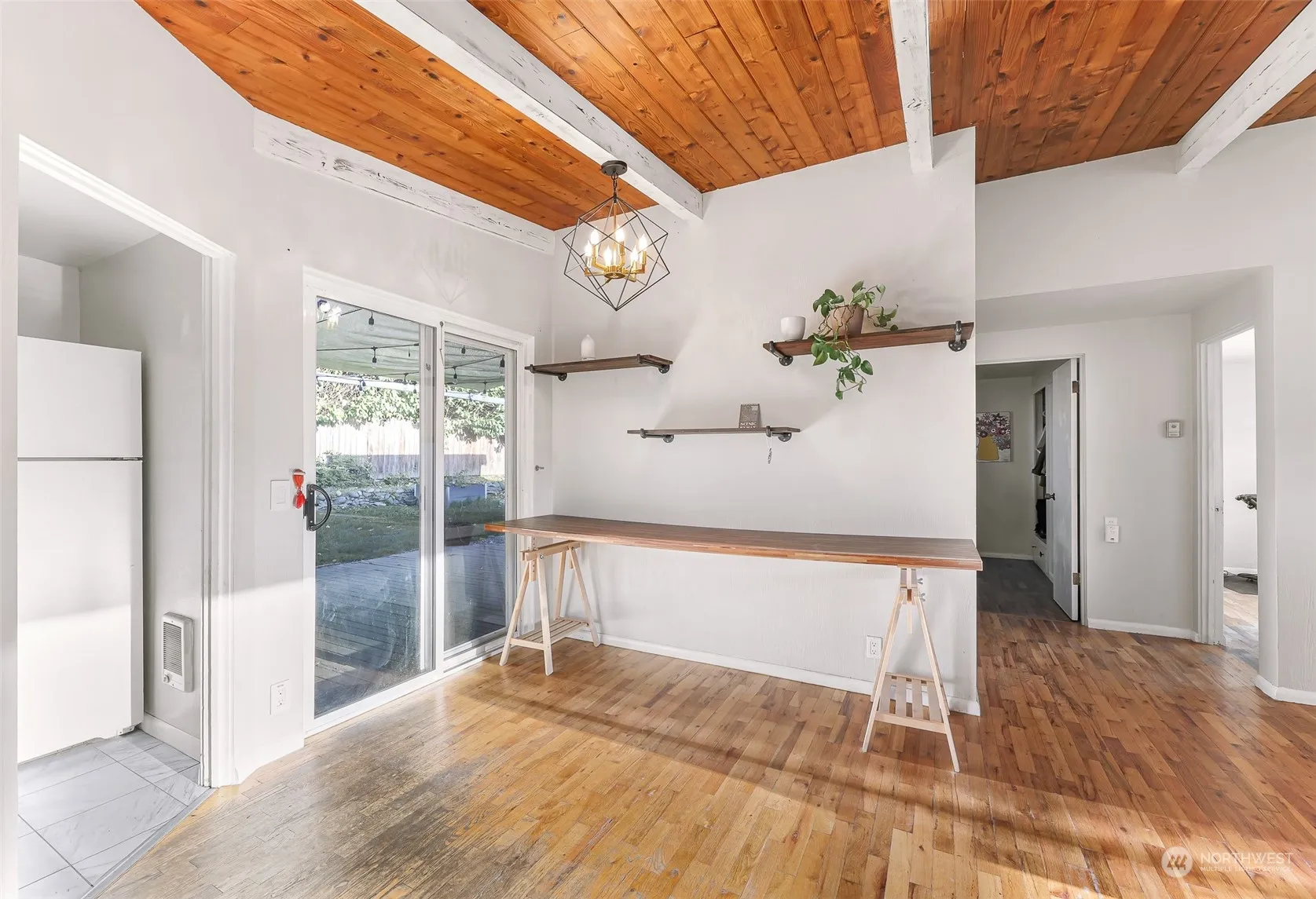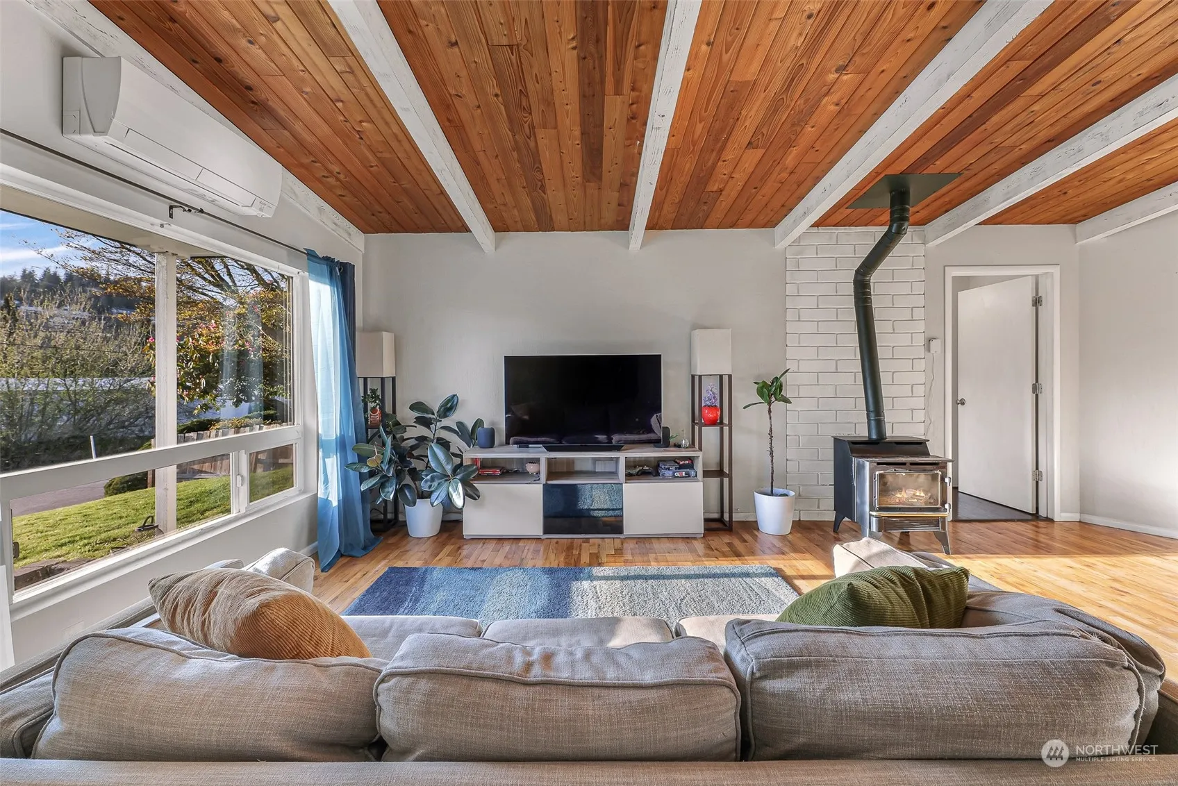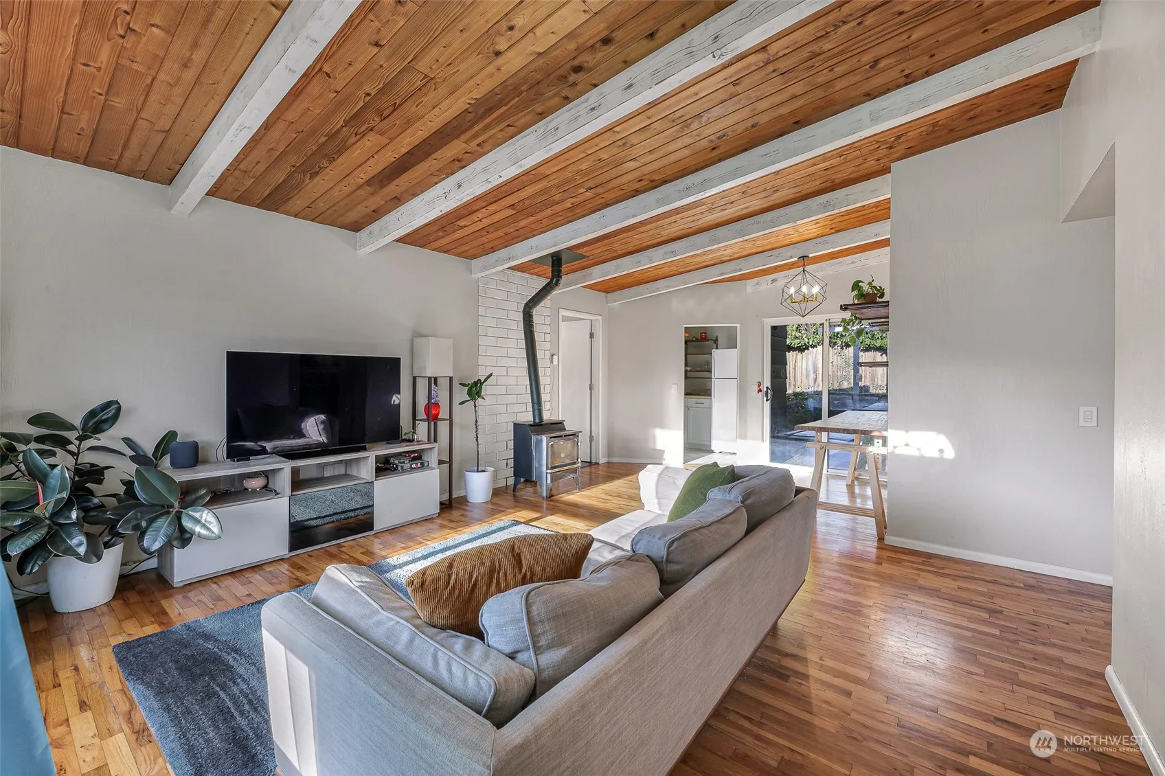 Welcome home to this charming 3-bedroom rambler nestled on a private, fully fenced lot on a quiet dead end street. With a 1-car garage, shed with power, and gated backyard access, storage is abundant. Step inside to find a cozy retreat adorned with wood ceilings and exposed beams, complemented by a gas-burning stove for added warmth. New heat pumps ensure comfort year-round, while hardwood floors and vaulted ceilings add character. Relax on the back deck or garden in the lush backyard. Enjoy the convenience of being just blocks from downtown Burlington and all amenities.