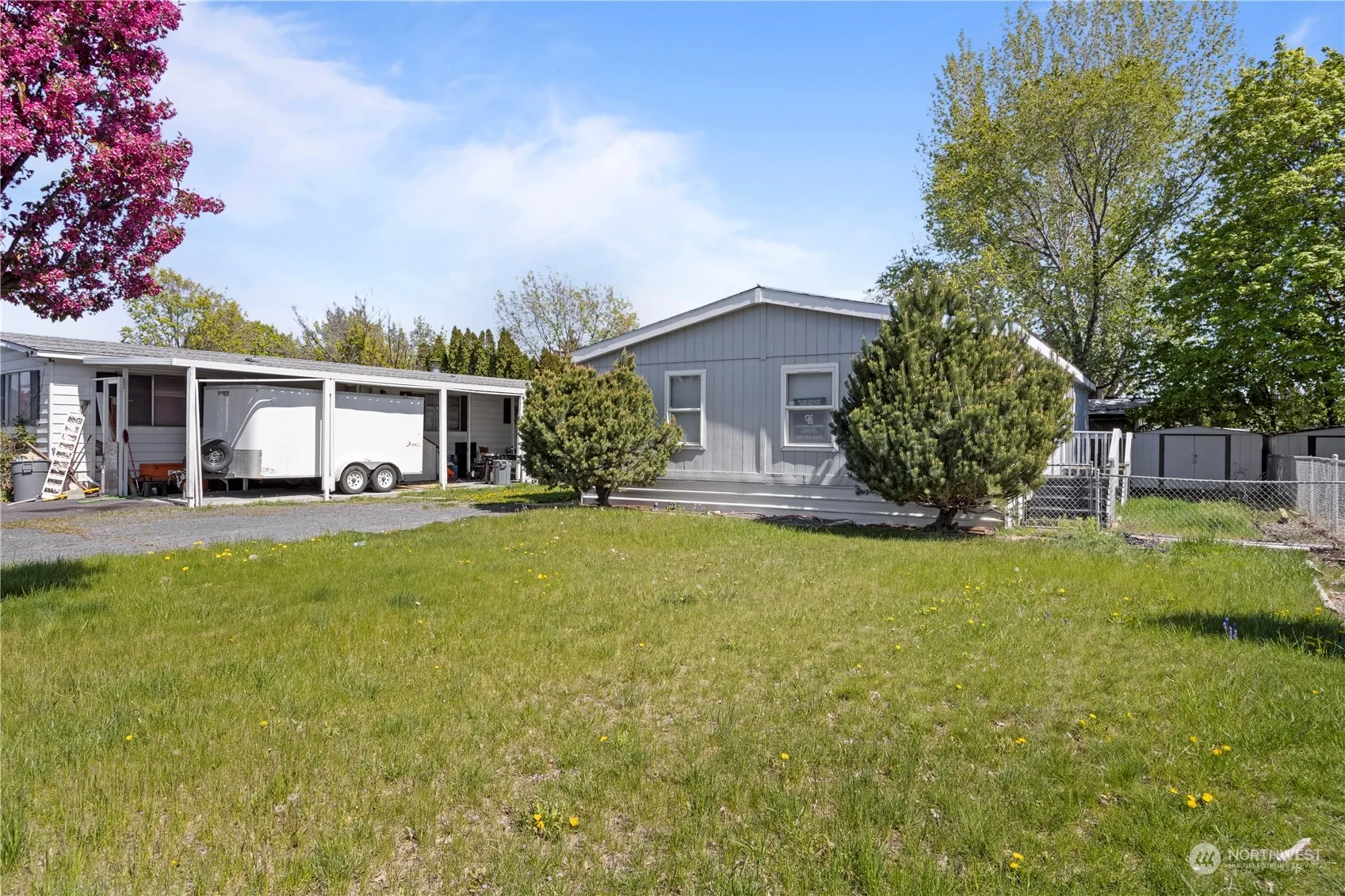 Double-wide manufactured home located in Harvest Manor Park. This spacious home boasts 3 bedrooms and 2 bathrooms. The kitchen flows seamlessly into the large living room, creating an inviting space for relaxation and entertaining. Exterior features include: landscaped front yard, mature trees, two storage sheds & much more!!