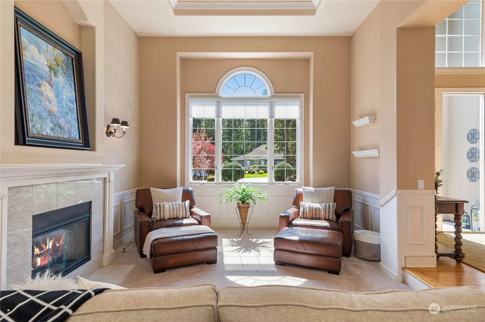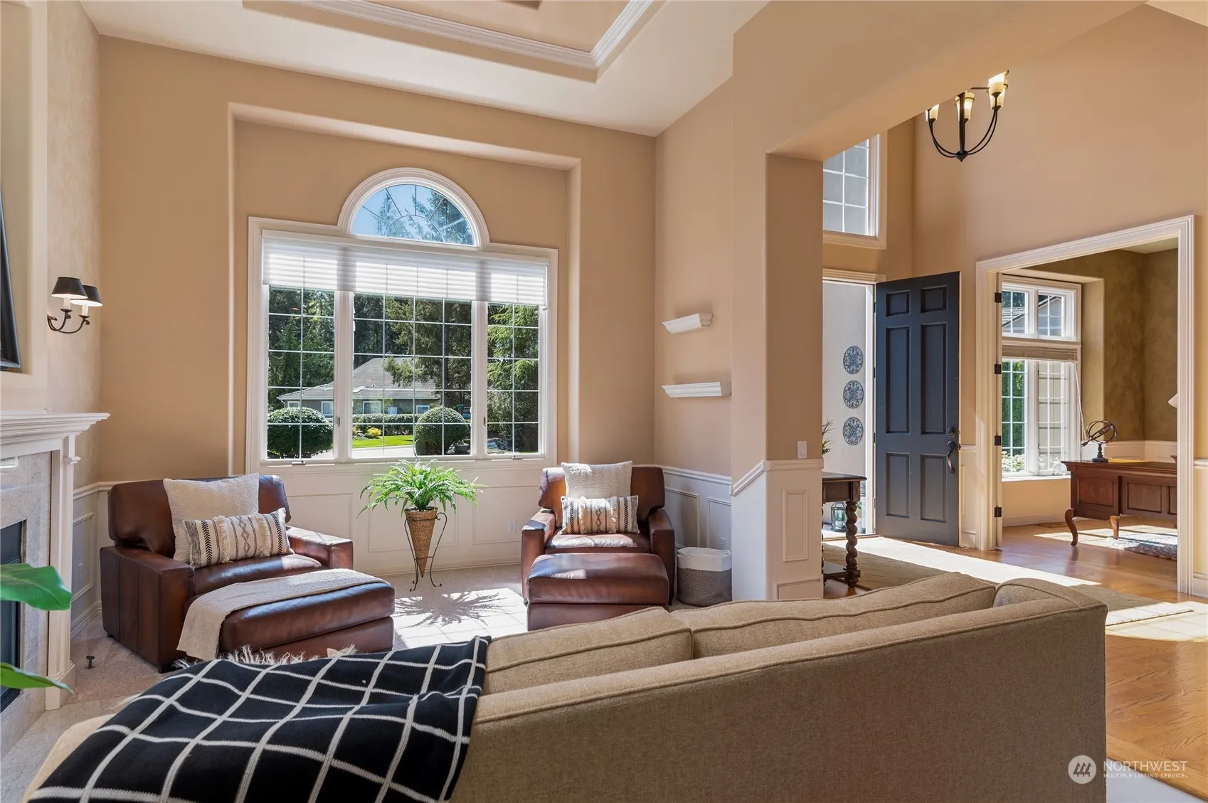 A beautifully maintained two-story home in Saratoga offers an array of premium features: situated on a generous cul-de-sac lot adjacent to a greenbelt, it features soaring ceilings, dual gas fireplaces, a three-car garage, and a stylish exterior. The formal living area makes a striking impression with its impressive high ceilings, complemented by sophisticated chair rail and panel molding in both the living and dining rooms. This home includes three bedrooms, each with its own ensuite bathroom. Additional spaces include a versatile bonus room and a home office located near the entrance. Outdoor living is a delight with a expansive deck and ample yard space.