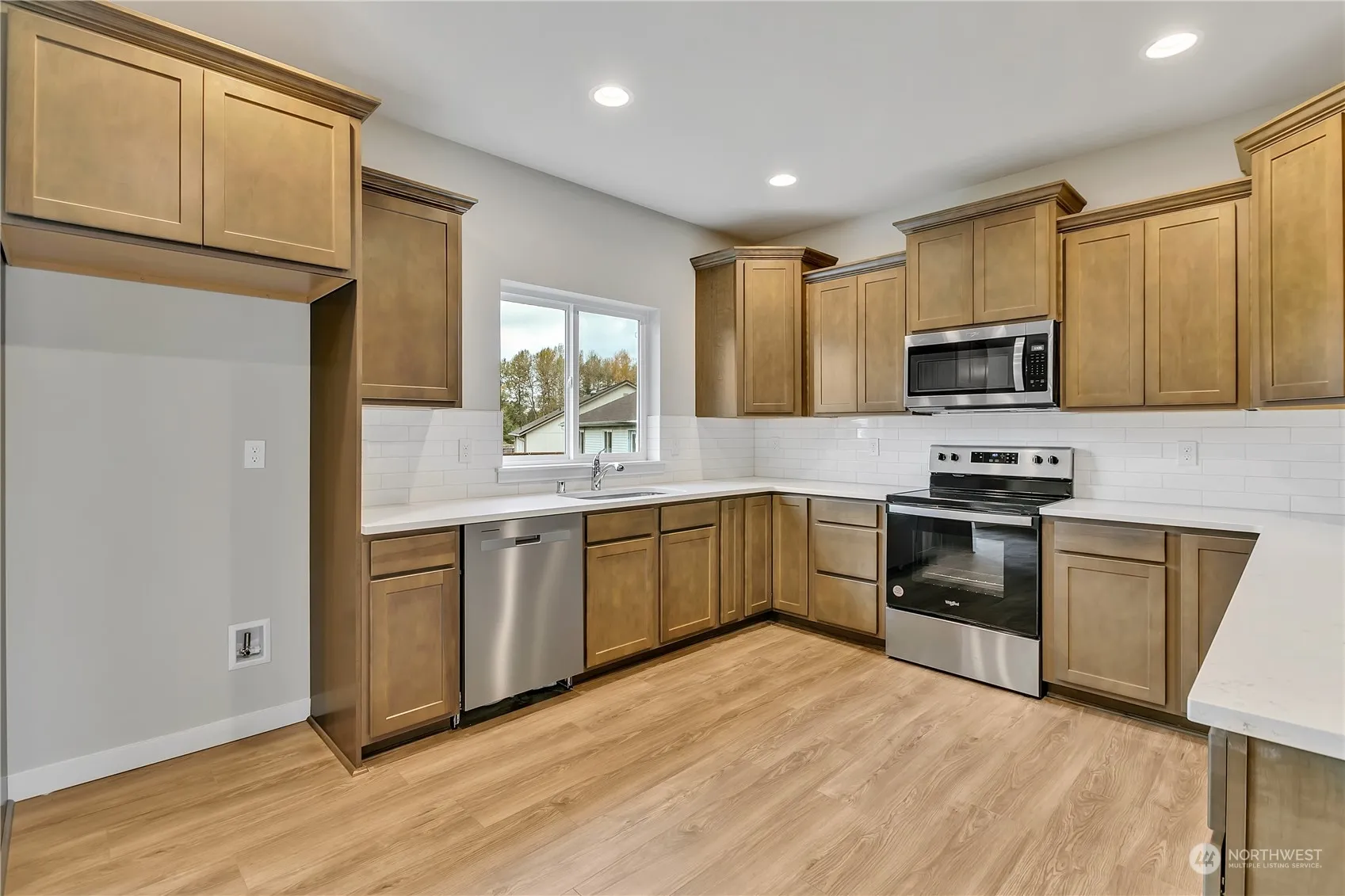 Completed New Construction Home in Oakridge Community. This 1,679 Sq Ft home has 3 bedrooms, bonus room/den/office with 2.5 baths, and 2 car garage. Open kitchen concept with slab quartz counter tops, full height tile backsplash, stainless steel whirlpool appliances, upgraded cabinetry and painted onsite millwork. Laminates flooring throughout entry, kitchen, and dining. Large primary suite with 5 piece master bathroom with walk in closet. Two additional bedrooms with large walk in closets! Front and back landscape with private fence. Short commute to Yelm, JBLM and I-5. EST October
