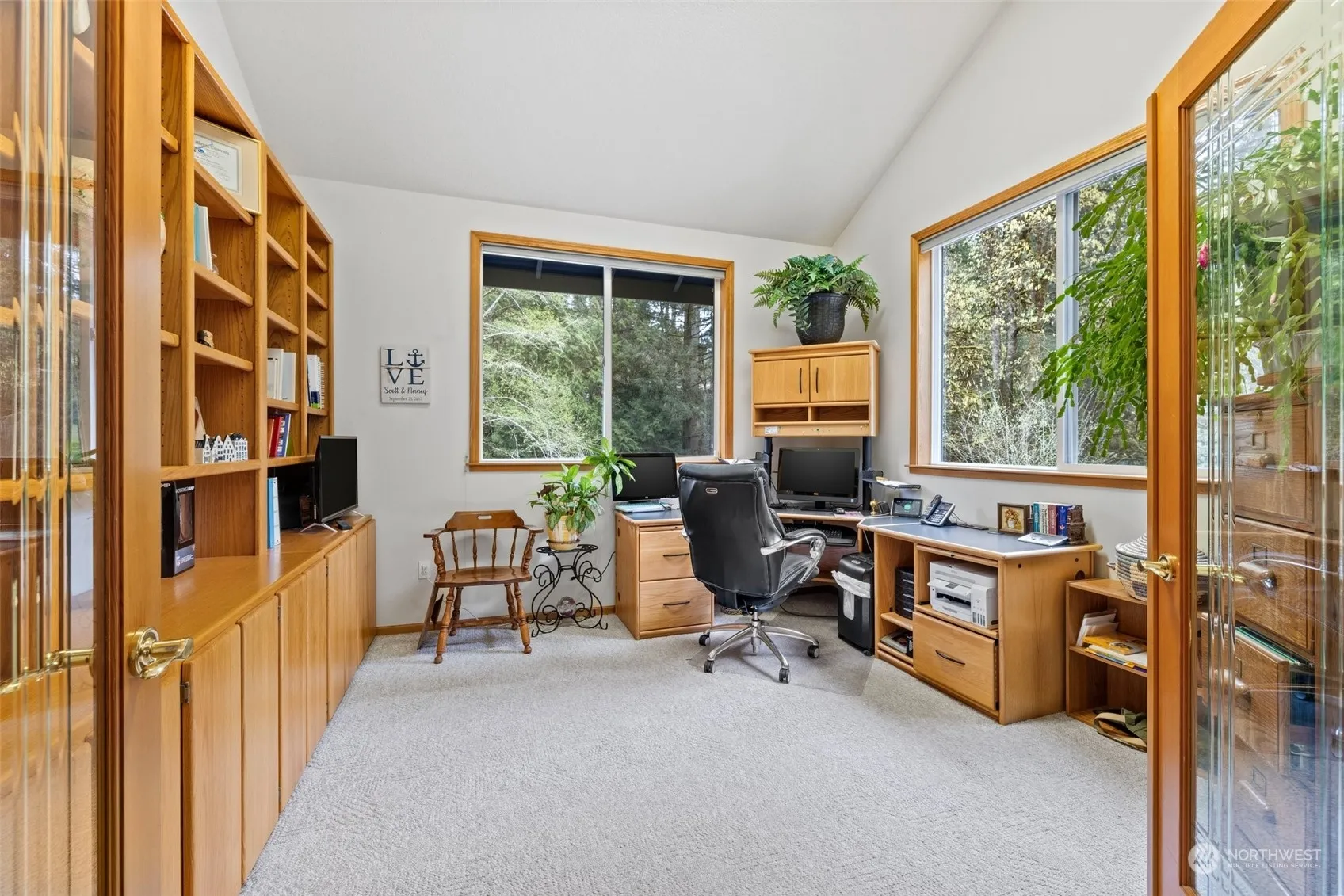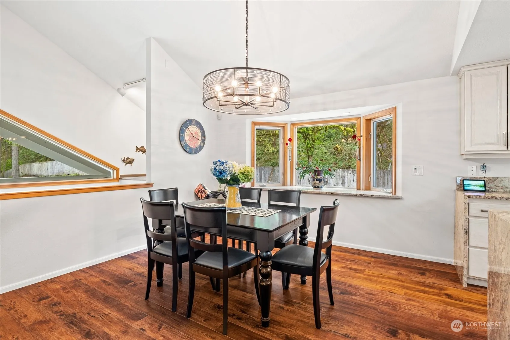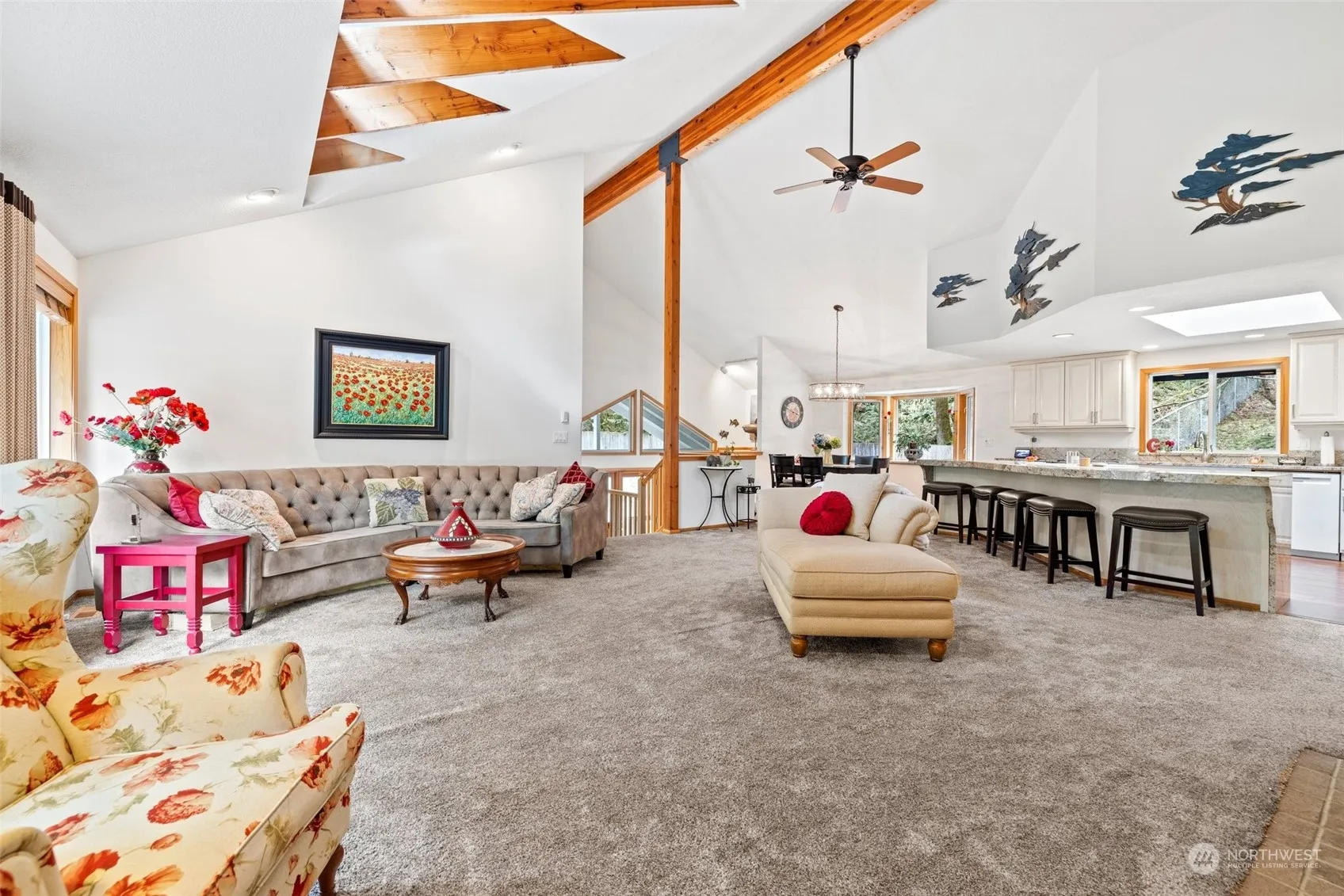 This amazingly unique 7-acre home is situated off Hunt St, conveniently located, yet feels like you are remote. You’ll be dazzled by the gorgeous PNW landscape & tranquil stream. With over 3500 SF of living space, this home is perfect for multi-generational uses, main level living off the attached garage, an office 4 steps down, and daylight living area with a wet bar, laundry, family room, 3/4 bath, 2 bedrooms. This remodeled kitchen with a granite waterfall edge island & counters is open to the living & dining rooms. The vaulted ceiling’s exposed wood beams bring the warmth & coziness of today’s style & comfort. The 36×84 shop has 200AMP is great space to work on & store cars, wood shop or mini farm. Plenty of land for riding trails too!