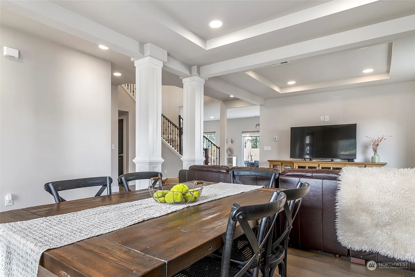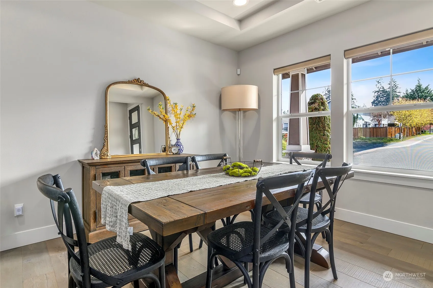 This beautiful Bothell home rests on a corner lot in the Silver Stone neighborhood, nestled at the end of a quiet cul-de-sac w/mountain views. The home warmly welcomes you with a flowing open layout, formal dining room, living room, bonus room, hardwood floors, a chef-style gourmet kitchen w/quartz countertops, large WI pantry, SS appliances, & waterfall kitchen island. The main level also boasts a bedroom & powder room. The upper level offers 3 additional bedrooms, bathroom, robust bonus room, as well as an expansive primary bedroom suite, WIC, & ensuite bathroom w/spa-style soaking tub. An oversized outdoor patio allows ample space to enjoy your backyard. This home is wired for a generator, has Central AC, and is waiting to become yours!