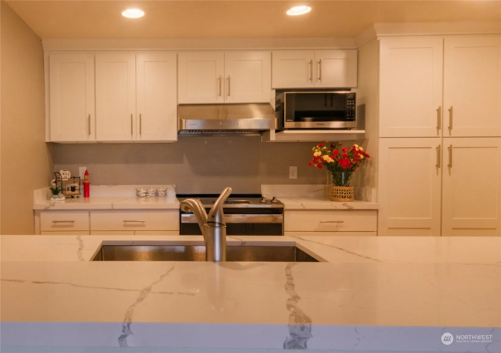 Charming 1 BR, 1 Bath, boasting a bright East-Facing orientation. Stunning views from the spacious deck overlooking the Cascades. Conveniently close to Microsoft, Marymoor Park, Grass Lawn Park and Redmond Town Center. The living area features bamboo style laminate flooring and a cozy wood burn fireplace. Bed Rm has brand new carpet. Remodeled Kitchen has new countertops, cabinets. New cook range, oven, new microwave. Update bathroom with new floor, cabinet, faucet and lighting. Fresh Paint adorns all walls in the unit. Washer & Dryer in the unit. Carport parking space #67 & storage rm in the same place. Complex has an outdoor pool. Plenty guest parking space. No rental Cap, great opportunity for investors to have 5% ROI right off the bat.