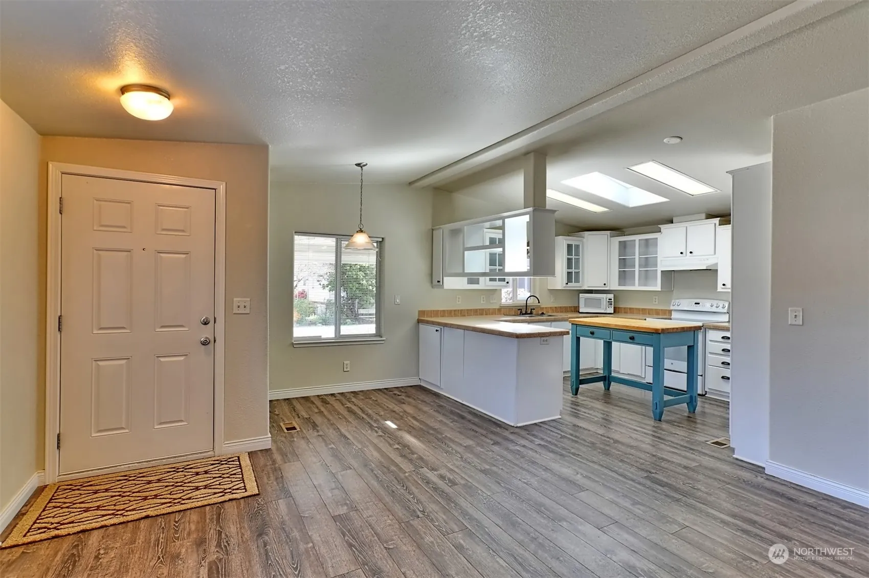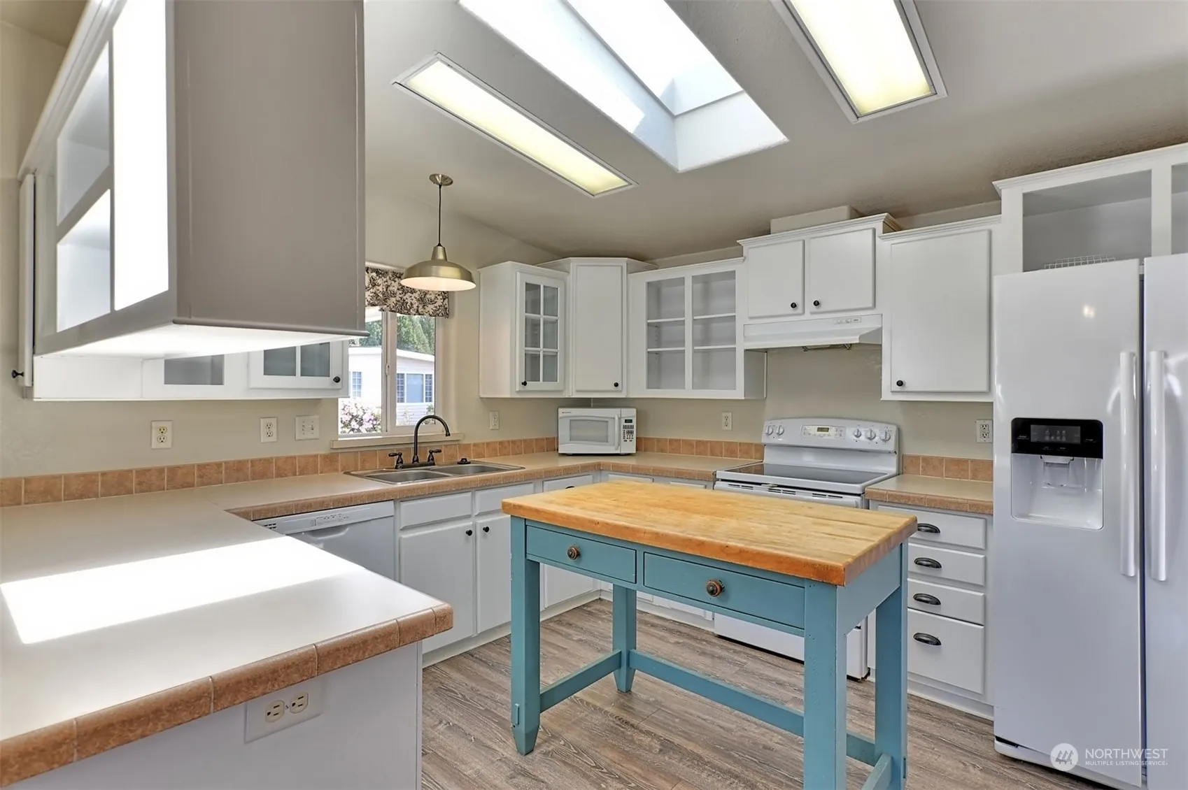 Wonderful Home in the desirable Green Acres Park, a 55+ community in Bothell! This 2 bedroom 2 bathroom home sits on a corner lot, partially fenced with 2 gates a shed in the back and plenty of room for a small garden or sitting area. In 2023 the exterior was painted, new roof and an energy efficient skylight installed. 2018 interior had new carpet, new blinds and was painted. Nice laminate flooring & white cabinets in the kitchen. 1,048 Sq FT but feels bigger and is very cozy. Primary bedroom has large closet and a large primary bath with shower! Second bedroom is very large. Double carport and the community parking is very close. The community has a clubhouse with a lot of fun activities for the residents, walking trails throughout!