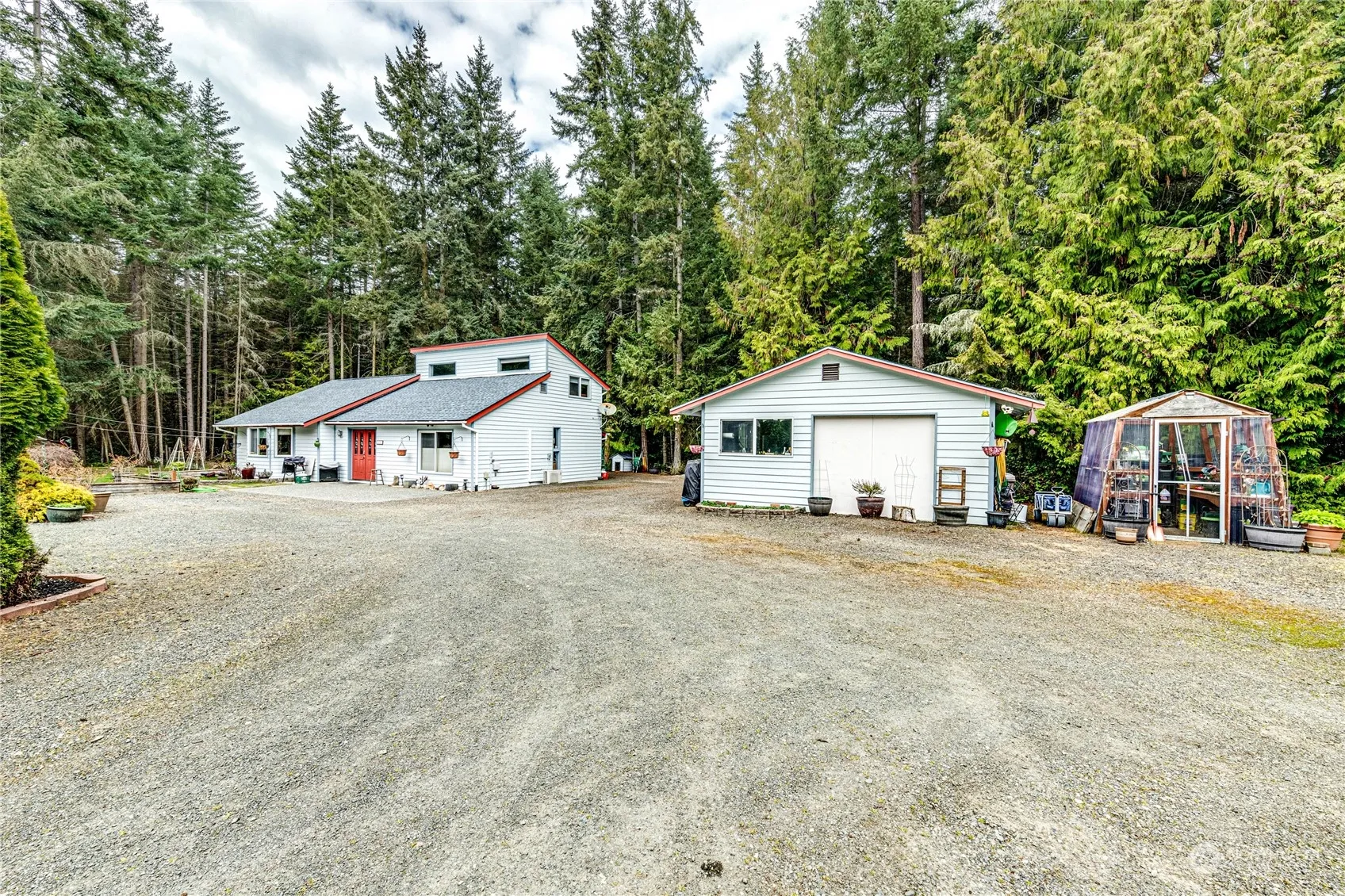 Custom 3BR 2BA home at the end of a quiet street on over 3 acres! You’ll have your own oasis w/tidy landscaping, firepit, outdoor kitchen w/gazebo, cook island & brick BBQ pit, plus huge concrete patio for activities, fenced dog run w/shed, detached garage, tarped carport & 18×36′ covered RV parking w/water & power. Interior features open concept kitchen/living room w/corion island, propane oven, oak cabinets, ductless heat pump, two bedrooms on the main level, closet organizers, full bath w/custom tile & quartz, laundry room w/built-in desk, and “loft feel” bedroom and bathroom upstairs. A truly unique paradise waiting for you!