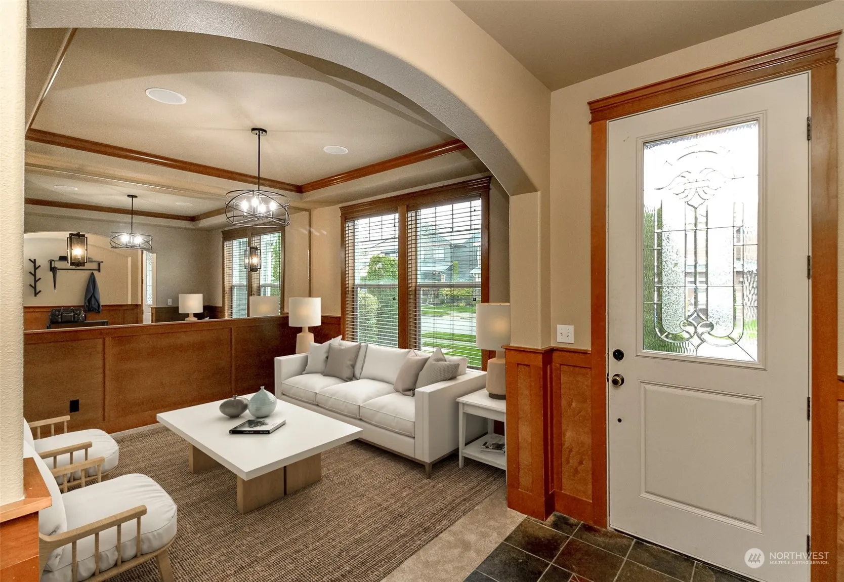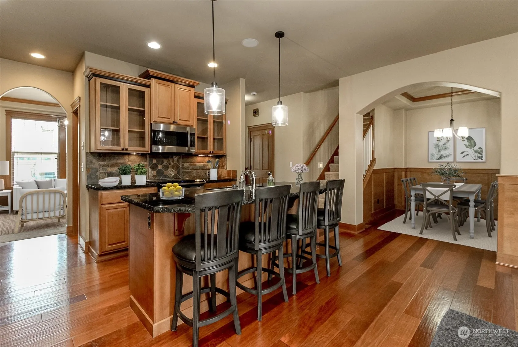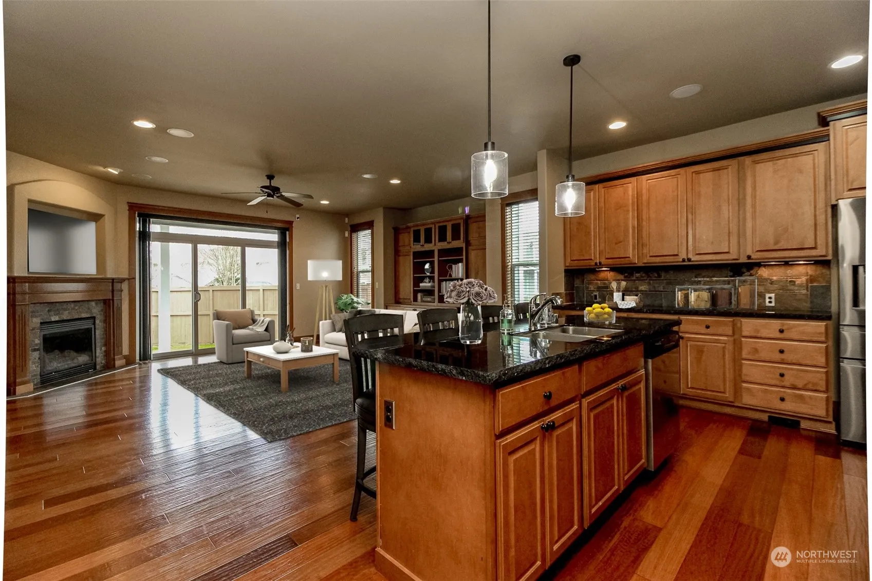 Moments to walking trails & golf course! 4 bedroom potential 5 bedroom 2 story former Model Home with 3298sqft & all the upgrades you can imagine! A/C, built-ins, central vac with elec. dustpan, surround sound & more! 1 bedroom on main w/ 3/4 bath is perfect for generational living option. Formal living room, dining room, walk in pantry, open concept kitchen opens to family room w/ gas fireplace & built-ins. Upstairs boasts a huge bonus room/rec room, 2 more bedrooms, one w/walk in closet & double door entry to the primary suite w/ vaulted ceilings, private balcony, 5 piece primary bath w/ large walk in closet, den/ nursery or 5th bedroom option. Solar tubes, 3 car tandem garage w/ storage space. Fenced backyard with covered patio.