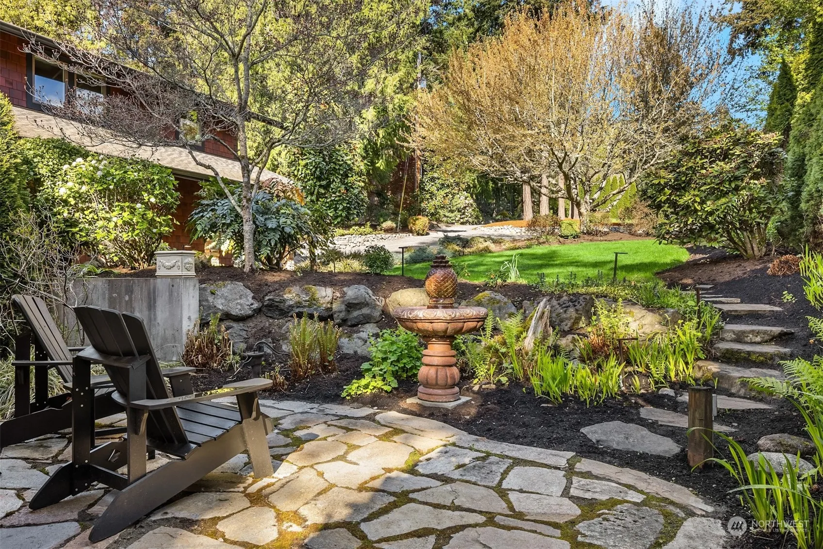 This stunning west-facing shoreline retreat, boasting 4 bedrooms + office, offers an exceptional beach house lifestyle. Soaring ceilings & walls of windows illuminate sun-drenched living spaces designed for entertaining. Warm wood millwork enhances the home’s clean lines. With stairs leading to its own private approx. 80’ beach + mooring buoy, it’s perfect for water enthusiasts. Spectacular views transform from day to night, reflecting gradient hues on the glistening water & majestic Olympic mountains. Classic architecture, vaulted ceilings, & roaring fireplaces add charm. With lighted stairs to the pvt beach & ample storage, this home epitomizes the island lifestyle you’ll love. Minutes to schools, parks, & the charming village of Winslow.