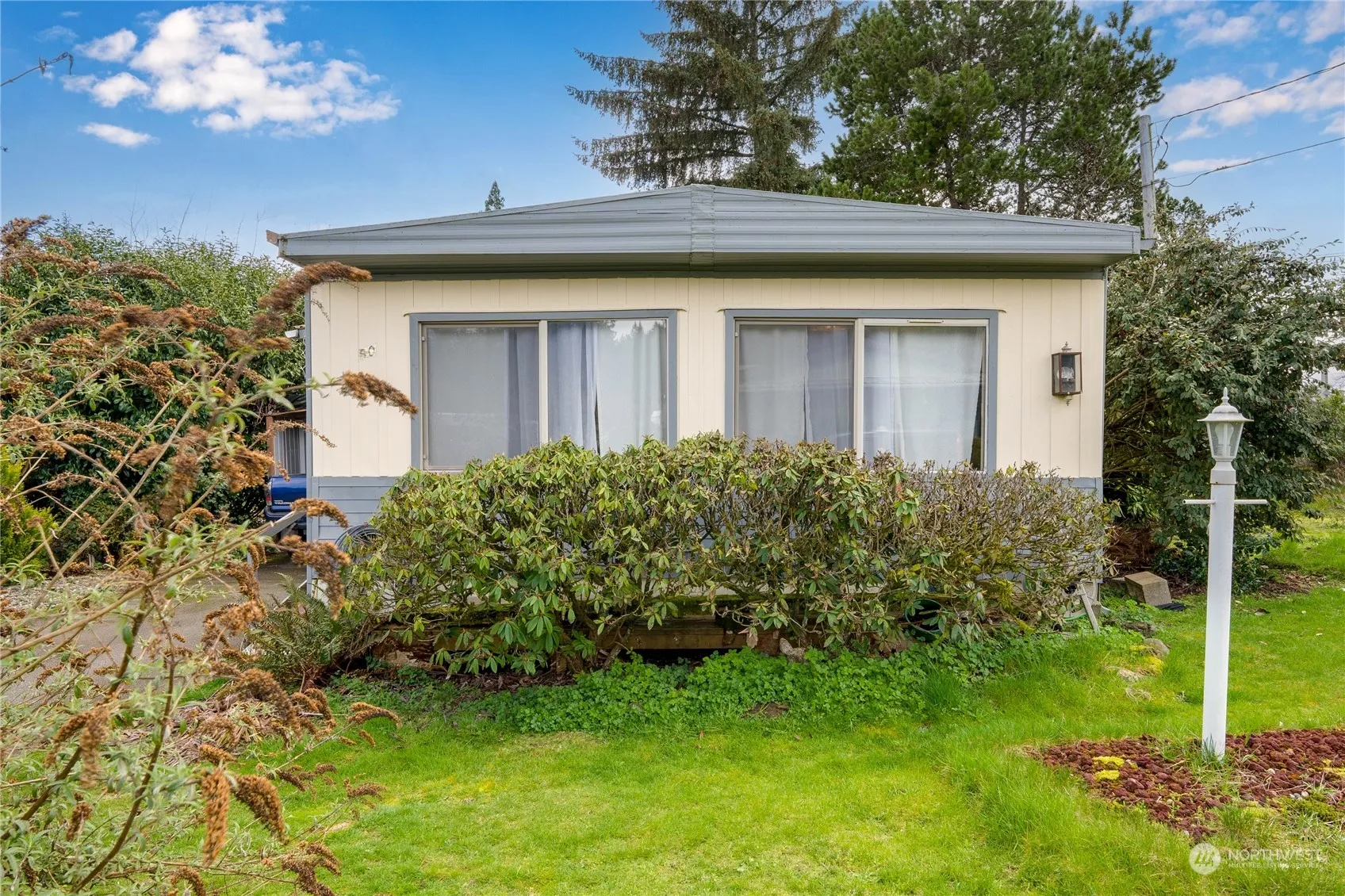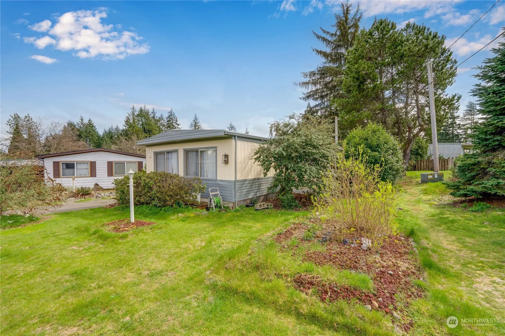 Spacious 2-bedroom, 2-bathroom double wide in Hidden Haven, an idyllic 55+ community nestled just off Hwy101. Enjoy tranquility and convenience with nearby shopping and the picturesque Hoods Canal. This home boasts a primary bedroom with ensuite bath, carport parking with dual storage spaces, and a generous living room adjacent to the kitchen dining area. With great bones and room for upgrades, bring your vision to make this your perfect retreat.