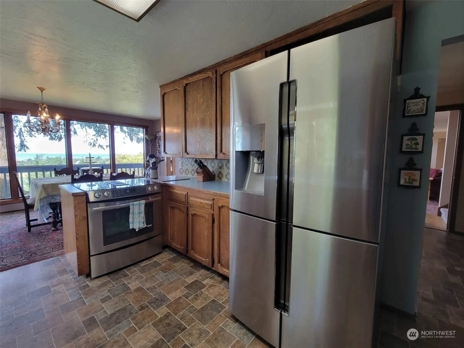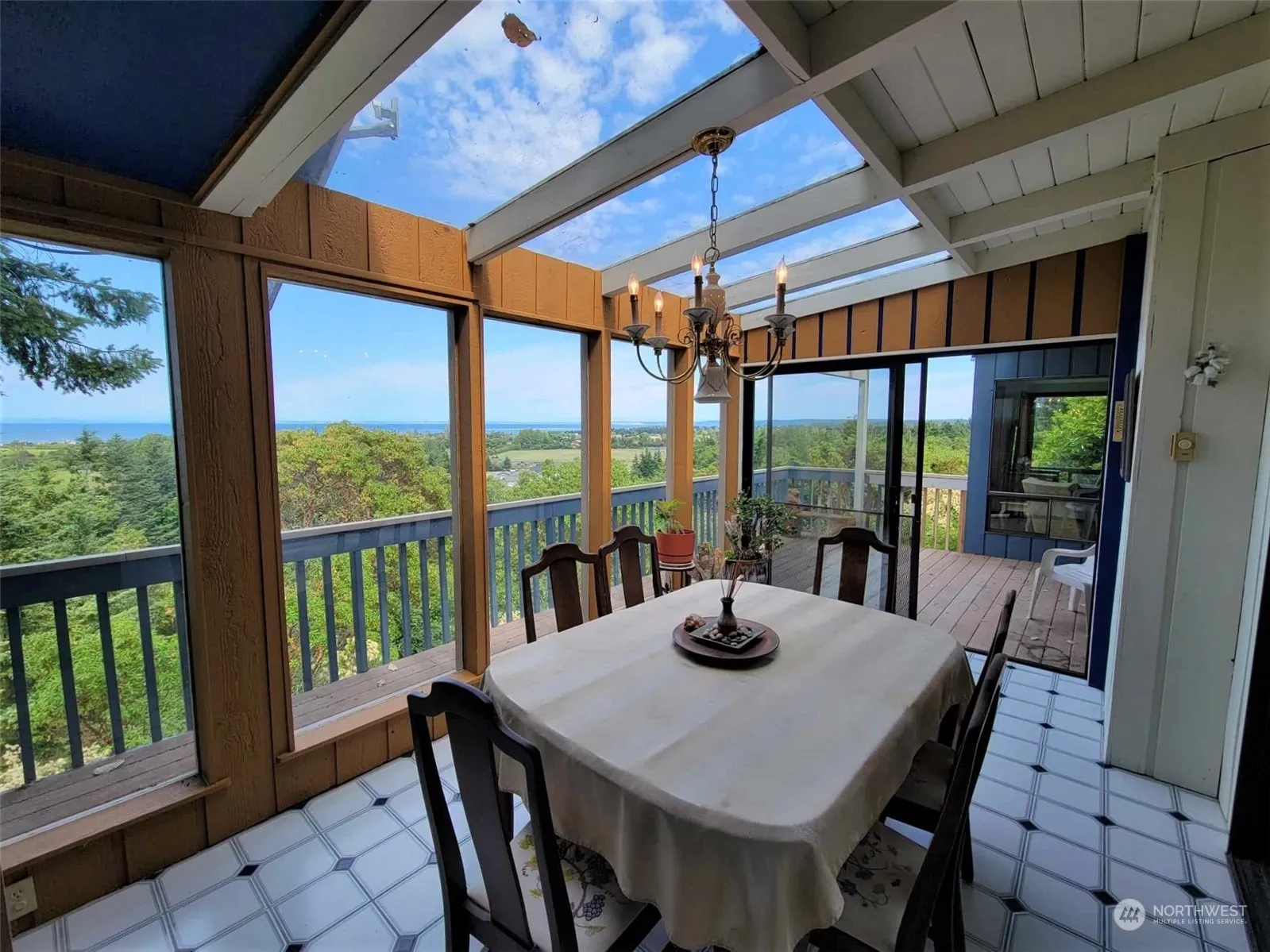 Spectacular water and mountain views that include Protection Is, Mt. Baker, Cape George & beyond in this spacious 4,400 sq ft home. Enjoy the vistas from nearly every east side window, private balcony and expansive deck. Features sunroom, library w/custom bookcases, 5 bedrooms, 3 & 1/2 baths, ample storage throughout and a 2 car detached carport all on .49 acre. Basement has separate entry with 2 bedrooms, 1 bath, wood stove, custom designed tile floors & its own kitchen.