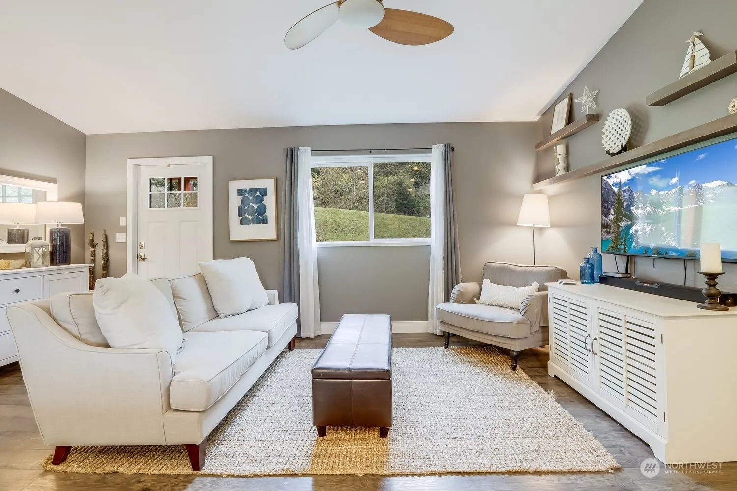 Find delight inside including a functional & open layout w/LVP flooring, vaulted ceilings, A/C & more. Spacious living room open to the kitchen includes all appliances, lots of cupboard & counter space & island with breakfast bar. The adjacent dining area offers slider access to the all season covered patio & large fenced yard with mature landscaping. The spacious primary bedroom has closet & attached bath. 2 car garage, ½+ acre lot. Near parks, beaches, shopping and commuting options. Tour today!