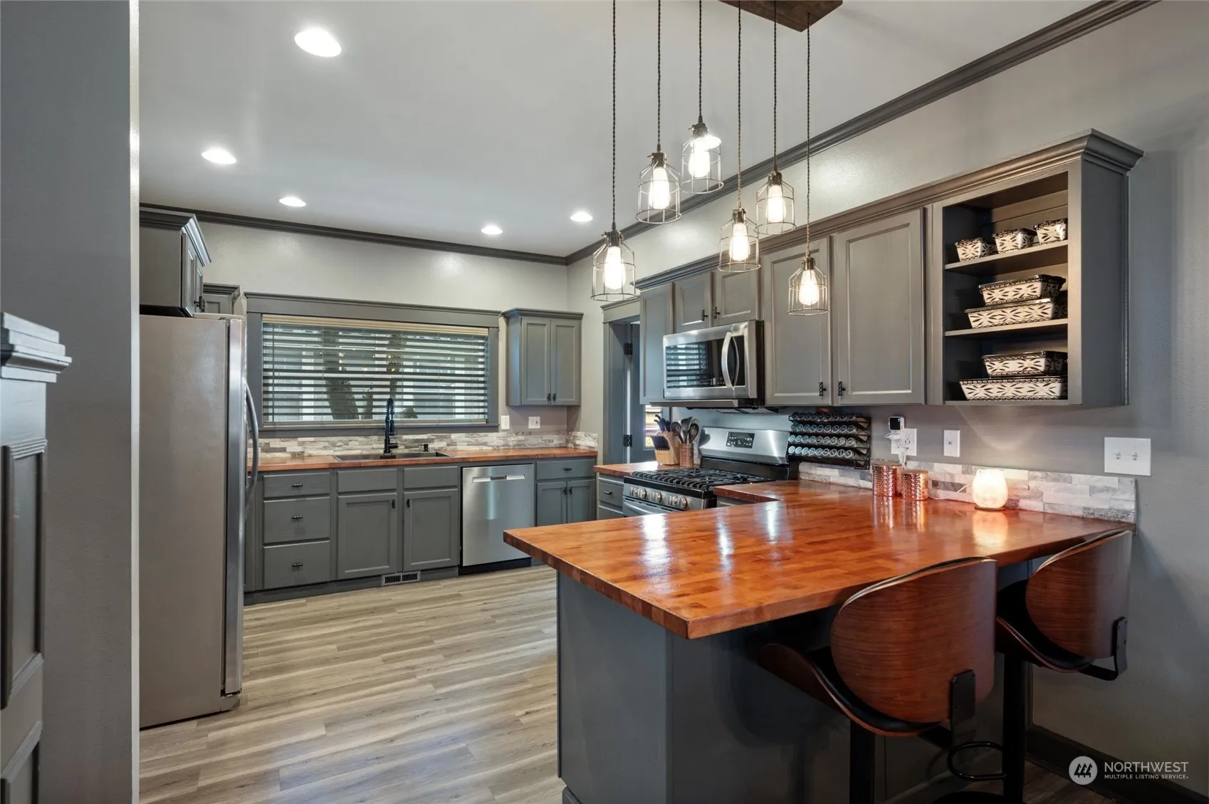 Step into the future of stylish living w/this chic, updated home designed for today’s buyers. The layout features a main-level bedroom. Embrace the luxury plank vinyl floors and custom window treatments that perfectly complement your urban aesthetic. Enjoy sunset views from the 2nd story balcony and access to Birch Bay waterfront trails and restaurants, a gated community that speaks to your active lifestyle. Kick back on the covered front porch, shoot some hoops or host gatherings on the back patio. Enjoy the drop zone mudroom off the garage, and swoon over the modernized bthrms and kitchen with a masculine edge and detail. Seize the opportunity to own this uniquely stylish home that captures the essence of living w/ flair and finesse.