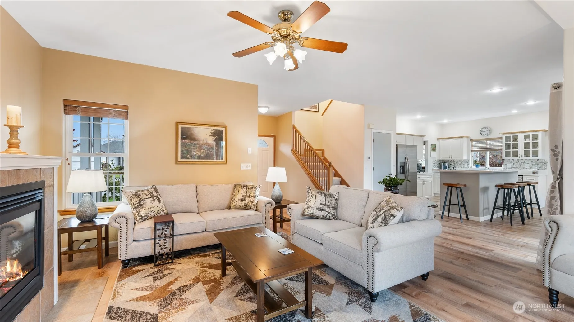 Beautiful 2 story home in Blackburn Ridge offers shy 1600 sq ft, 3 BR’s & 2 1/2 baths. Nicely remodeled main living area recently w/ new flooring and quartz countertops. Open floor plan w/ Nat gas Fireplace in living room, bay window w/ seating & storage under. Kitchen w/ eating bar, walk-in pantry, Kitchen aid flat top range w/ downdraft, office area off the kitchen, near laundry room. Double doors to private back tile patio w/ cement curbing. Nice water feature in back also. Fully fenced yard. All 3 BR’s are upstairs, primary w/ double vanity, tile floor & spacious tile shower. Attached 2 car garage, Hardy Plank siding, new composition roof recently. Well-maintained home on a cul-de-sac w/ westerly views in a very desirable area.