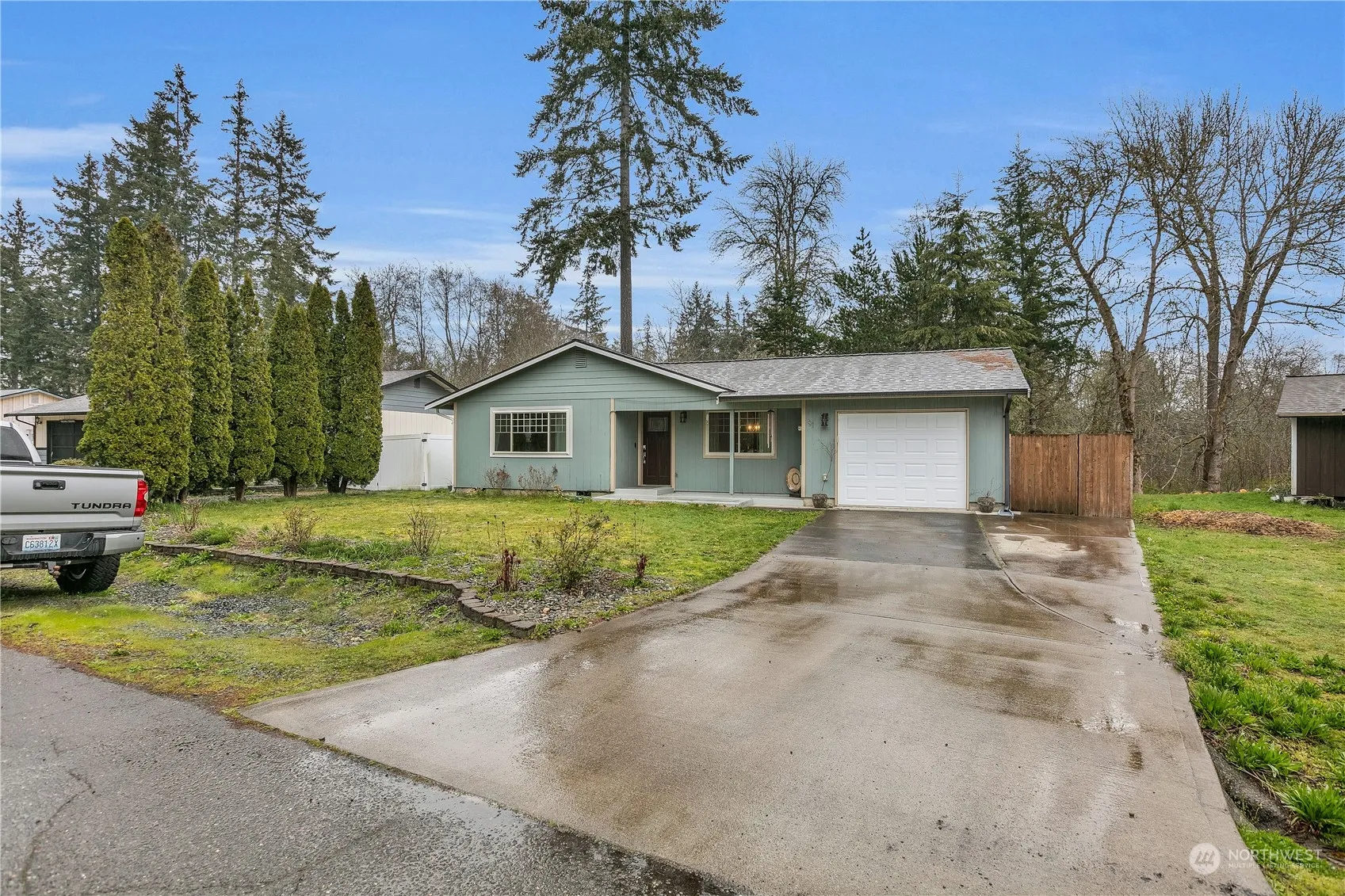 Discover this gem in Shelton, nestled in a tranquil cul-de-sac. Boasting tons of modern updates, this home features a 50-year roof (2021) with a transferable warranty and triple-pane windows (2022), ensuring energy efficiency and peace of mind. The interior shines with new solid surface countertops, fresh bathroom cabinetry (2024), and durable vinyl plank flooring for effortless upkeep. Stainless steel appliances adorn the kitchen, complementing the home’s contemporary feel. A single car garage includes convenient laundry space, while new fencing surrounds the back of property, enhancing privacy and security. With newer lighting fixtures adding a touch of elegance, this home is a blend of comfort and modernity, ready to welcome you.