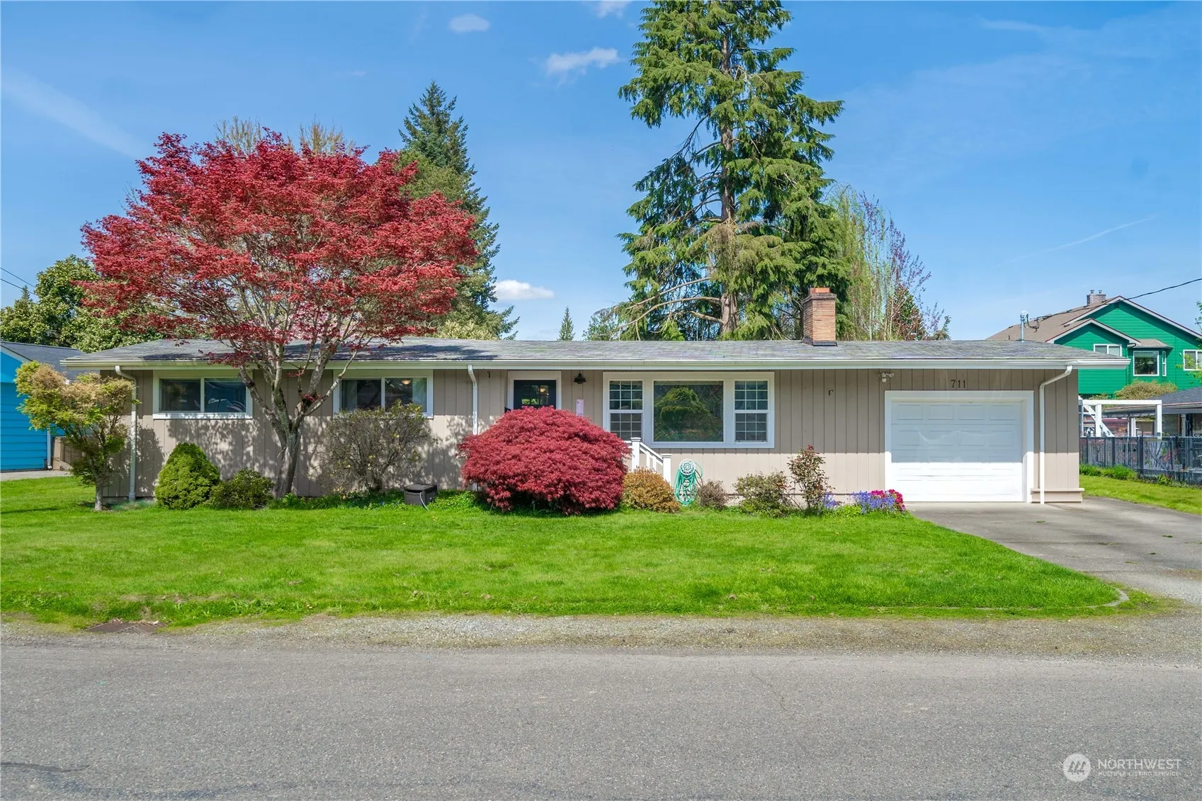 This Mid-Century single story beauty is just a 5-10 min walk to the train station, easy access to freeways & close to all the charm Sumner offers! On Entry, you’re greeted by a light & bright living area with a converted gas fireplace! You’ll wander into the oversized galley kitchen w/ ample seating. Brazilian Cherry cabinets, durable counters, & soft close drawers draw you in here. The 1+ car garage & storage area sits off the kitchen too. 3 good sized bedrooms, and a full guest bathroom dot the hallway. The addition includes a Primary Bedroom with 3/4 bathroom and large second living or bonus room! Step outside to a HUGE deck overlooking the mature back yard! Sumner schools, great shopping, ideal transit, enough said — Come see this one!