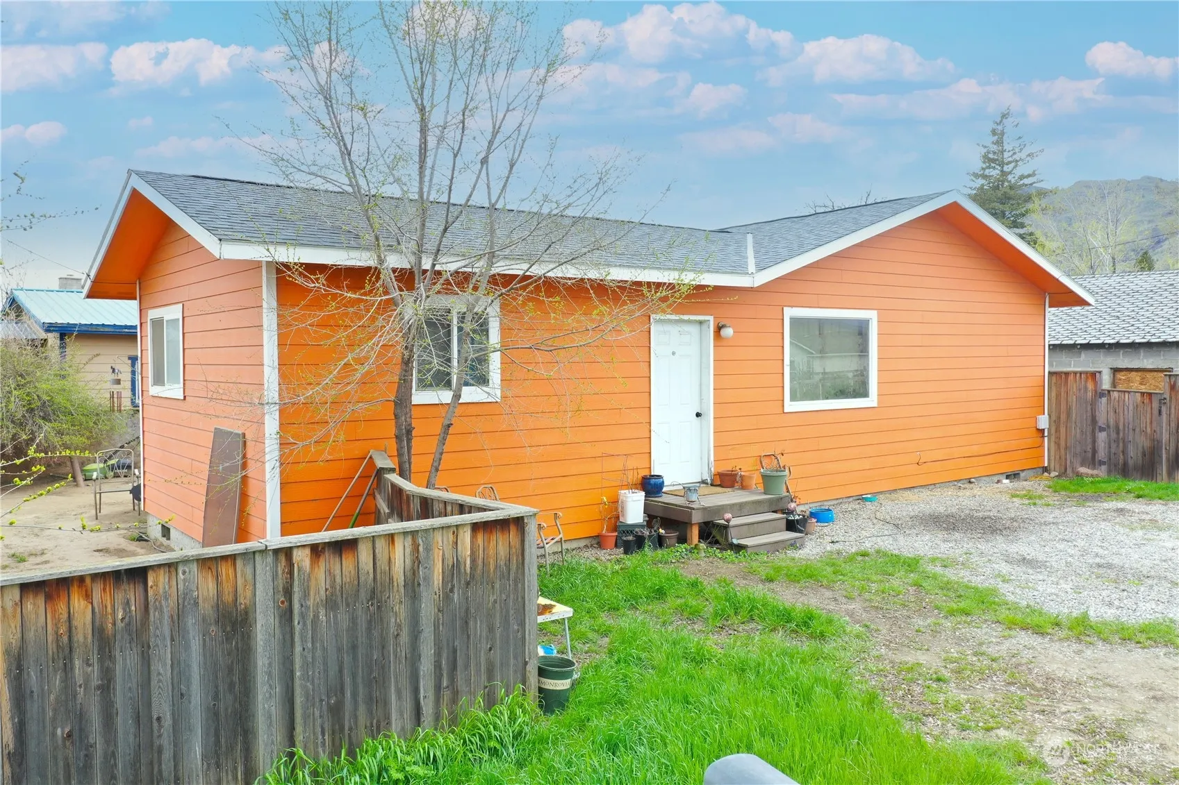 Welcome to your great starter or investment opportunity in the charming town of Oroville. This delightful 1040 sq ft home sits sits graciously on a large corner lot and underwent a thoughtful rebuild 2012, ensuring modern comfort and style. While there is still some work that needs to be done, most of the hard work is complete and some repairs needed. Nice semi-open concept. Large kitchen and dining area with ample cabinet space. Convenient coat closet by entry. 3 adequate sized bedroom and full bath. Small deck in the fenced back yard, and older garage that can be used for storage as well.