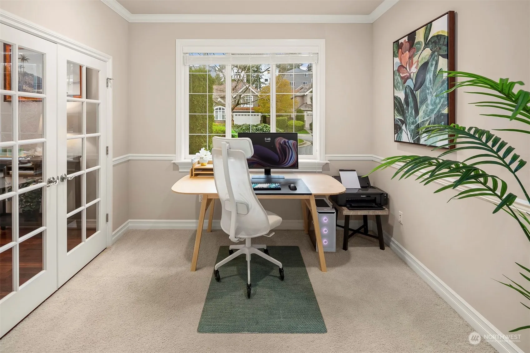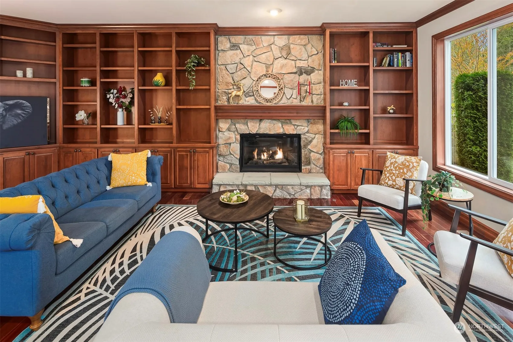 Overlooking a protected greenbelt, this magnificent John F Buchan resale in the River Crossing community is hard to come by. Timeless architecture w/ bright, open layout is designed to optimize privacy & view of the scenic nature preserve from all living areas. 4 bed/2.5 bath w/ bonus room boasts grand entry w/dramatic ceilings, office/bedroom on main, expansive real hardwood floors, great room w/gas fireplace, extensive stone & wood work, chef’s dream kitchen w/ custom cabinetry, double pantry, wrought iron spindle staircase, primary suite w/walk in closet, 5-piece bath w/ soaking tub, built-in closets in every room, 3-car garage, A/C. 5 houses away from community playground. A few Steps to Mill Creek Town Center & North Creek Trail Head.