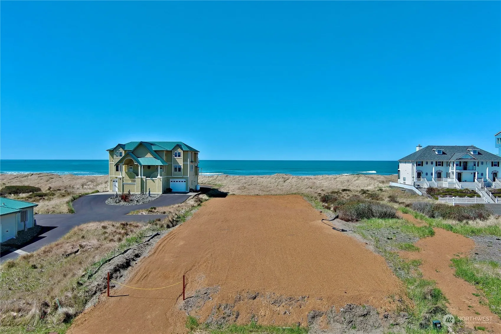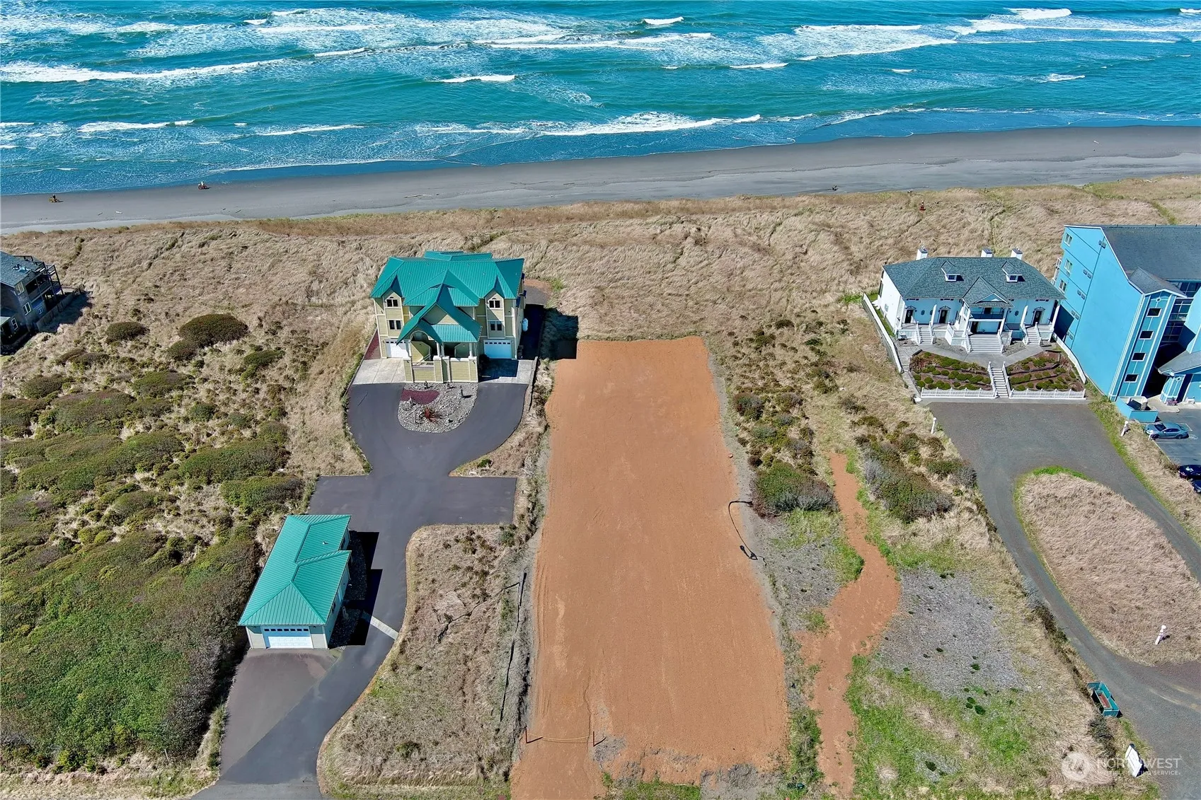 Embrace 80’ of tranquil oceanfront/view property, zoned R-9 Multi-Family Ultra High Density—perfect for a dream home or multi-unit development. Property is cleared, leveled, rocked, and developed to the Pacific Ocean OHWM buffer, with driveway in place. Water, power, and sewer are available in the street—bring your plans and build! Located just north of the jetty in an area of homes and condos, you’re also near Ocean Shores amenities including golf, shopping, restaurants, movie theater, bowling, and more. Enjoy endless beach walks, stunning sunsets, and the soothing rhythm of the Pacific. LIDs are paid and property is a member of the OS Community Club (~$195/year).