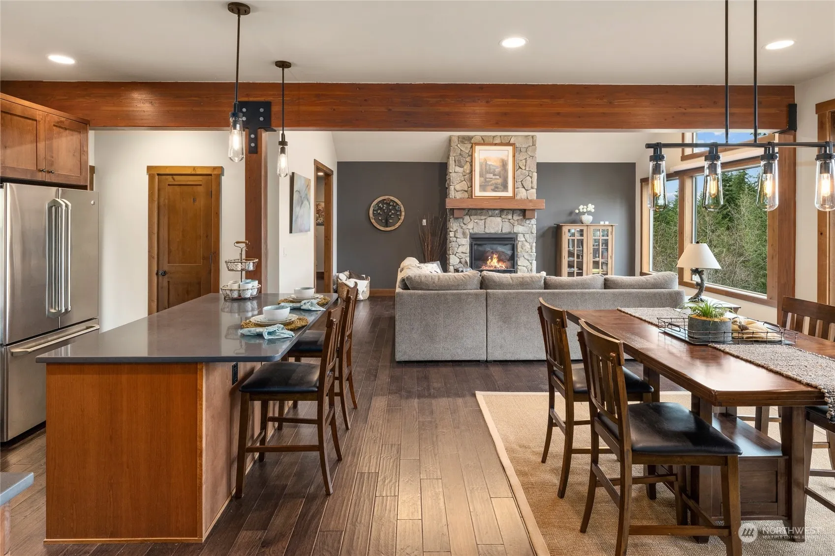 Nestled at the end of a quiet culdesac on High Country Court in coveted Trailside, this mountain retreat features an open concept rambler with large wood-wrapped windows for the enjoyment of stunning views of Stuart Mountain Range. This hard to find one level upgraded floor plan features 3 bedrooms, 2.5 baths, wood flooring & doors, soaring ceilings, stone fireplace and brand new deck. Spacious primary suite has custom tile shower and walk-in closet w/custom wood wardrobe. Private, dead-end street with forest land & trail access nearby. The Trailside community offers gated entry, pool, hot tub, ping pong, billiards & fire pit. Community hiking trails plus access to forest-service trails. Ride ATV’s/dirt-bikes/snowmobiles from your driveway.