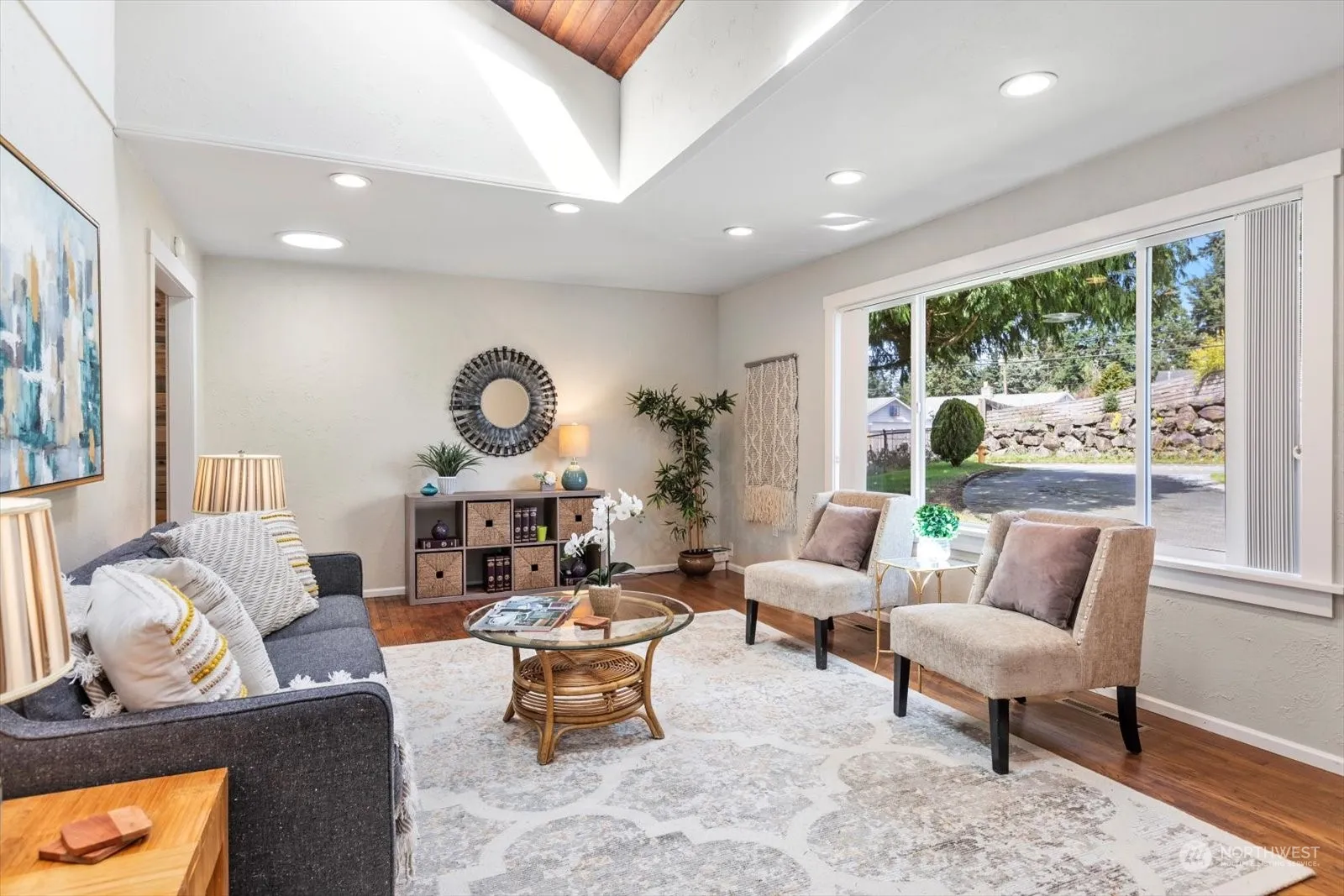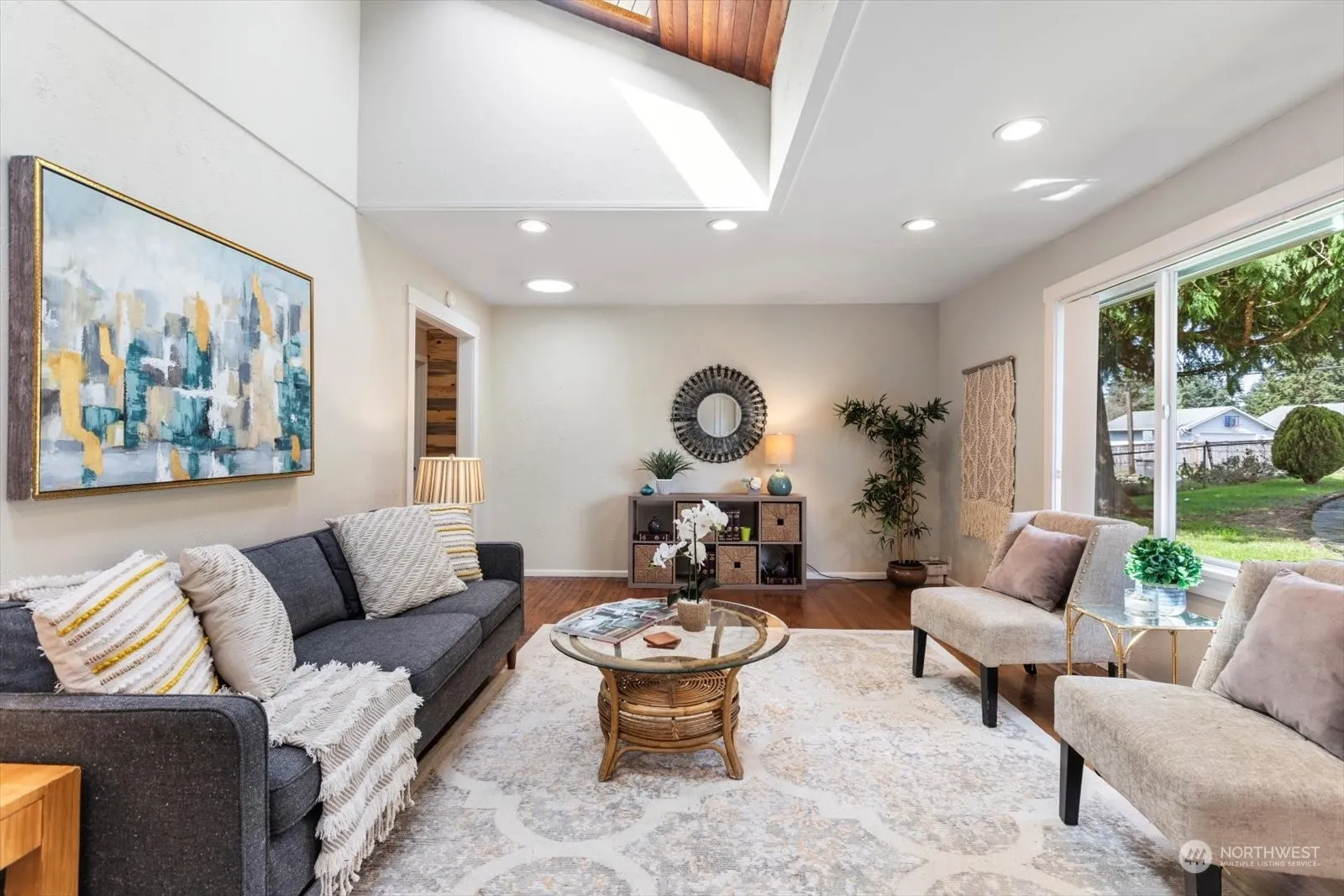 You’ll love this charming three bedroom one bath home with A/C; freshly painted inside with an updated kitchen; hardwood floors throughout main living areas; covered outdoor space off primary, custom ceiling with two skylights brighten the living space. Detached two car garage/shop with second entry to mud room with laundry and an abundance of cabinet storage.. Large backyard opens up endless possibilities. Set back off 200th with ample circular drive. Conveniently located to freeways, Lynnwood transit center, Edmonds CC and shopping.
