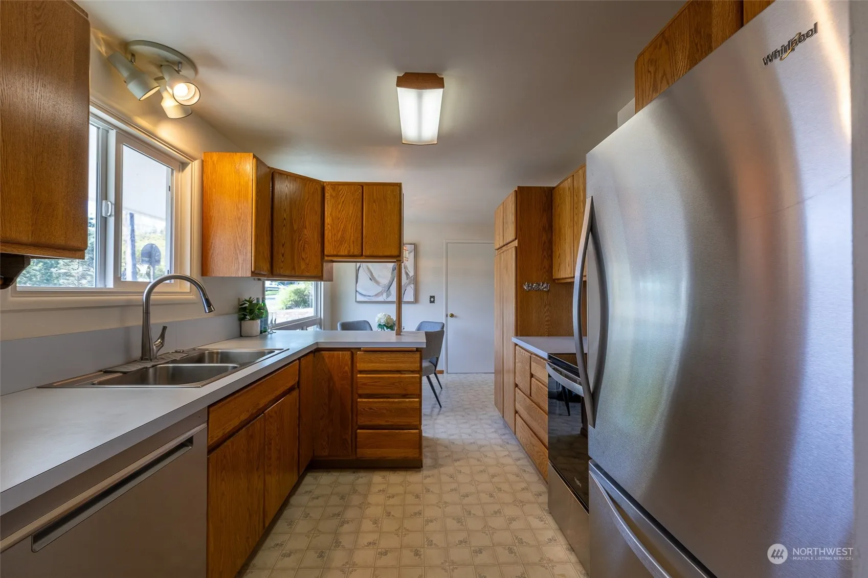 What a lovely, well-cared for sprawling rambler on a larger 1/4-acre flat-level lot in the Charming town of Anacortes. Brand new stainless appliances and interior paint. Gas fire place in the living room, and lots of living space with extra bonus room. The home has a one-car attached garage, another detached one-car garage, and a spacious shop/shed. It has a beautiful courtyard with mature landscaping outside the living room with large windows. You can get peek-a-boo view of the Bay and downtown from the yard. The driveway is extra spacious and perfect for multiple cars, RV parking, boats, other toys etc. Virtual Tour available. Roof was replaced in 2016 with 25 year roof.