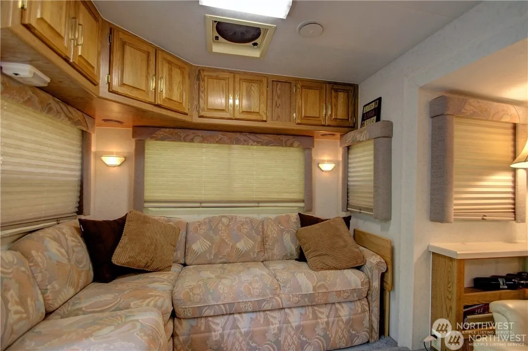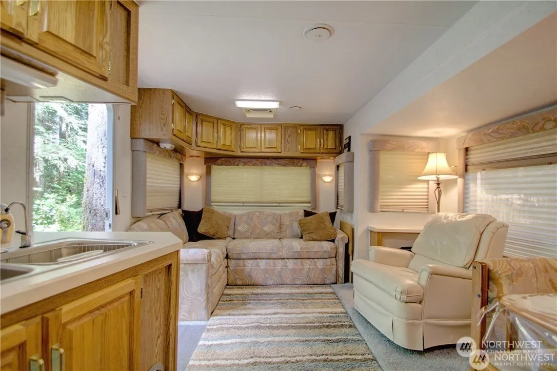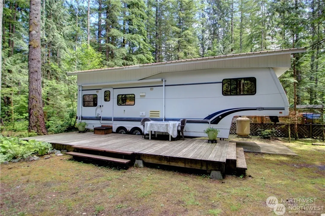 Enjoy your large, private feeling beautiful lot with a very well maintained spacious 5th wheel. This is a great start property, offering everything you need, with room to add your personal touches. Sit on the deck and enjoy the natural setting, or be active at one of the many great amenities the Glen has to offer. The Glen is zoned recreational for 120 days of use out of the year and has all the amenities you could want, including 2 pools, hot tub, tennis court, library, laundry mat, 2 clubhouse, 24 hr security, gated entry, & play areas.