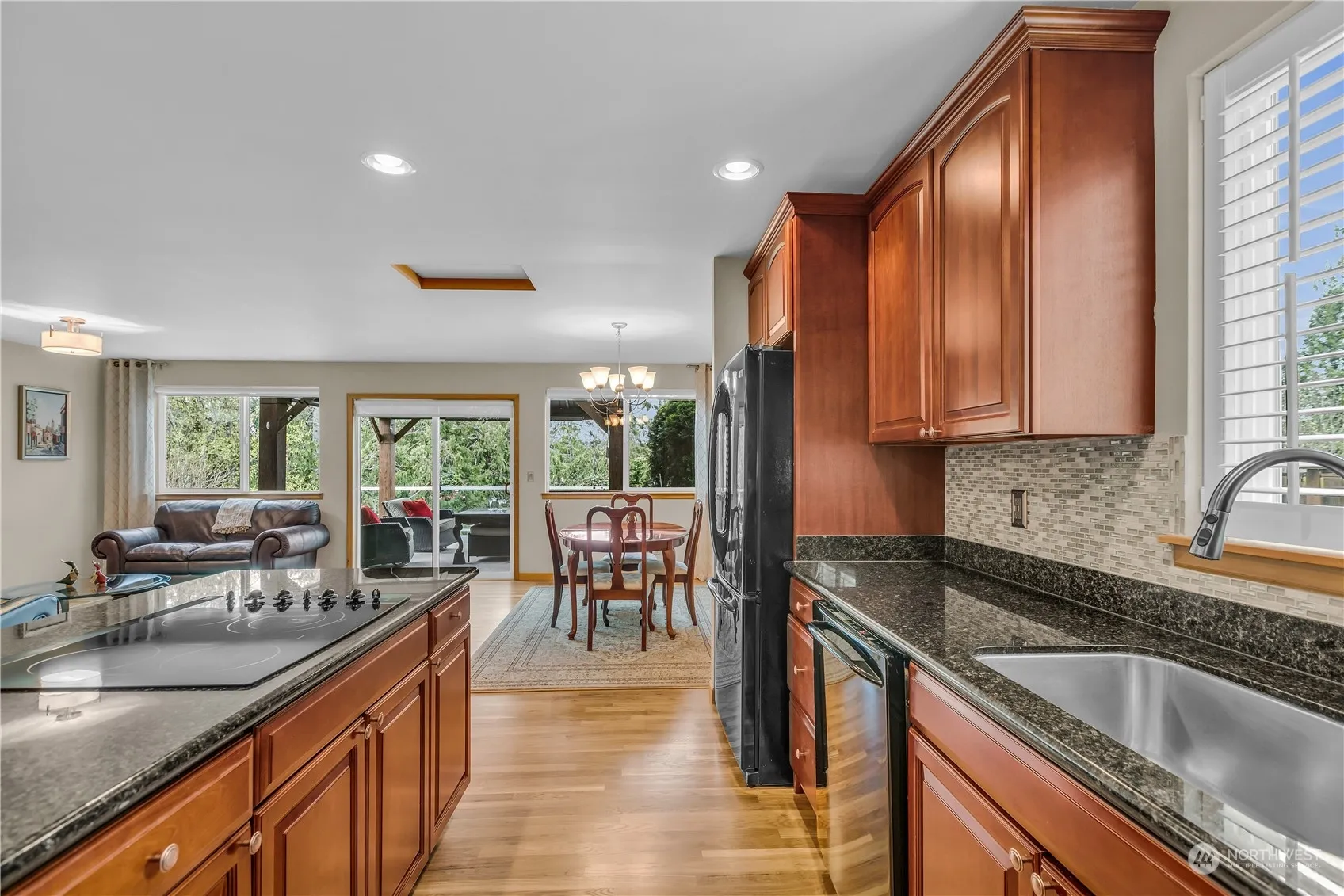 Discover life in Panorama West! Open plan living, abundant light, high ceilings, and a Huge six-car garage await in this 3 bed, 2.5 bath home with Office/extra Bedroom. Hardwood floors lead to a stunning backyard with custom covered deck, wildlife views, & swallows returning every year. Enjoy a spacious great room, Gourmet Kitchen, gas available for Stovetop, walk-in pantry, half bath, & separate dining all on the main floor. Upstairs find a spacious loft, laundry, Primary suite with 5-piece ensuite & walk-in closet. Property boasts sprinkler system, generator hookup 220 in Garage, fenced yard, heated Garage, heat pump, two sheds, hot water spigot, and lush landscaping throughout. Easy access to Fennel Creek Trailhead and Victor Falls Park