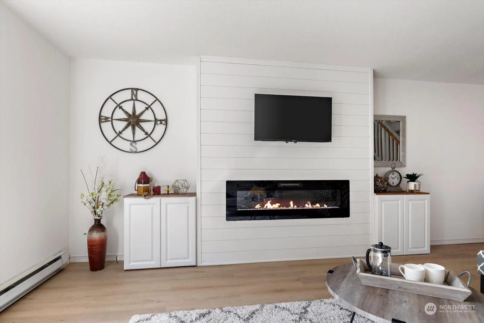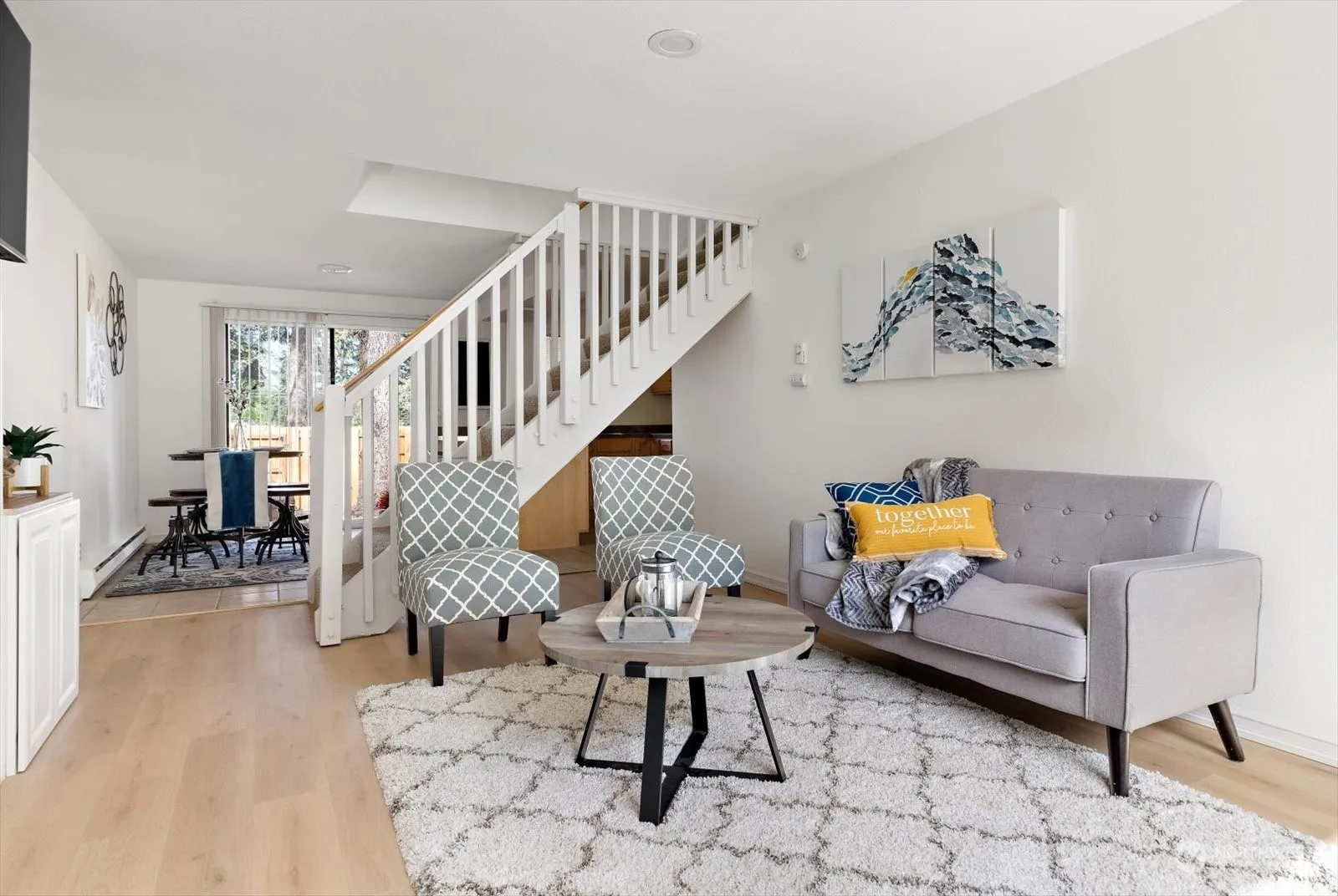 Tastefully updated townhouse in the heart of Oak Harbor. Inviting living space w/shiplap surrounding warm electric fireplace insert. Open concept has flow from living to dining & kitchen, making entertaining easy. Convenient powder room for guests and laundry tucked away off the kitchen, rounds out the main floor features. Upstairs find large primary bedroom w/WIC. Jack and Jill full bath is shared with guest bedroom. Low maintenance is the name of the game with LVP flooring in most of the house, and no grass to cut in the fully-fenced backyard. Gate off back of fence opens to greenspace that expands from SW Harrier St to SW Fairhaven. Quick access to schools, base, shopping, etc.