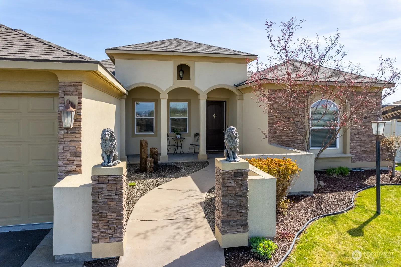 Exquisite Mediterranean style home in Willow Crest w/ gorgeous courtyard entry includes 4 beds (or 3 beds+ office), 3 baths & 3-car garage on just over 1/2 acre. Well cared for home has incredible architectural detail incl tray ceilings, crown moldings w/ open concept for Kitchen –Living –Dining room. Kitchen w/ granite counters, island w/ breakfast bar, stainless steel appliances & pendant lighting. Living room w/ propane fireplace opens to beautifully manicured back yard. Primary en-suite w/ raised dual vanity, soak tub & WIC. Ensuite opens to the patio. 2-beds w/ WIC’s. Fenced back yard w/ Cherry, Sweet Plum, Peach, Apricot & Pear trees. Raised garden beds, lg gravel area for parking/storing your toys & an 8’ x 20’ storage shed.