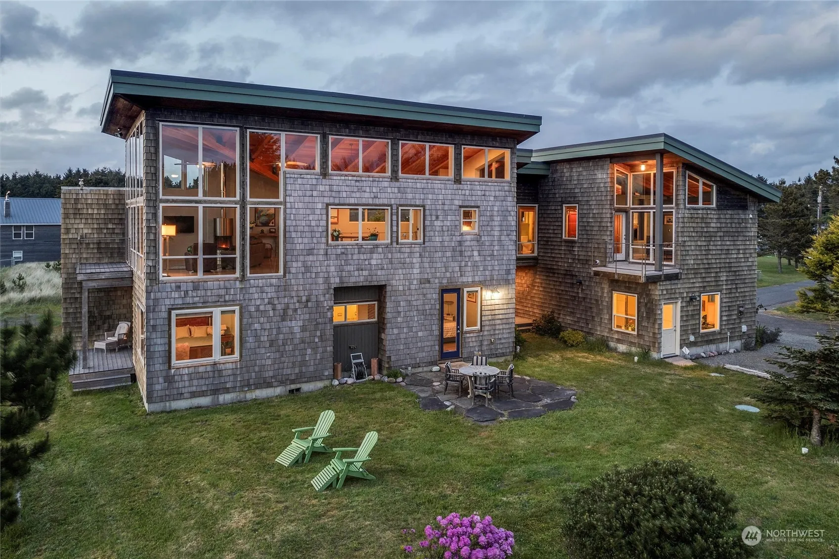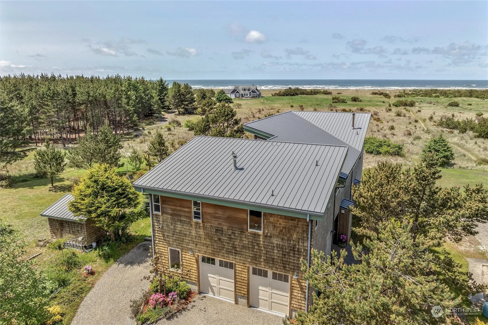 Truly exceptional custom built ocean front retreat! Spectacular unobstructed ocean views! Solar designed – butterfly roof/large windows maximize views, warmth and light from the south and west on both floors. Wood, steel and concrete construction, built to withstand whatever nature brings in comfort. Enter through exquisite doors, ascend hand built stairs to expansive kitchen/great room, guest bath, luxurious primary suite with double sided gas fireplace. Radiant floor system. Home is incredibly comfortable, well built and efficient. Custom finishes and fixtures throughout. Lower level offers 2 more bedrooms and full bath, utility rooms and abundant storage, 2 car+ garage. Includes adjacent parcel with electricity, septic and well easement.