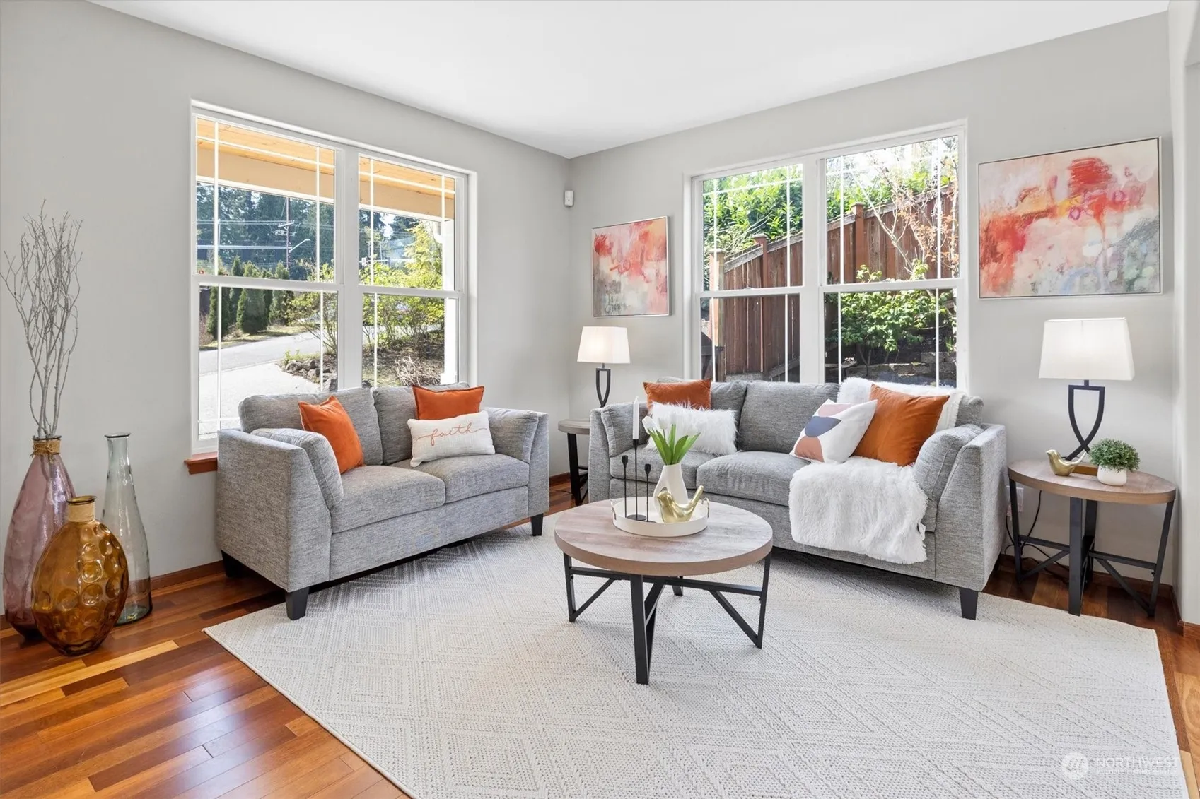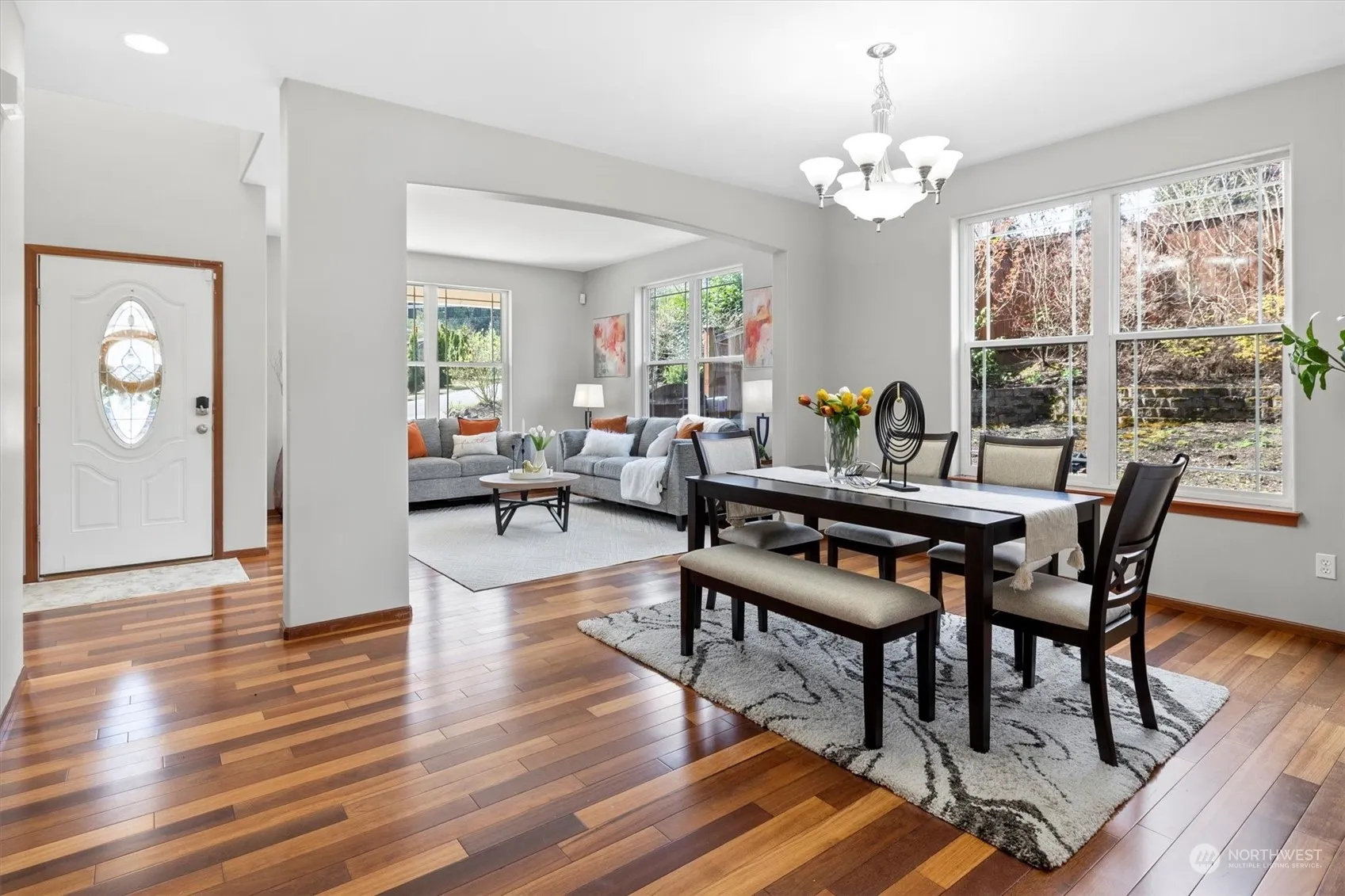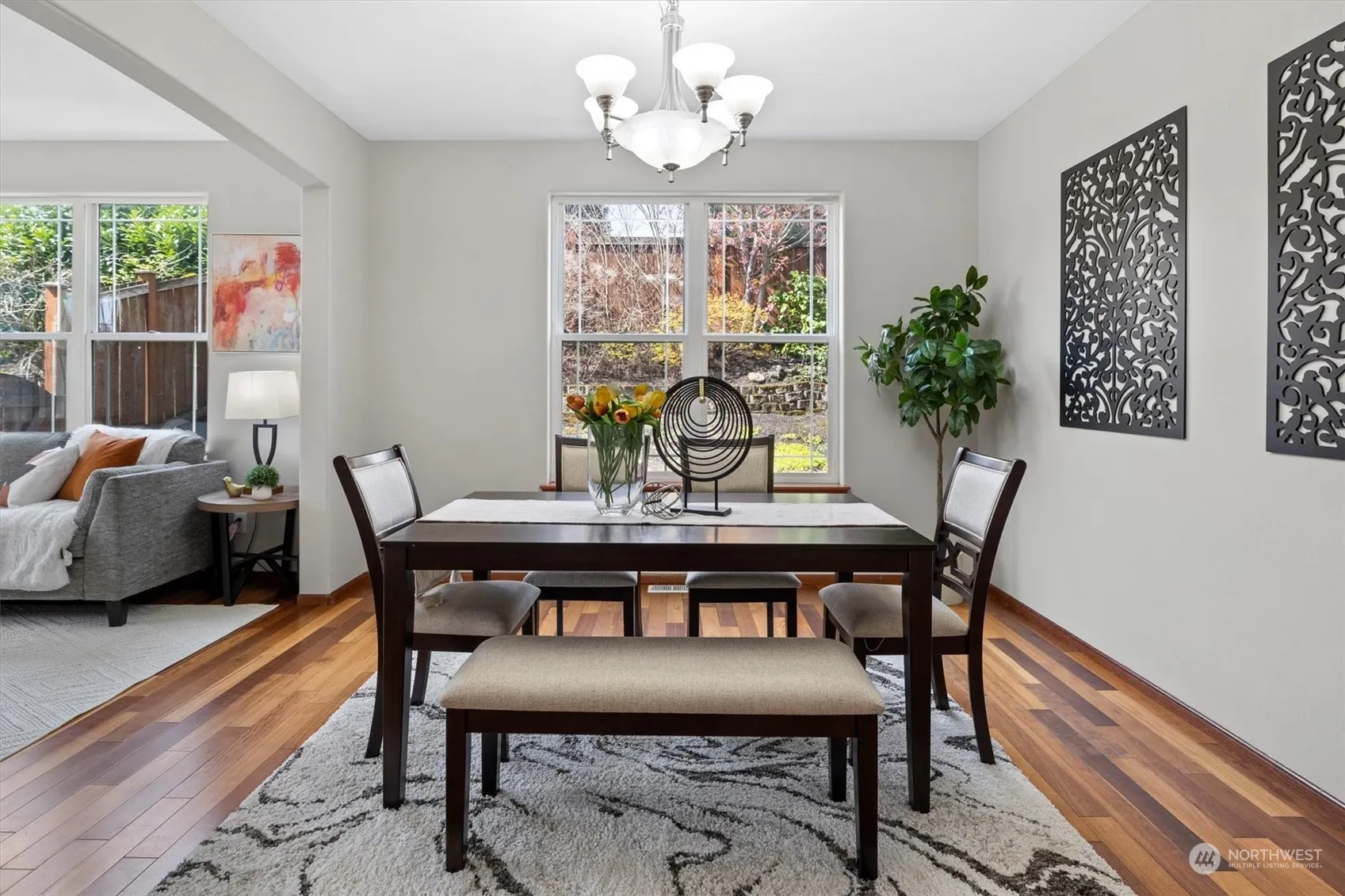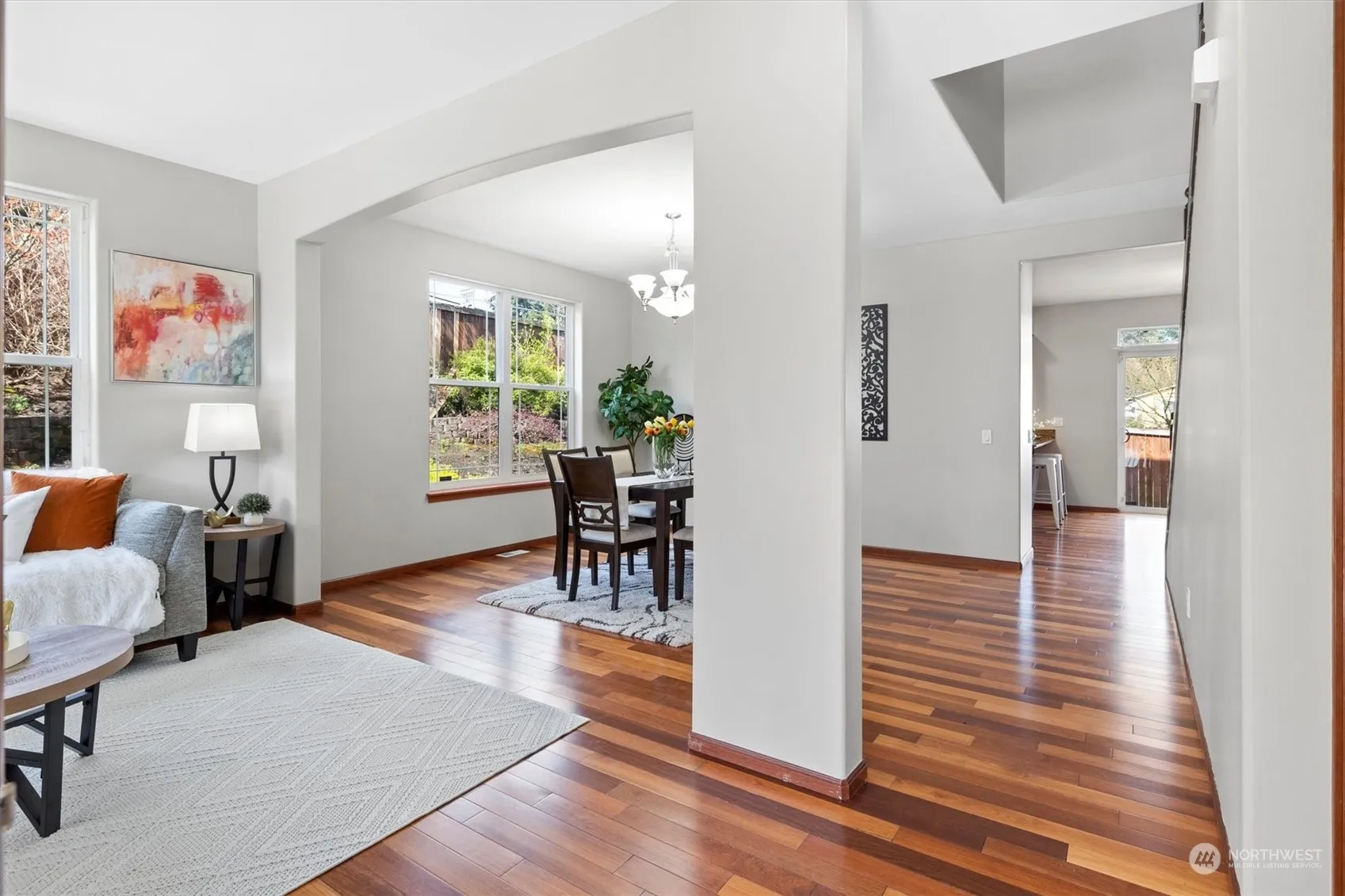 Stunning Bothell home, boasting 2,624 sq.ft., 4 bedrooms & a bonus room, in the renowned Northshore School District. Features include immaculate hardwood floors on the main level, formal living & dining one of which can be converted into den for work from home situation. Gourmet kitchen w/ SS appliances, huge pantry and eat in area & family room w/ gas fireplace. The upper level is thoughtfully designed for privacy in each room. The secluded master suite, with double doors, includes a luxurious 5-piece bath with a large soaking tub and spacious shower. 3 additional bedrooms, expansive bonus room with second bath finishes second floor. Highlights include fully fenced yard, Corner lot, minutes away from 527, 405, restaurants.