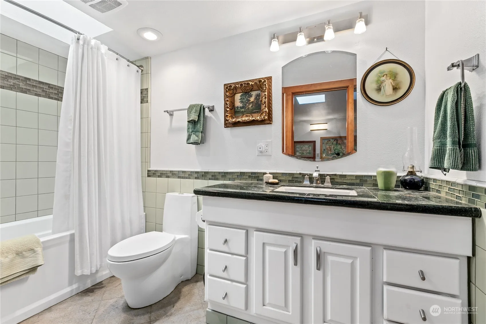 The West facing side of this 2 bedroom 3 bath home overlooks Saratoga Passage and the Olympic mountains for views of stunning Northwest sunsets. The wrap around deck is entertainment sized and that yard fully fenced. This home was reimagined with gorgeous wood finishes, stained glass accents, quality fixtures and natural wide plank hickory floors. The kitchen is designed to suit a professional; favoring tall cabinets, extra service sink and Viking gas cook top. Granite counter tops are featured in kitchen and bath.There’s a charming media room and office. Property has two garages and a tranquil studio with full bath and kitchen. The grounds also treat you to a privacy of natural landscape and gardenspace. Community beach access included!