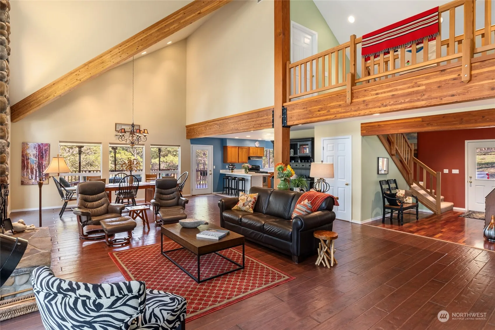 Surrounded by forest, lush meadows and a seasonal creek, this mostly level property is home to an abundance of wildlife. Great room with massive river rock fireplace, wood beams, soaring ceilings and tons of natural light from large windows that capture the mountain views. 3 guest bedrooms, full bath and a luxurious primary suite, complete with 4 pc bath and w/in closet on the main level. Office, 1/2 bath and bonus room on the upper level. Spacious deck provides generous outdoor living space without a neighbor in sight. 28×36 shop offers parking and workshop. Find endless possibilities with 2 tax parcels totaling 18.49 acres. Find serenity nestled in the trees at this stunning, custom mountain retreat!