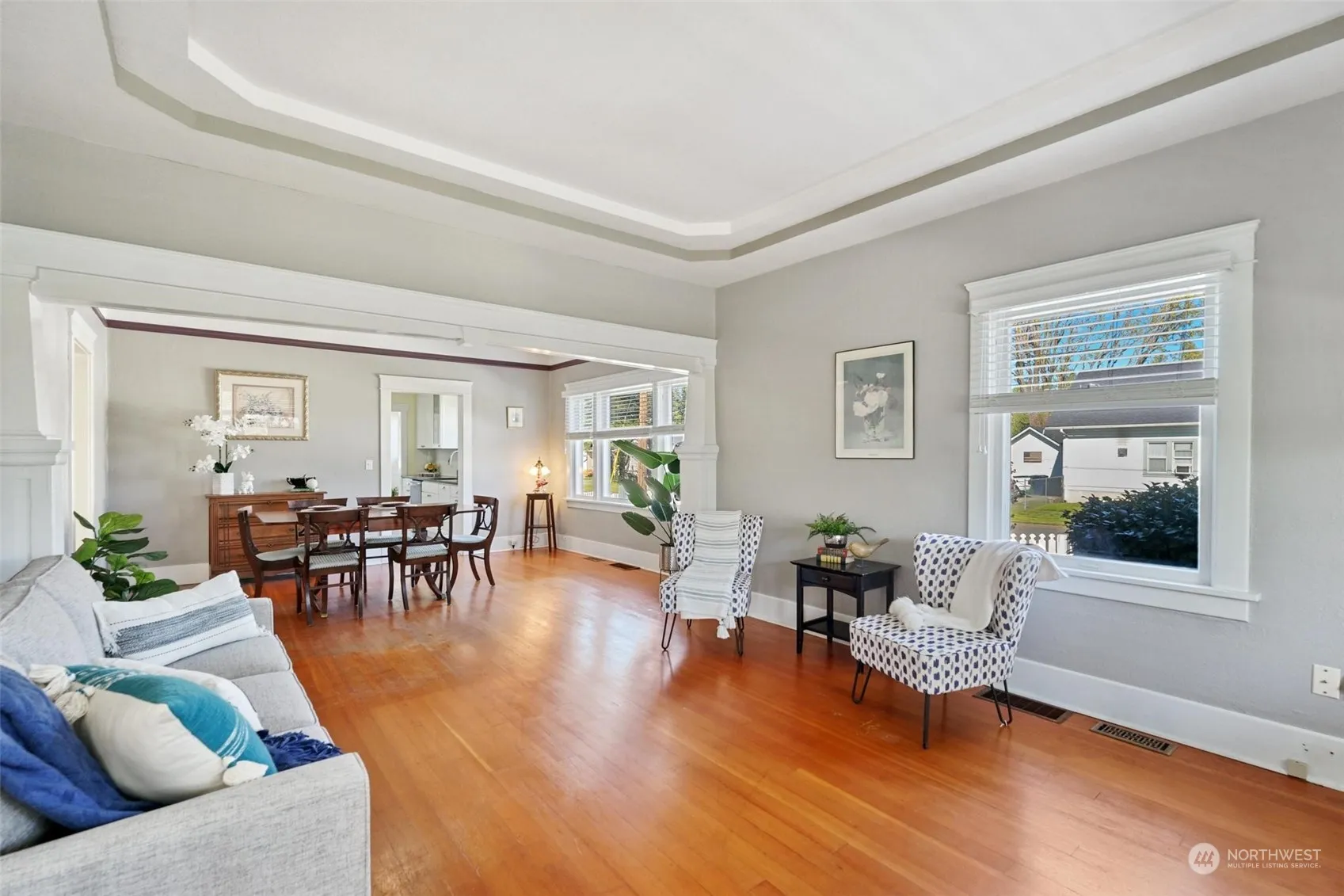 Welcome to this turn key Craftsman home in the heart of Enumclaw! Original hardwood floors and abundant natural light welcome you into the inviting living spaces. 2 spacious bedrooms and one large updated bathroom. Tall ceilings, built in linen closet and solid wood doors add to it’s charm. The renovated kitchen featuring SS appliances, quartz countertops and white shaker cabinets. A bonus den upstairs offers versatility as a guest bedroom or home office, while extra storage space in the unfinished attic provides ample room for your belongings. Oversized detached two-car garage. Large corner lot, with endless gardening possibilities. This home is perfect blend of comfort and convenience, walking distance to all the downtown amenities.