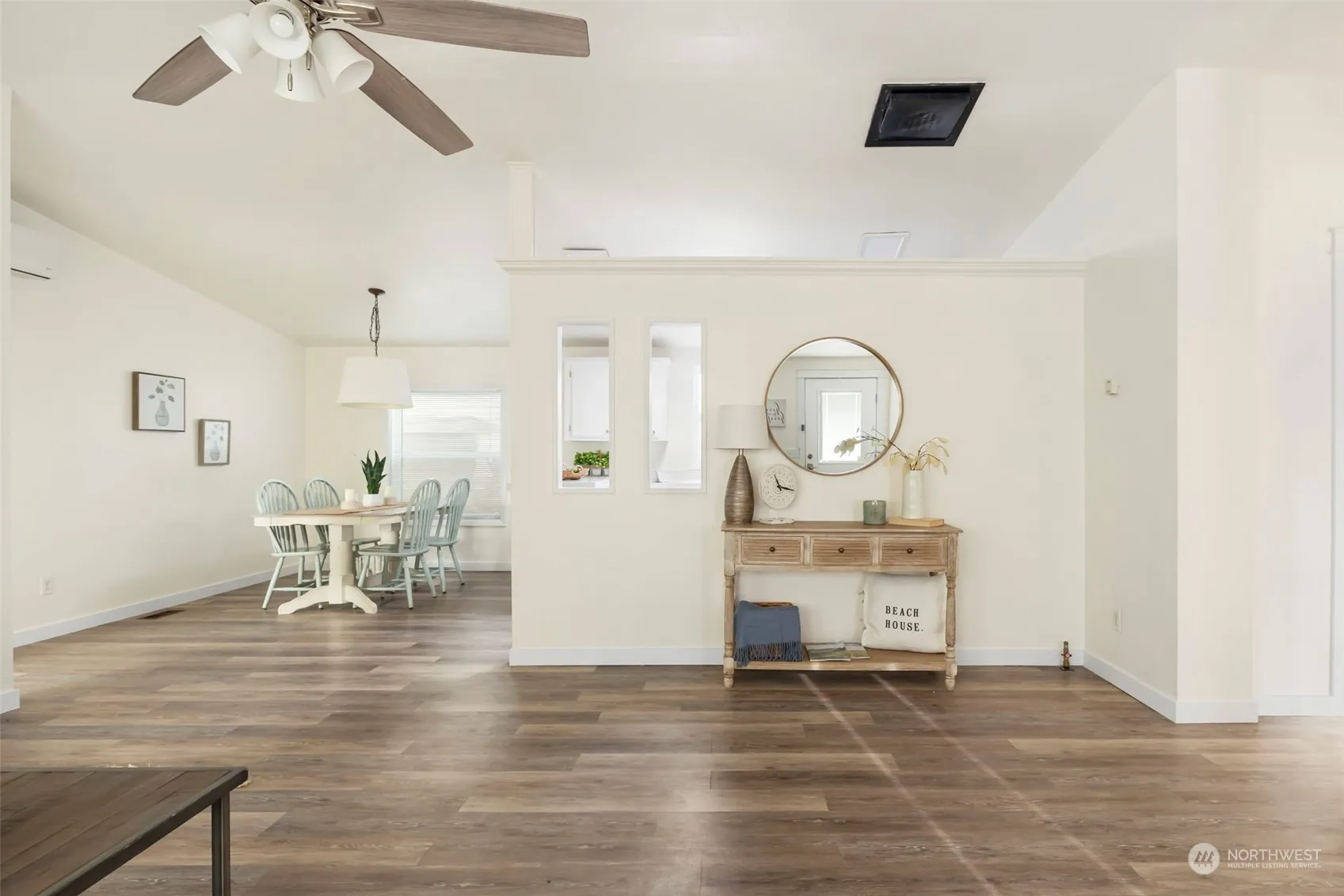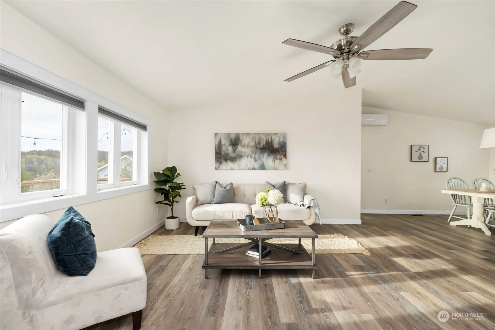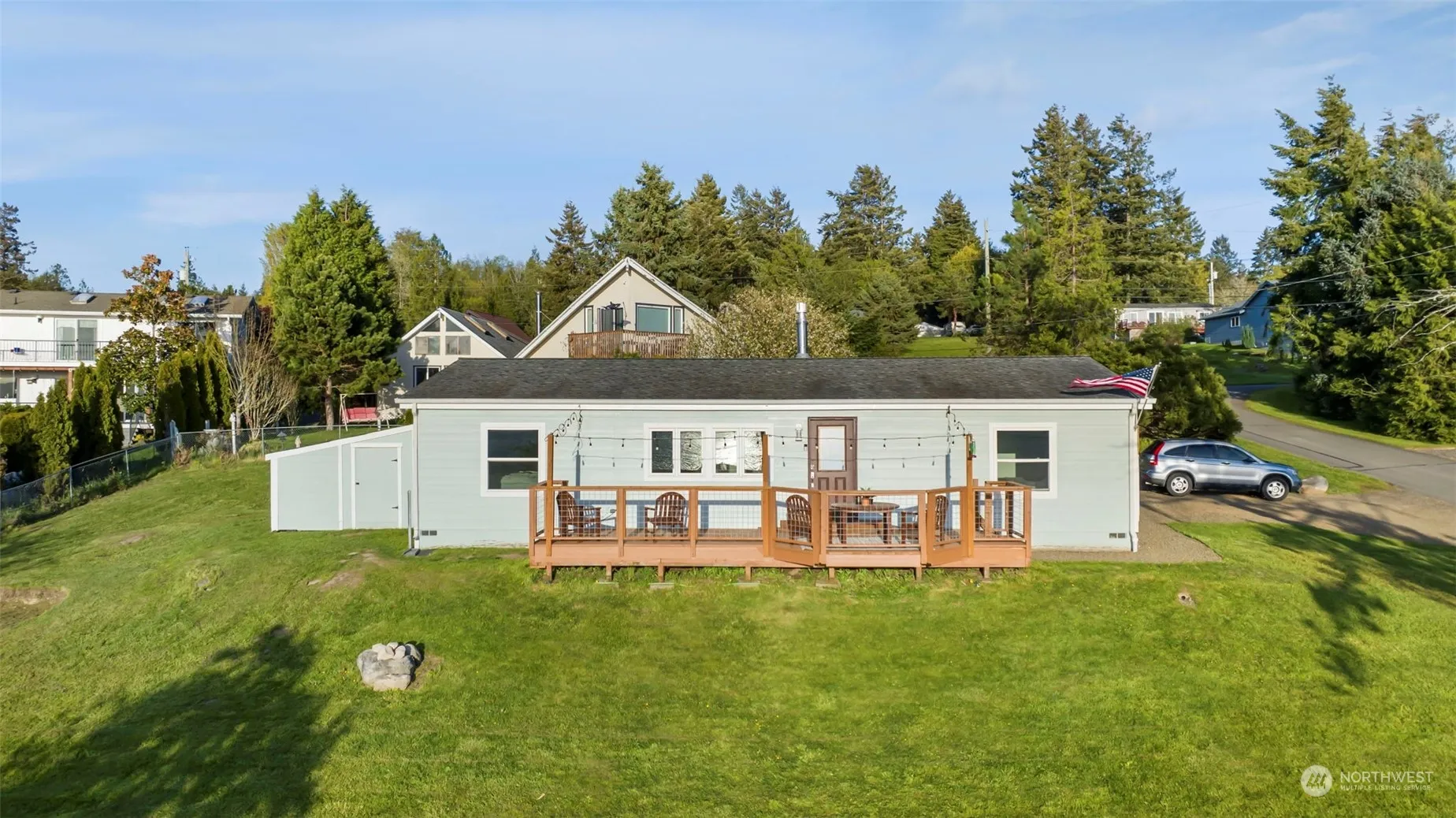 Discover serene beauty of waterfront living in this cozy haven, perfectly nestled to offer panoramic views of the shimmering waters. This delightful residence features a warm & inviting space with an efficient floor plan that maximizes every inch w/ primary on one end & 2 additional beds & bath on the other. Natural light floods through, creating an airy atmosphere that complements the scenic outdoor backdrop. Functional kitchen has newly painted cabinetry, quartz counters & plenty of storage. Rest & rejuvenate in the comfortable primary that promises peaceful slumbers and captivating water views upon waking. Step onto a delightful deck for outdoor entertaining & enjoy the lush fruit trees, garden space, private beach access & more!