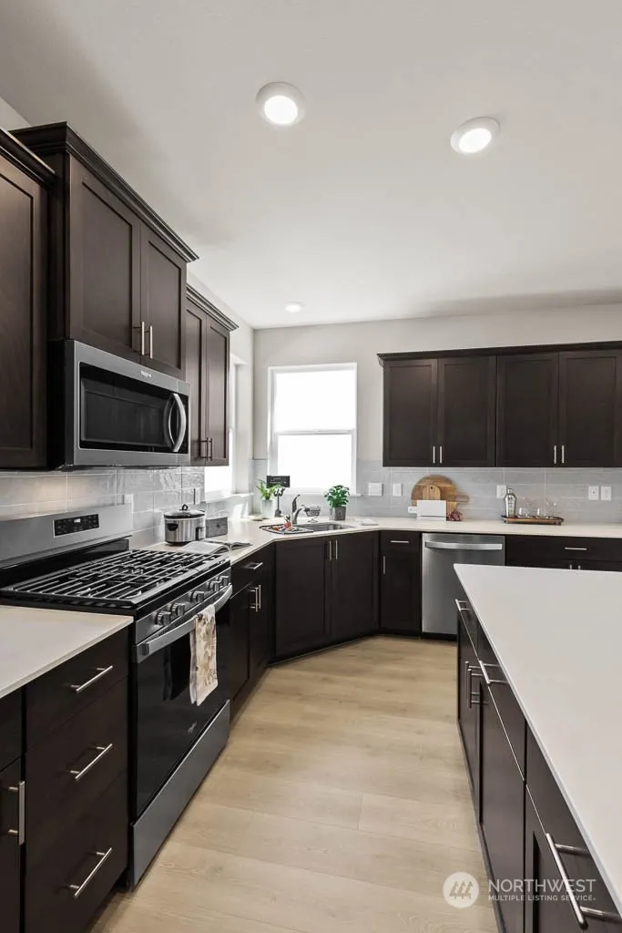 Welcome to DR Horton’s new Ridgeview community. The Lawson has single story living that everyone is excited about! Enclosed covered back porch. 2 CAR GARAGE! Front yard includes full landscape with irrigation. Window View Kitchen, features gas cooktop, SS appliances, solid quartz counters & full height backsplash, soft close drawers, walk in pantry. Vaulted 9-foot ceilings and floor to ceiling accent wall for modern electric fireplace with mantel and outlets for TV. Primary suite w/ large walk-in closet, double vanity w/ large shower & soaking tub. Utility room and primary closet connect! A/C included in these homes! Buyers must register their brokers on or before first visit including open houses.