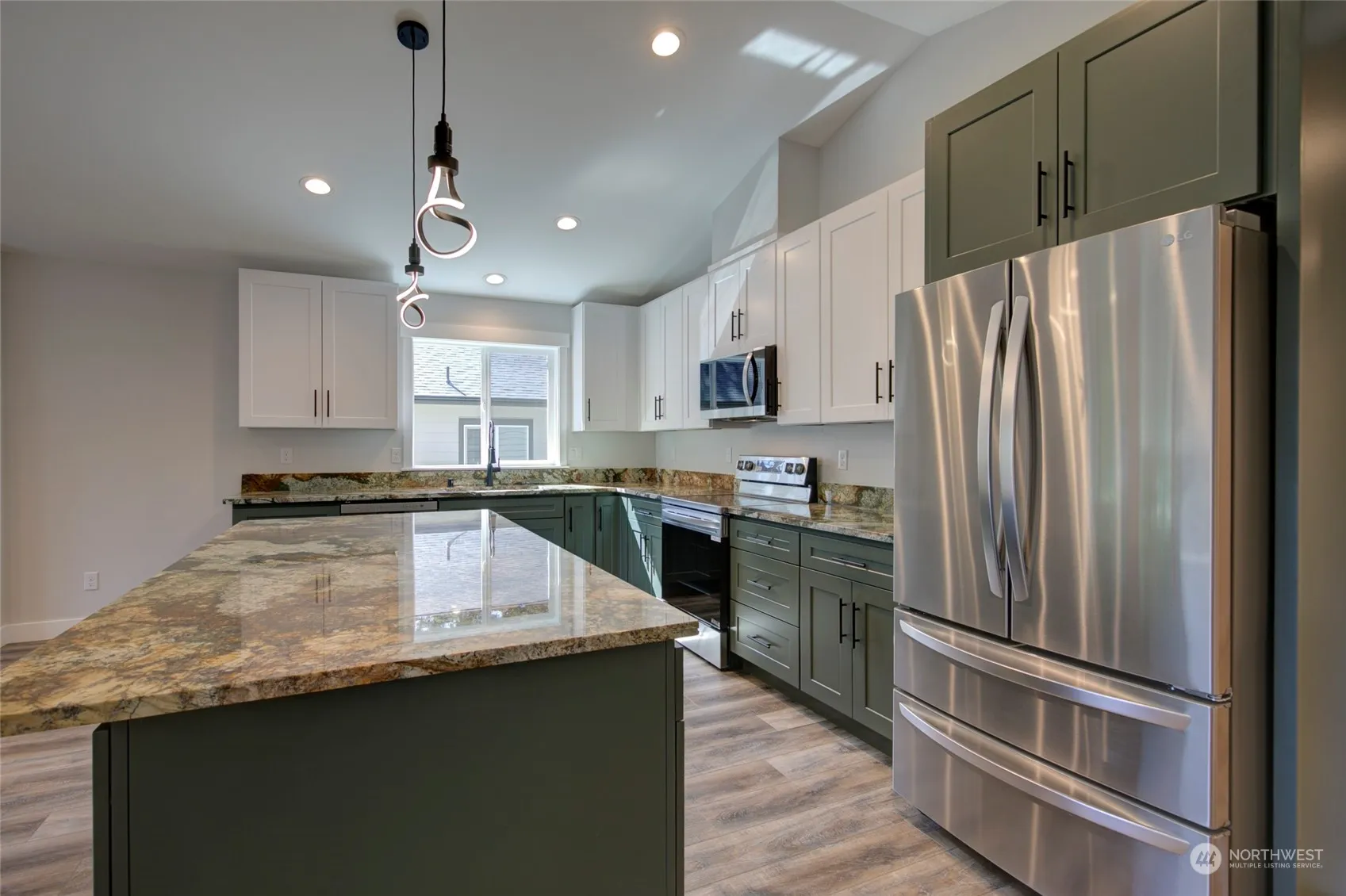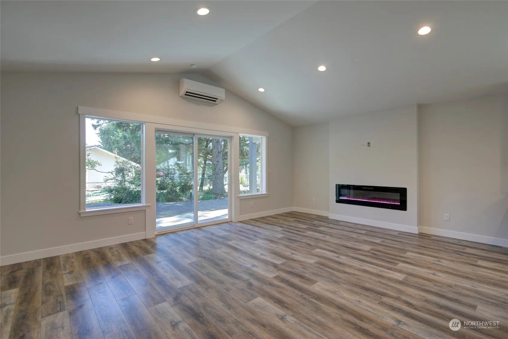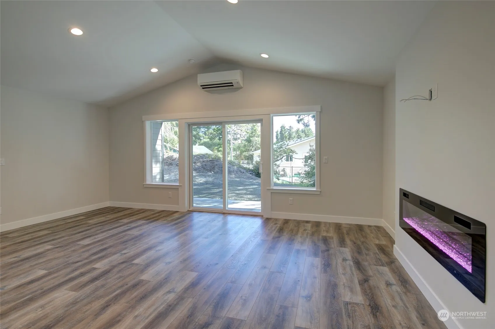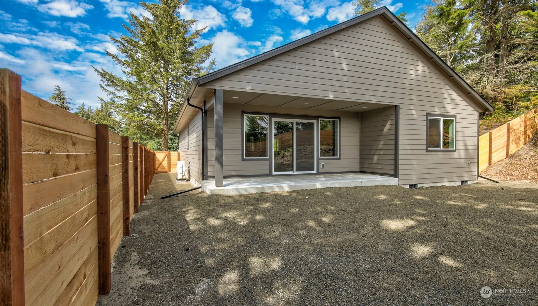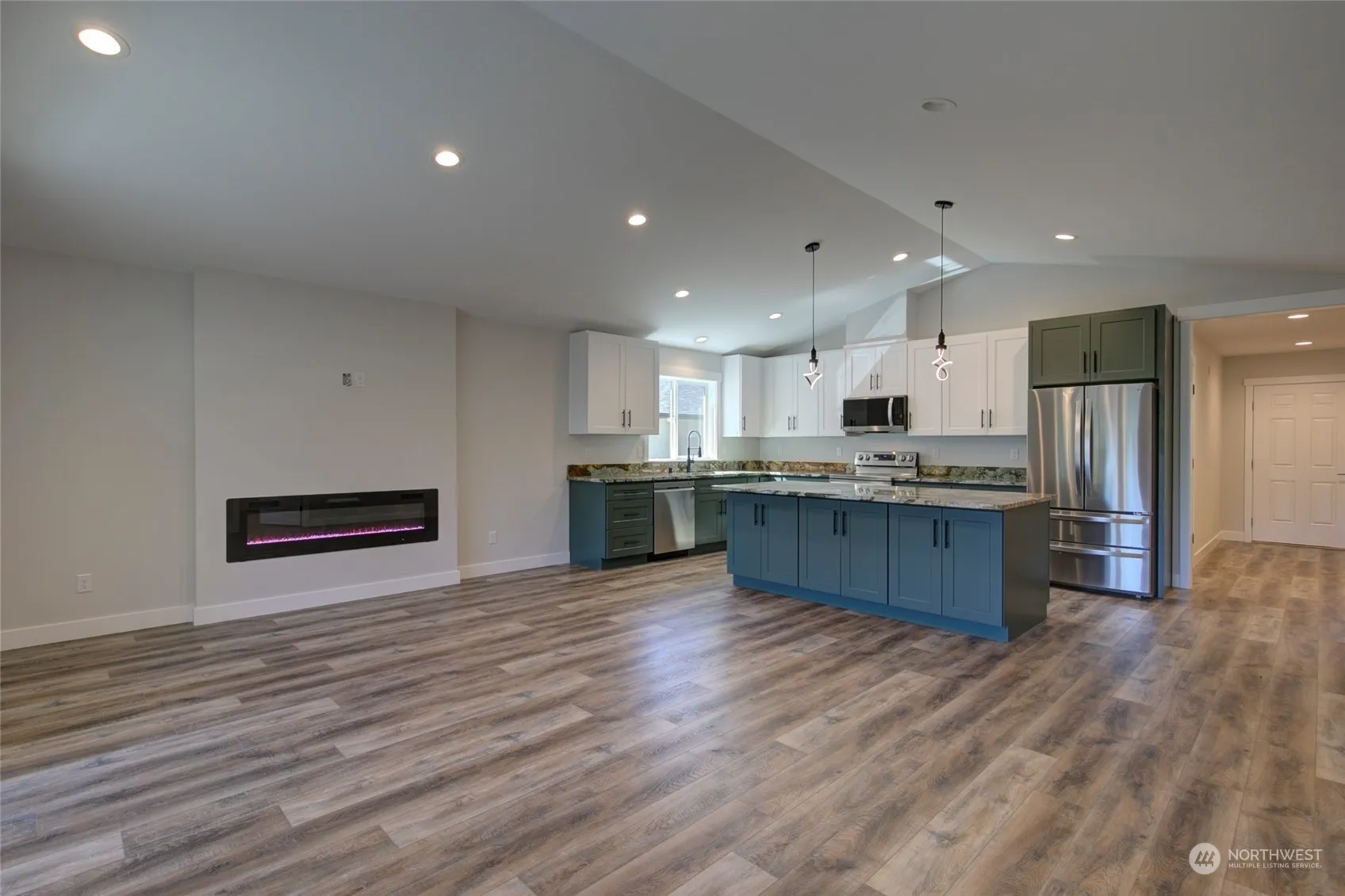 New Construction – clean & move-in ready! Builder added 6′ cedar privacy fence + fully fenced backyard. Located in a quiet residential neighborhood within walking distance to Bill Ellis Park w/ public lake access to Duck Lake. Spacious 1,323 SF 2 bed/2 bath home features easy-care LVP flooring, open concept living space w/ vaulted ceilings, electric fireplace, 3′ doors throughout, efficient Mini-Split HP w/ heating & cooling & kitchen w/ granite countertops, large island & SS appliances (refrigerator included!). Primary Suite w/ step-in shower, double sinks & walk-in closet. Guest bedroom & full bath + designated laundry room. Large covered back patio & covered front entry. Oversized 345 SF garage.