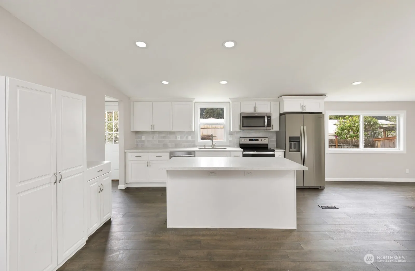 Welcome to your modern oasis in Spanaway, WA! This beautifully updated 4 bed, 2 bath home boasts contemporary design elements and ample space for comfortable living. Step into a bright and airy open-concept layout, featuring a spacious living area perfect for entertaining. The sleek kitchen is equipped with stainless steel appliances, quartz countertops, and a large island for casual dining. Retreat to the primary suite with its own ensuite bath, offering a luxurious escape. Three additional bedrooms provide versatility for guests, home offices, or hobbies. Outside, enjoy a private backyard oasis, ideal for summer BBQs and relaxation. Conveniently located in Spanaway, with easy access to amenities and commuting routes. Don’t miss out!