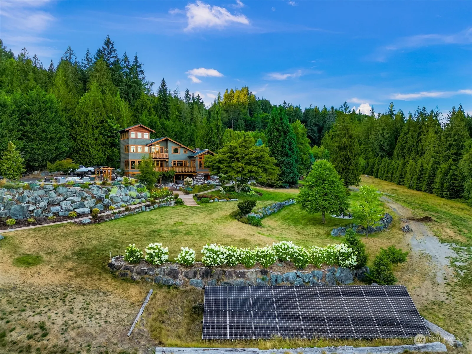 Truly 1 of a kind construction and priced far below replacement cost. Spectacular 12 view acres; Arts and Crafts home inspired by historic Gamble House in Pasadena and featured in national publications. 12 master craftsmen labored on premise over 2 yrs utilizing exotic materials, dovetail joinery, stunning beams, artisan stained glass. Expansive windows, 180* Cascade views, 4 bdrm + den. Entertainment at its finest. Exquisite landscaping, 600+ giant green granite boulders, river rock, fountains, timbers and clinker brick. PICKLEBALL court, infinity patios; outdoor granite kitchen, 1000′ tree lined drive, Deep high volume well, solar field. A beautiful private retreat that will nurture the soul. Peaceful, tranquil, yet close to everything!