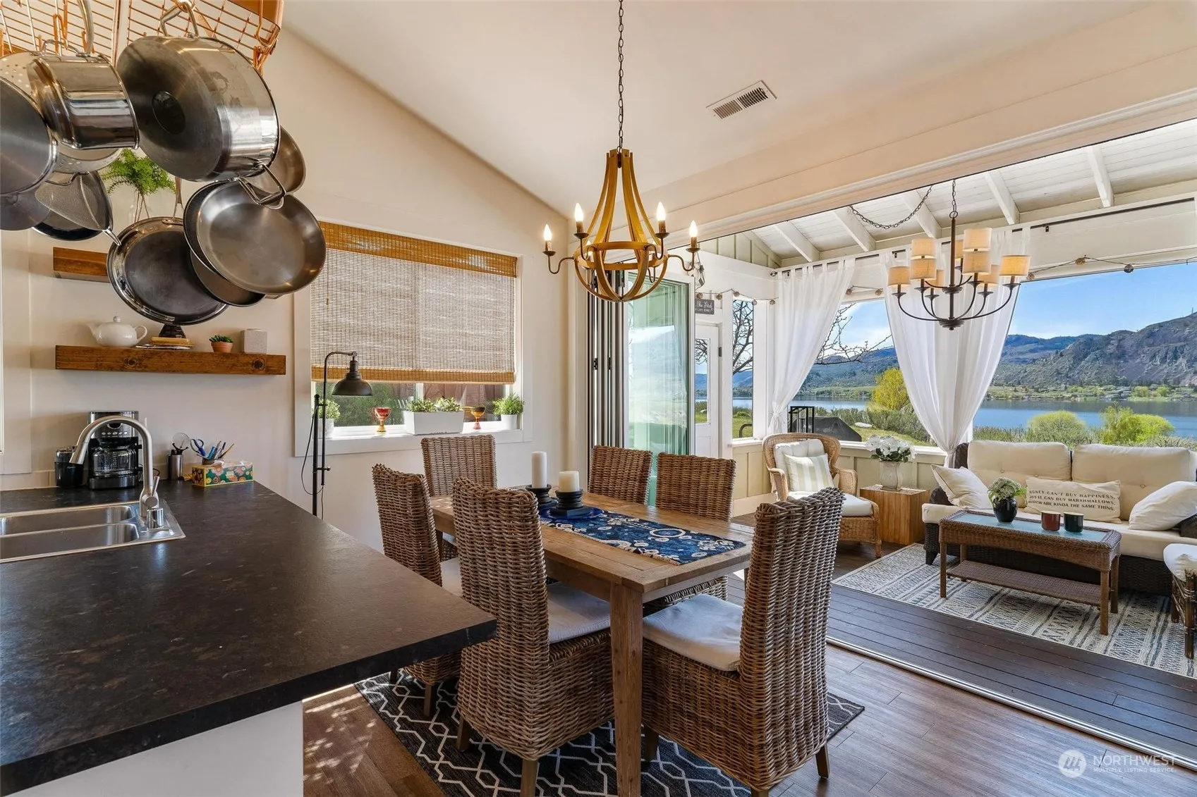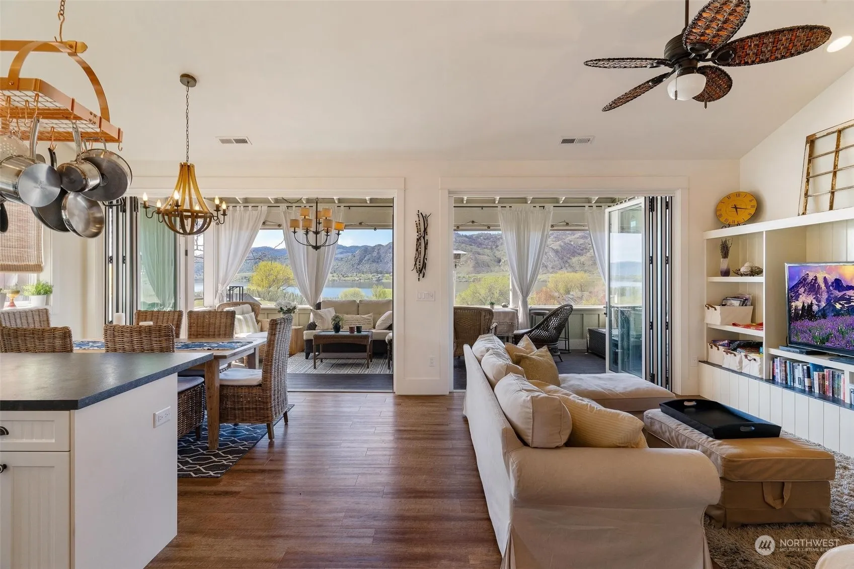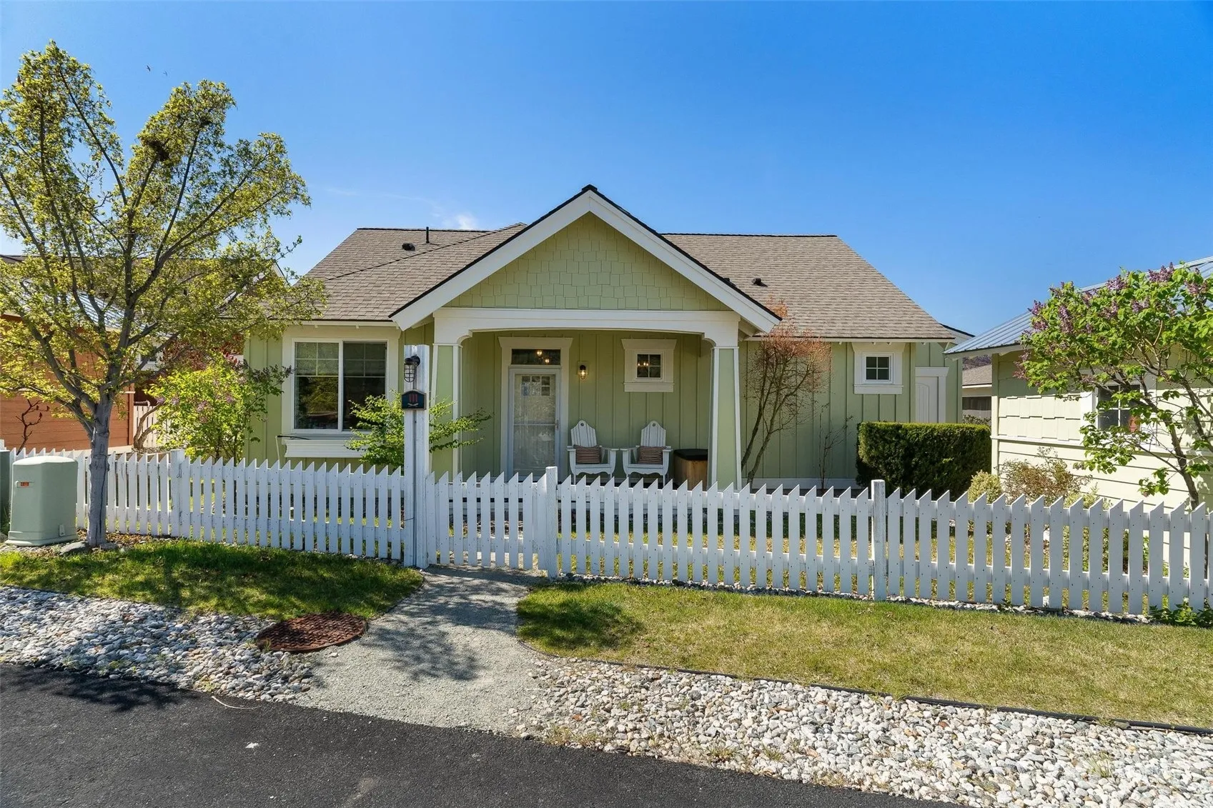 Rare resale of Lakeside Trail Cottage! Tastefully decorated & furnished two bedroom, two bath Cottage in excellent condition. Fabulous unobstructed lake and mountain views, yet just above all of Veranda Beach amenities. Two folding glass walls open Great Room to the expansive Veranda overlooking the Village. Plus big paver patio, lawn & fenced pet friendly yard. Upgrades include built in cabinetry, soaking tub in the Master Bath, stainless appliances, and newer full size Washer/Dryer. Fully equipped kitchen, linens, decor & accessories that enable you to instantly enjoy Lakehouse life. Small detached garage offers abundant storage. Ask about pool, hot tub, common greenspace, sandy beach and new Marina. Some personal items excluded.