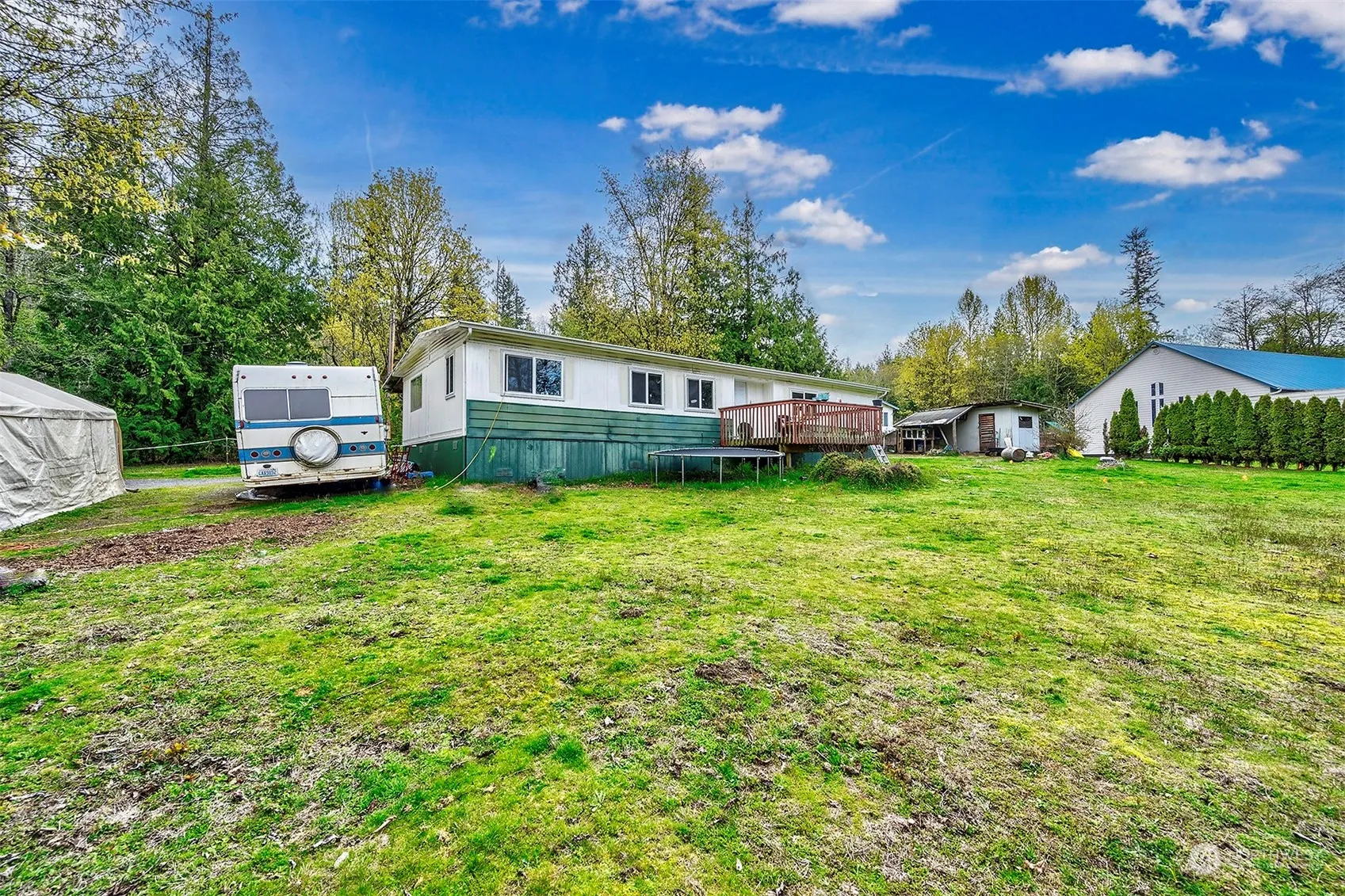 Nearly 5 Acre Lot with Options to Live in Manufactured Home while building Dream Home, to Remove Fixer Manufactured Home and Replace with a New Manufactured Home or Build New Construction and use Installed 4 Bedroom Septic which has been Pumped and Inspected. There is Value in the Land and Installed Utilities (4 Bedroom Septic, 7 Lakes Water and Electric) located very close to beautiful Lake Goodwin. Title has Not been Eliminated on this Older Manufactured Fixer so it will need to be a Cash Offer or Seller Financing is Available. There is possibly Marketable Timber on the Lot. Currently Rented through 6/30/2024 and Tenants have given Notice. Requires an Appointment to Walk the Property but No Interior Viewing until Mutual Acceptance.