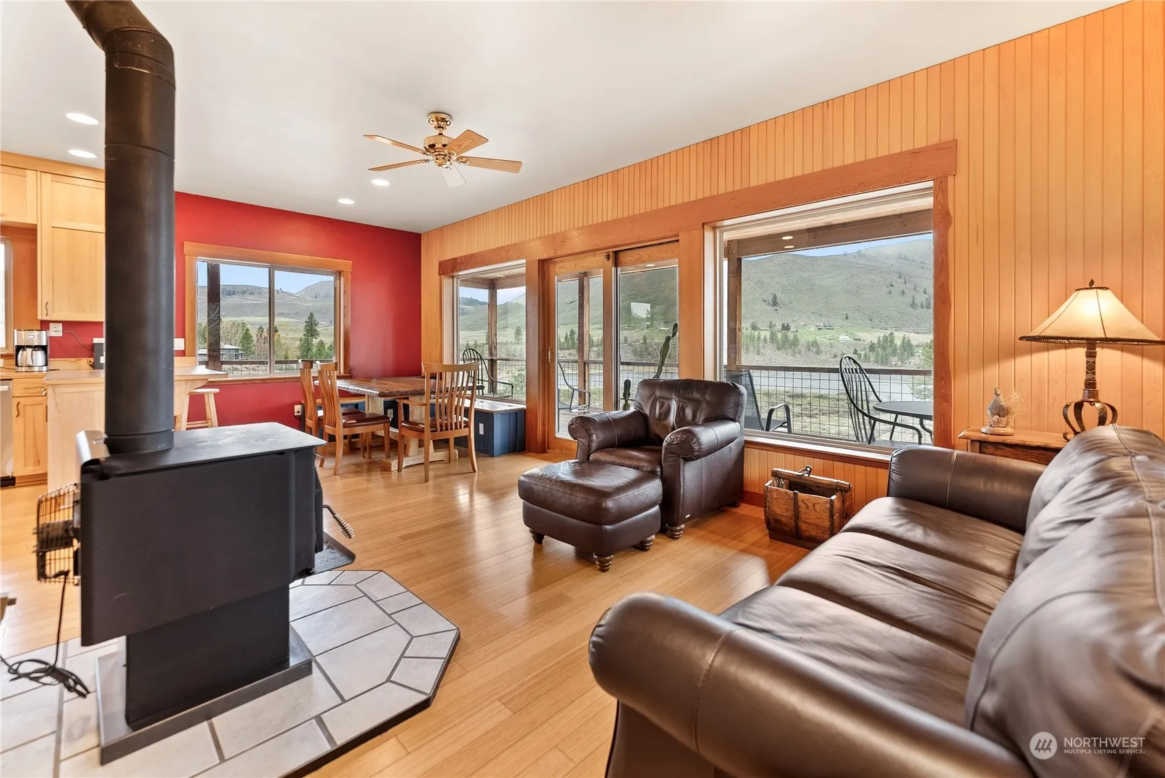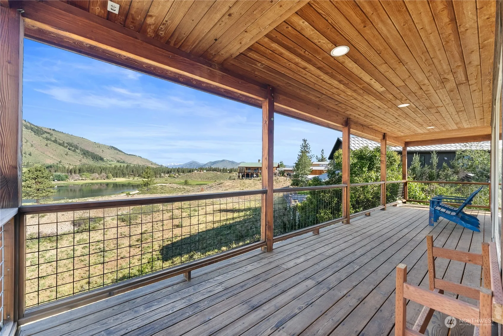 Great combination of indoor/outdoor space in this 3 level lakefront (about. 130 ft lake frontage) home w/gorgeous views of Big Twin Lake, Patterson Mt. & surrounding mountains. Large deck wraps around the main level creating wonderful outdoor space on every side. Features: wood wrapped windows, custom hickory cabinets throughout, bamboo flooring, open floorplan, fam room, & tall ceilings. Mature landscaping screens out neighbors. Bonus room on lower level. Fenced garden & yard, small shop & lots of storage for toys. This home would work great for either full time or part time living. Close proximity to the Methow Valley School District, downtown Winthrop, & summer/winter trail systems. Community pool, club house, trash/recycle & playground.