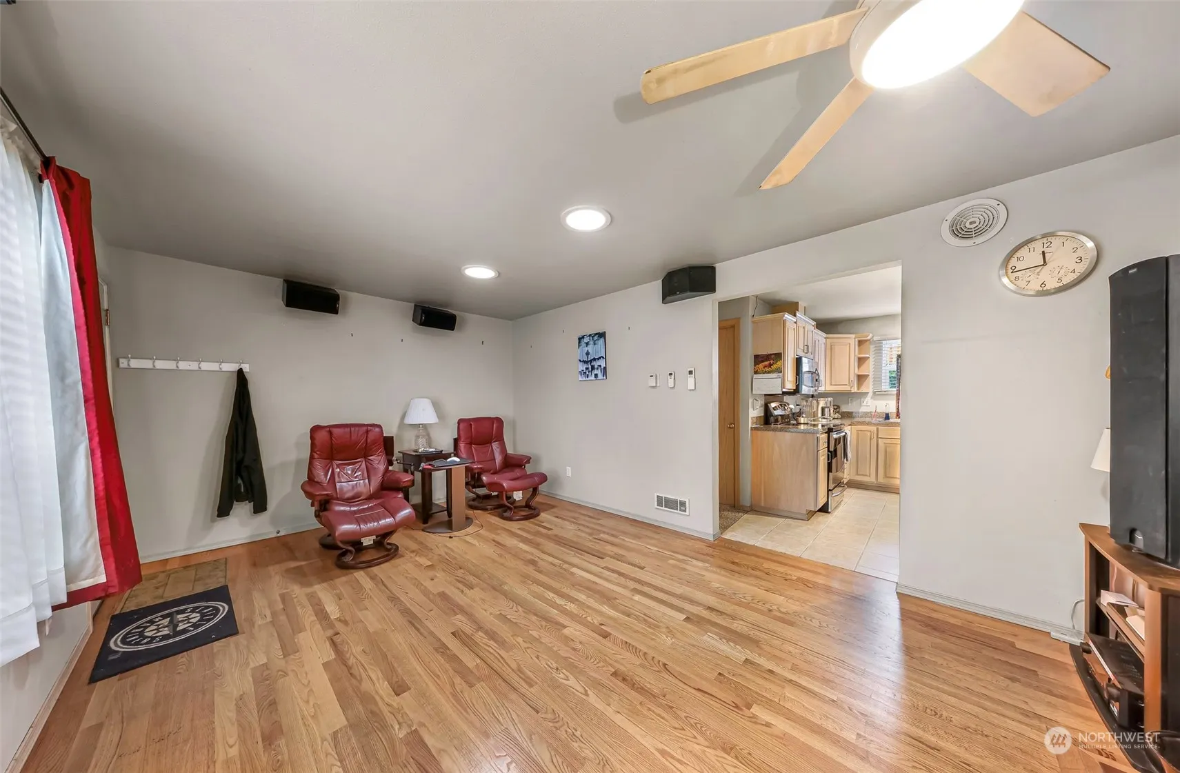 MUR 45 Zoning! Discover this centrally located, well cared for, charming 3 bed, 1.75 bath home in Shoreline. Cozy up by the pellet stove in the inviting living room. The renovated kitchen features formica countertops & an eat-in island, perfect for casual meals. Enjoy formal dining, relax in the large family room, which also provides access to the backyard. Sizable primary bedroom features an attached bath & closet. The upstairs bedroom provides a light & bright sanctuary. Unwind in the spacious backyard on the patio with a hot tub, or gather around the fire pit. The property is lush with fruit trees & has ample gardening space. Only 1 block away from Paramount Park & walking distance from the new Light Rail line & I-5 for a quick commute.