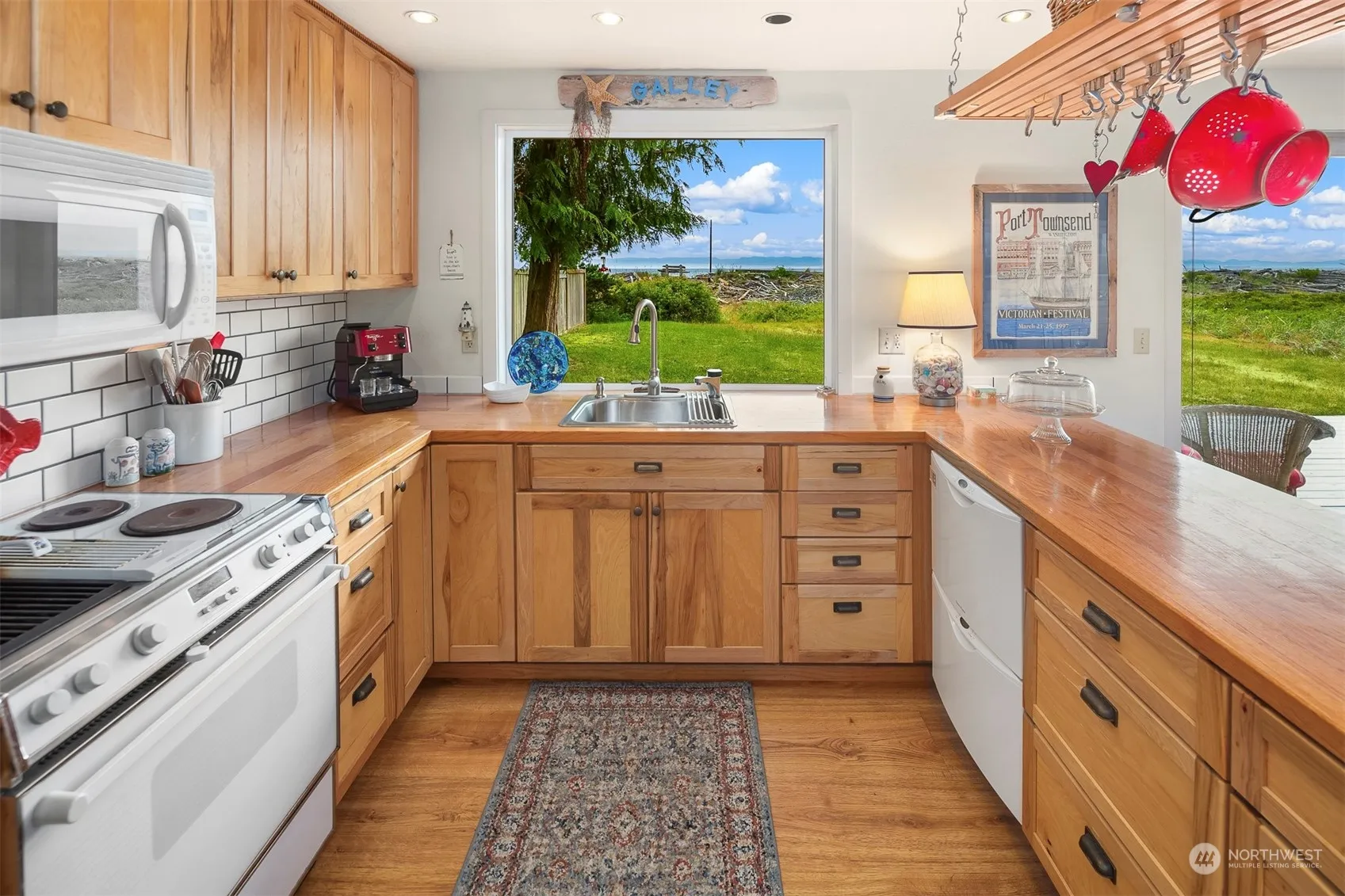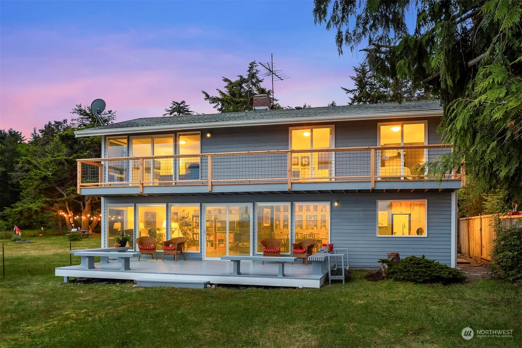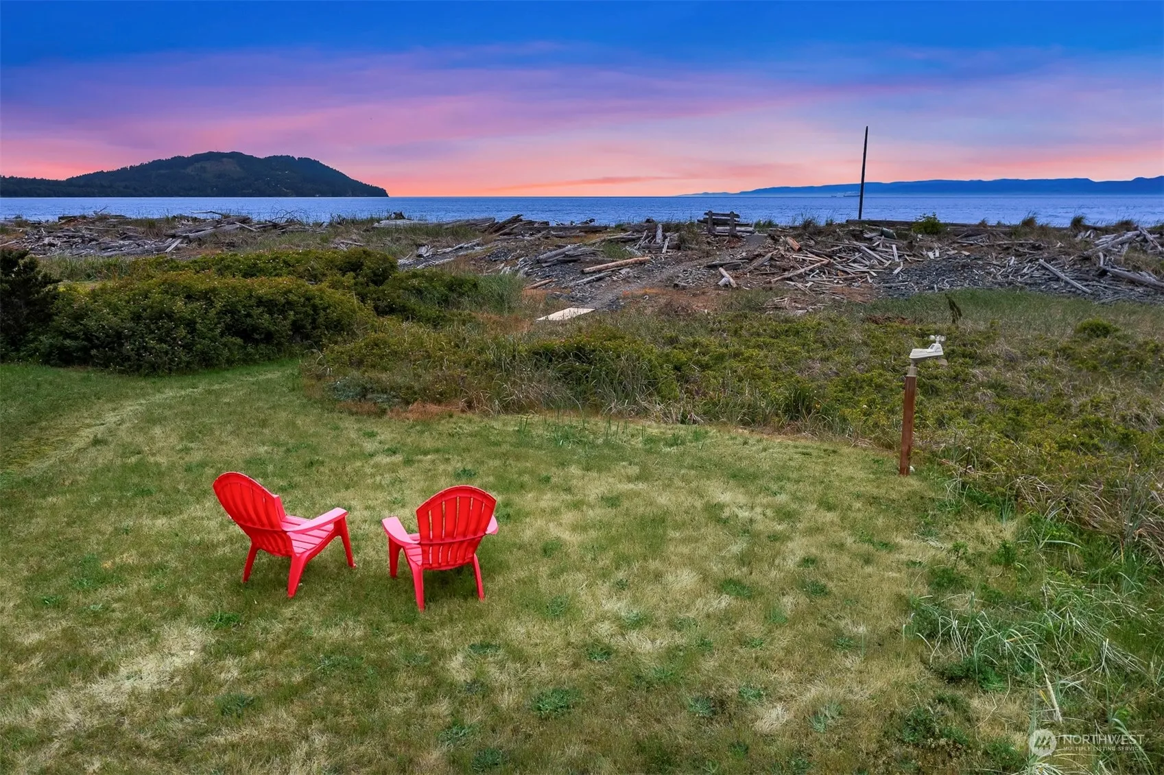 Stunning contemporary no-bank waterfront home sits on desirable & rarely available Place Rd! Entertain on huge new deck & step outside to miles of sandy beach! This stunning home is perfectly designed to enjoy views from every window. Main floor features large, open kitchen, dining area, built-in-cabinetry, hardwoods throughout & spacious living room, complete w/ wood fireplace for cozy nights. Upstairs has 3 large bedrooms, 2 bath + large flex room. In addition, 2nd structure built in 2007 w/ 2nd garage for rv parking, huge workshop & bedroom above garage for potential future adu. Storage galore! Crabbing, surfing, eagle/ship watching at doorstep. Located on quiet, paved road 10-15 min to Port Angeles & Olympic National Park. Must see!