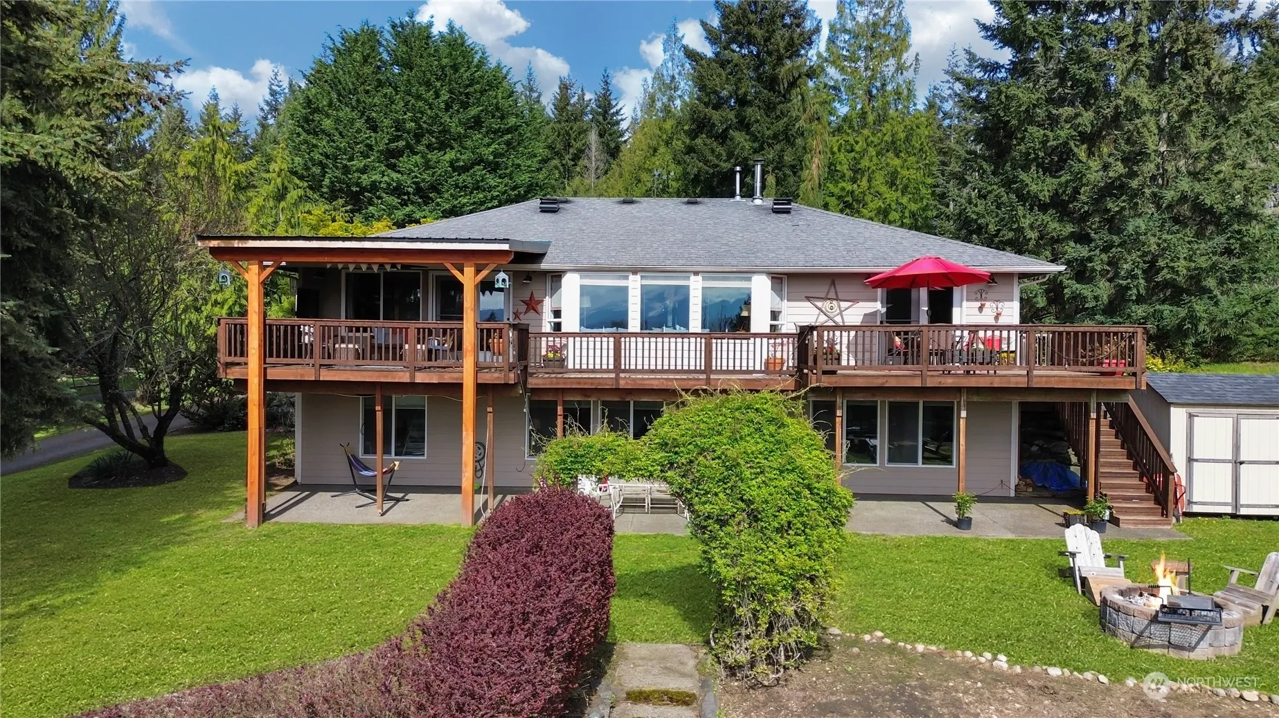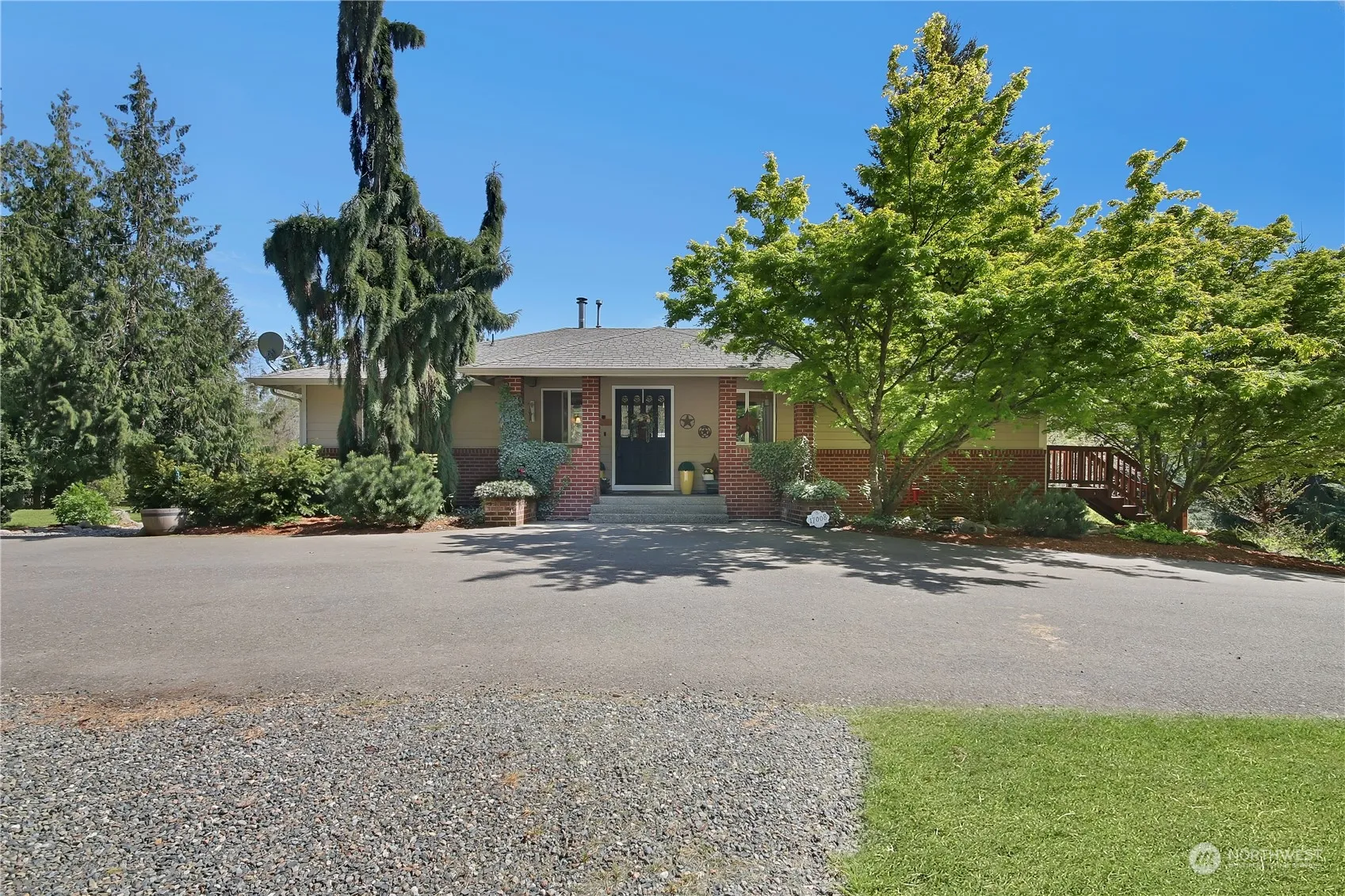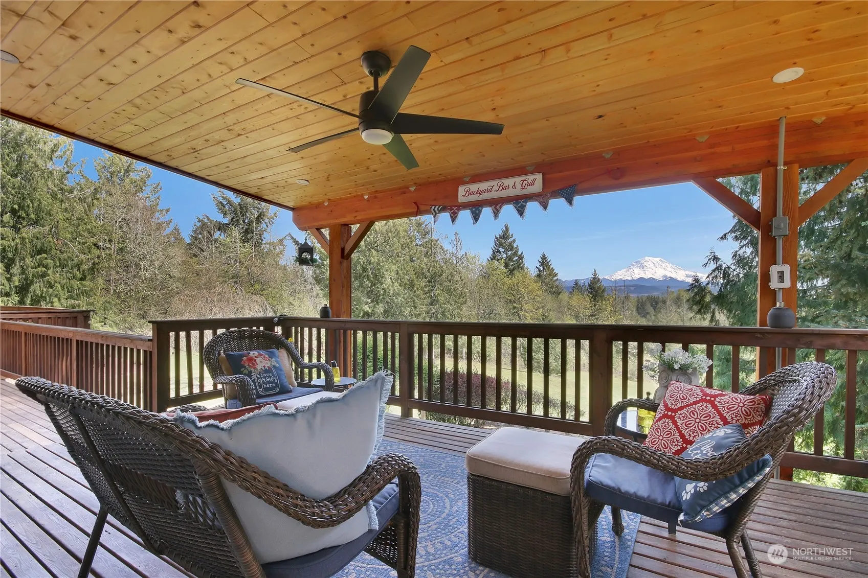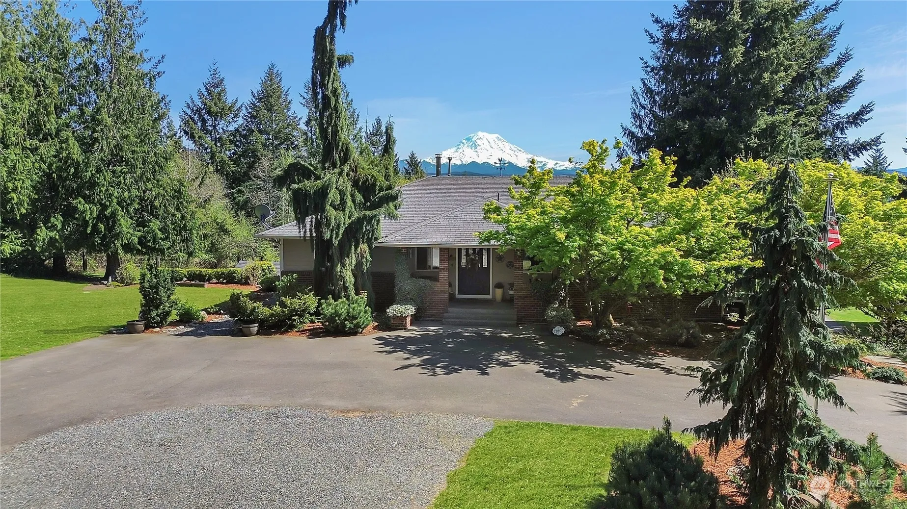 This 3,360 sq ft home has an unobstructed Mt. Rainier View! Featuring 3 beds (+ possible 4th bedroom, 3 bed septic), 2.5 baths, plus an office/den on 3.78 beautiful acres. Open floor plan with Oak hardwoods and carpet. The primary suite located on the main level boasts a large custom shower, soaking tub, & three closets. The kitchen features a breakfast bar, granite countertops, subway tile & SS appliances. Enjoy unwinding in the great room with Mt. Rainier as the centerpiece. Two bedrooms, family room, potential 4th bedroom, wet bar, utility room & more on lower level. 60×30 shop, generator transfer switch, well, No HOA & more! All appliances are included. Easy access to freeways, shopping, restaurants & more. Don’t let this one get away!