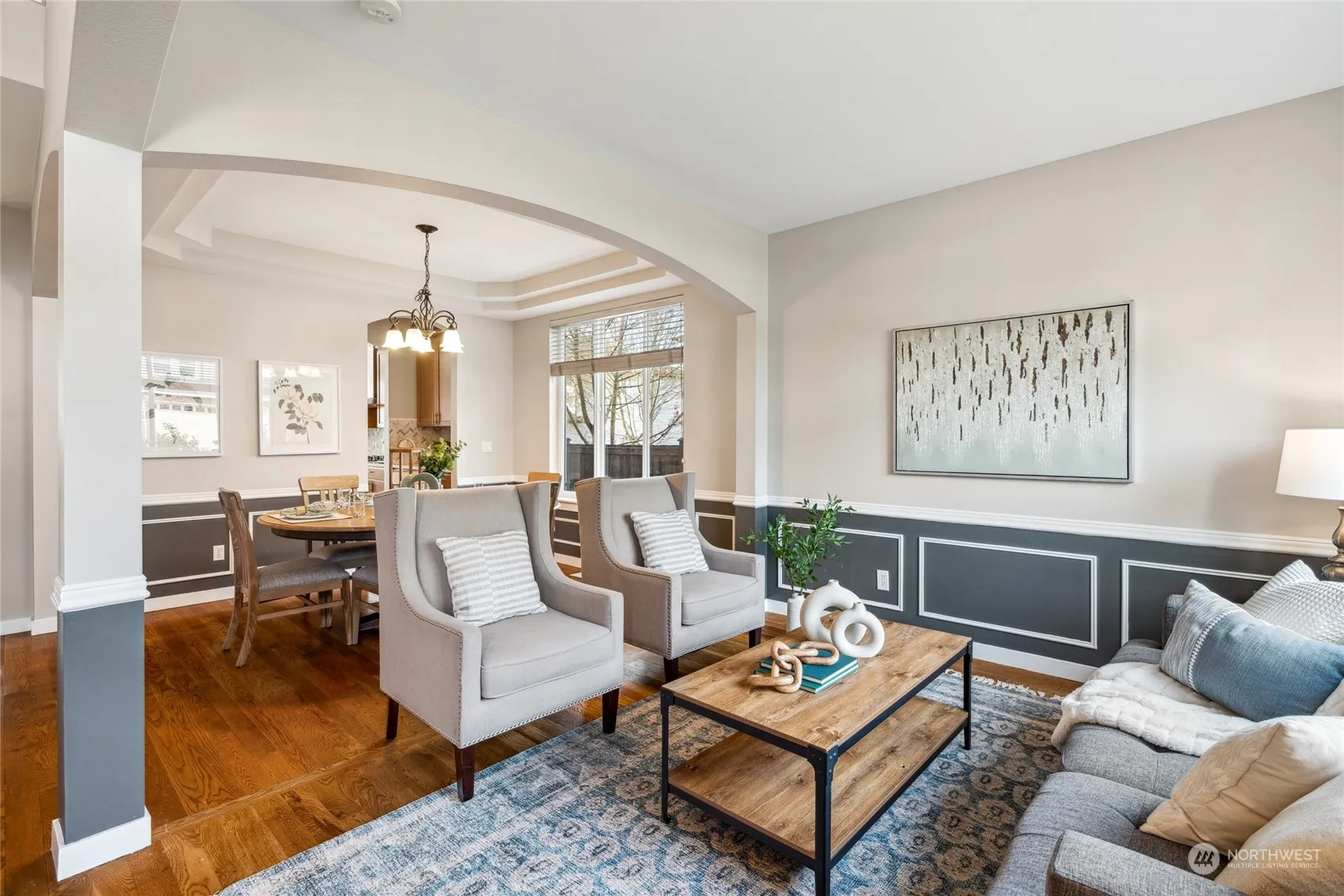 First Time on the market since built; this Belmark Model Home in the coveted Beaumont Neighborhood is better than new. It features an array of modern upgrades! The entrance boasts a one-of-a kind Hand Blown Glass Chandelier from Seattle Glasshouse Studios that conveys with the home. Enjoy the 2020 renovations including a kitchen with all new appliances, added bonus of a convection/speed oven, quartz counter tops, custom tile backsplash. All bathrooms have been updated with Smart Mirrors, new tile work and more. The 3-car tandem garage allows plenty of room for “big & small kid” toys with ample storage. The fully fenced backyard comes with a sprinkler system, fruit/nut trees, fire pit, & Weber Grill that conveys. Welcome Home!