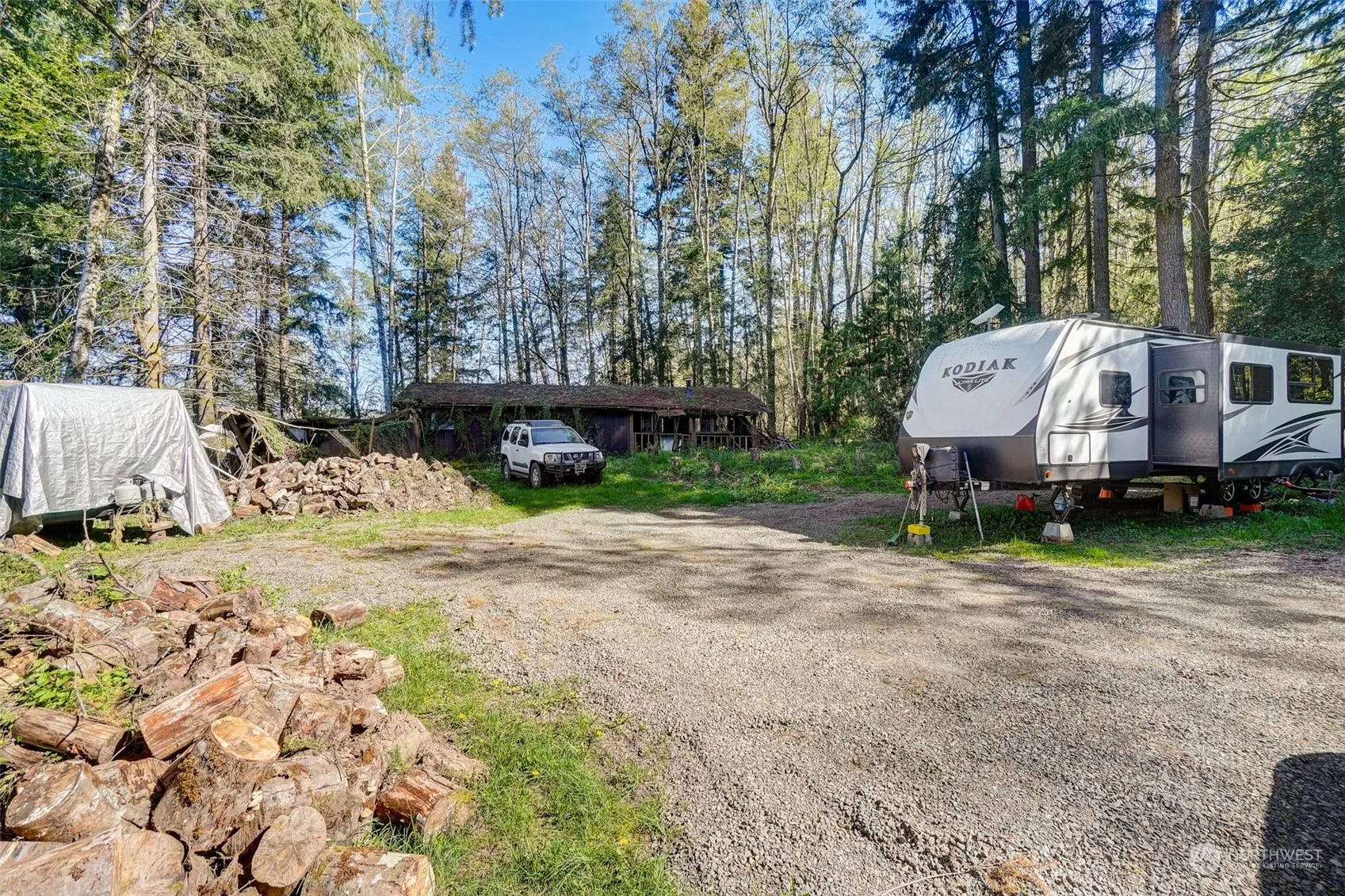 HERE IT IS…LAND AND SHOP – 2.59 AC Ready for your New Home or a MFG Home. Private Well, Electric and Septic (approved for 3-bedrm) are already in. This Property is less than 4 miles to I-5 freeway in Woodland. Hidden in the trees creating a private oasis. Big 2 Bay Shop (30×48) building with loft storage (built 1996) and Full hook-ups for your RV (Water, Septic, Electric). You can live in your RV on Property while you Build! NO ENTRY of Old Mfg Hm – it is a tear down and of NO Value. Great place to build in the cleared level area with a sunny southern exposure, private and quite. Must have appointment in advance to see, Not a ‘drive-by’, property not visible from public road and driveway is private. Make Your Appt today!