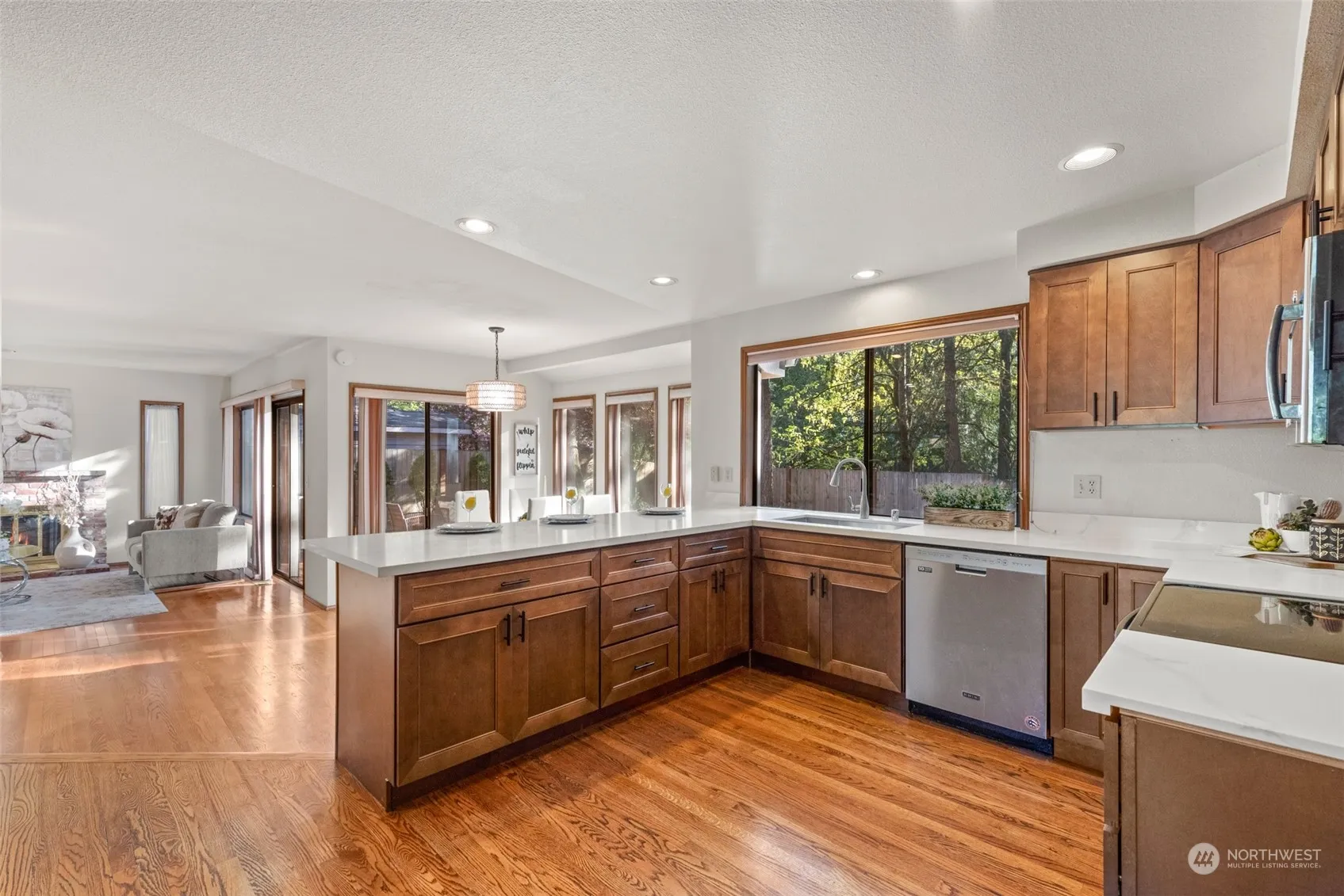 Nestled in the cul-de-sac, this spacious 3 bed 2.5 bath home features a functional floor plan. As you step inside, you’ll be greeted by high ceiling foyer with tons of light. The updated kitchen features new quartz countertops, new cabinets, stainless steel appliances & pantry. New carpet throughout. 2 sitting areas (one can be used as a den or 4th bedroom) & 2 dining areas. 3 bedrooms are upstairs & spacious. The primary suite has a good-sized walk-in closet. The home offers ample space inside & out. Huge deck & landscaped yard provide endless possibilities for outdoor gatherings & gardening. Spacious two-car garage. Top-rated Issaquah Schools. walk to community park. Close to I90, public transit & amenities. Easy access to Seattle/BRK.