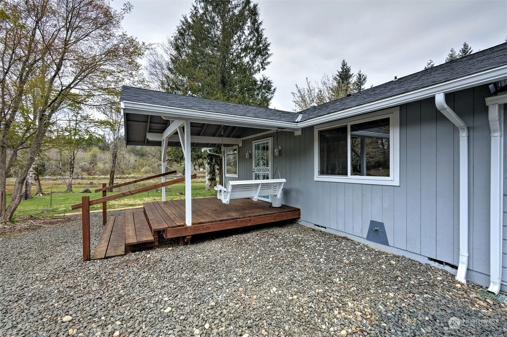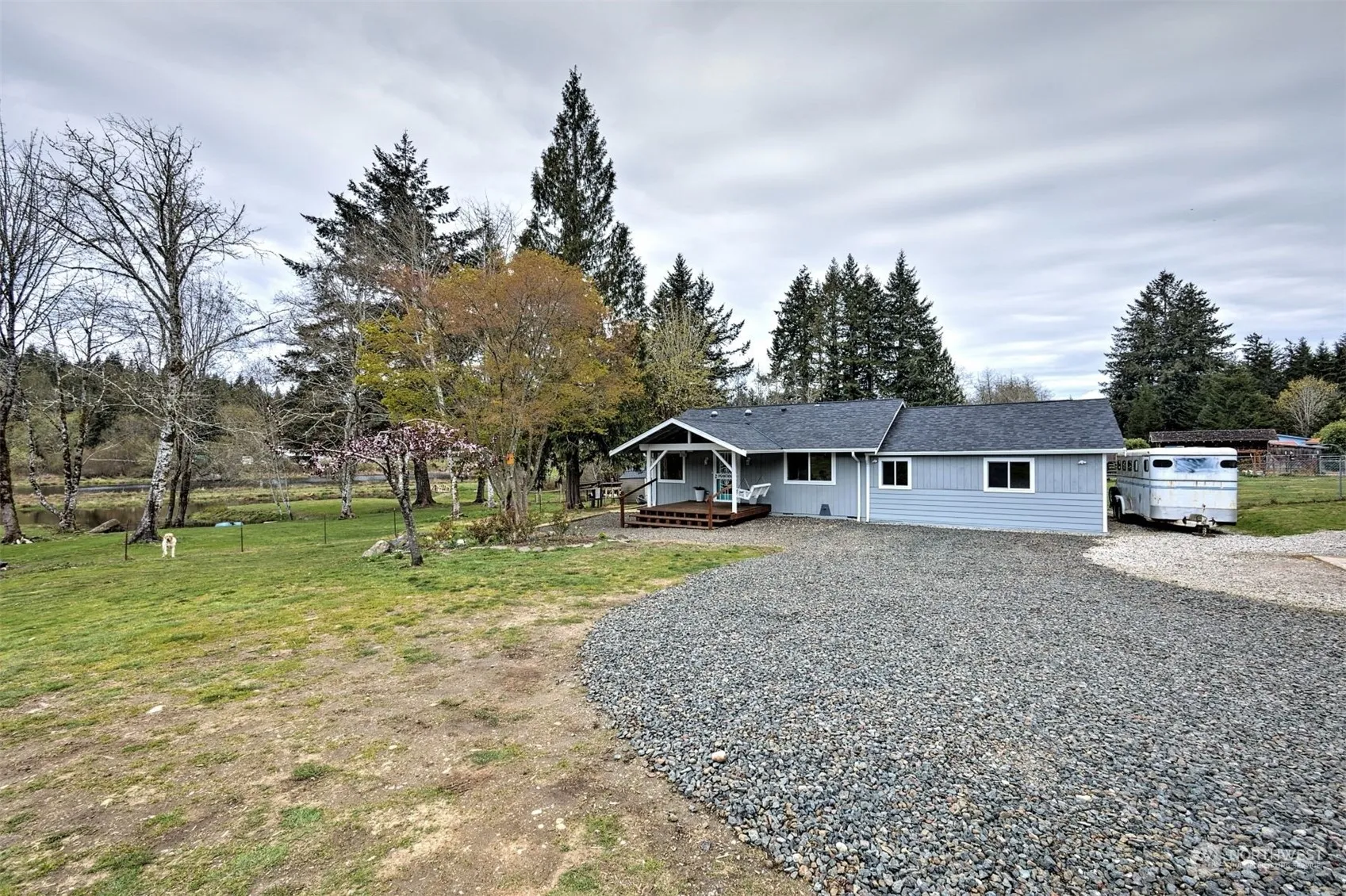 This mini-farm is set up perfectly with fencing and cross-fencing, a large garden space, fruit trees, a pond with an artistic bridge, many varieties of birds and wildlife, and a great 2 bedroom updated home. The large 24×24′ shop/garage with 50 amp service is perfect for projects! All of this on over 3 acres off the Grapeview Loop Road near the Fairharbor Marina!